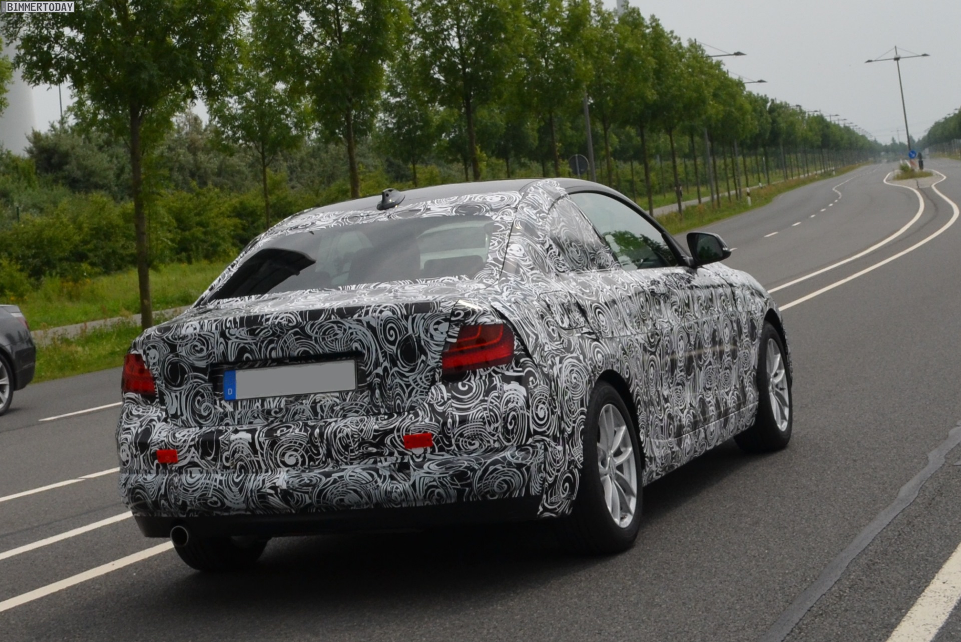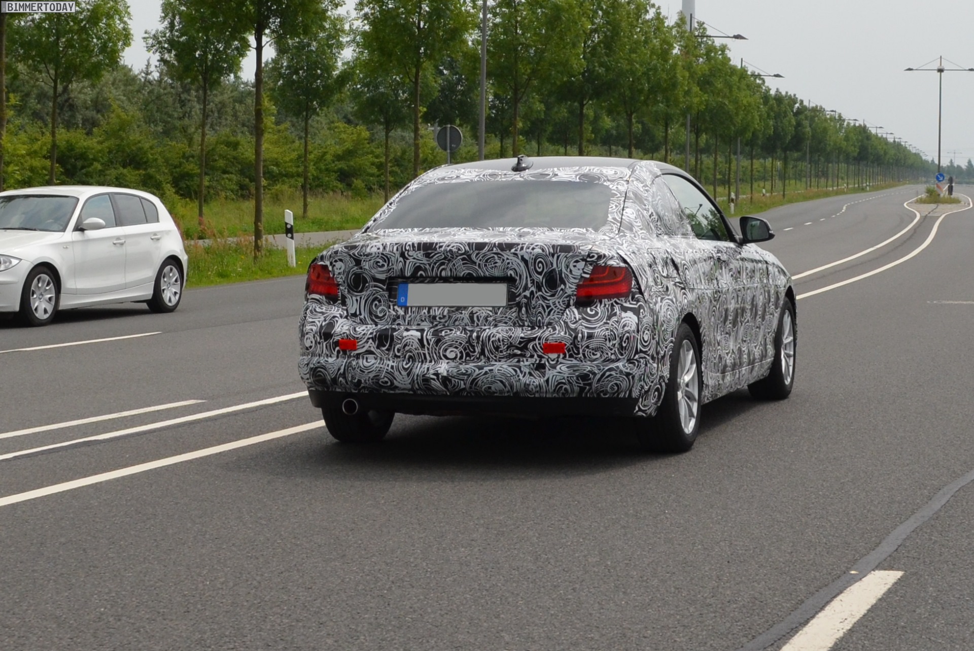 Wer sich vom 3D-Modell noch nicht überzeugen lassen wollte und die Proportionen des neuen BMW 2er F22 lieber anhand echter Fotos beurteilen möchte, sollte sich die Erlkönig-Fotos von unserem Leser Thorsten nicht entgehen lassen. Er hat einen leider noch stark getarnten Prototypen der 2er-Reihe in der Nähe vom Werk Leipzig erwischt, wo derzeit noch die letzten Einheiten des aktuellen 1er Coupé vom Band laufen, bevor mit der Produktion des 2er Coupé begonnen wird.