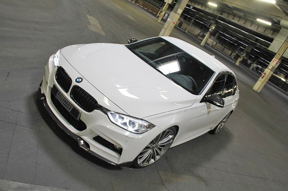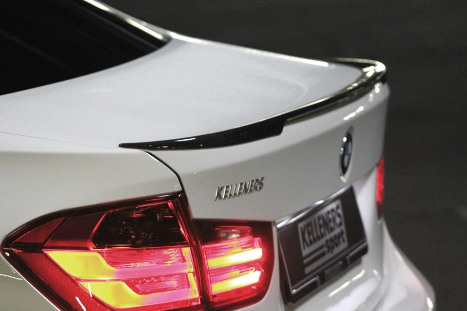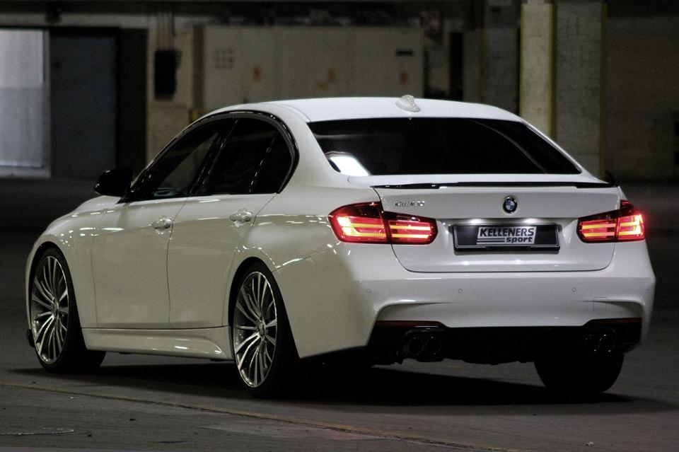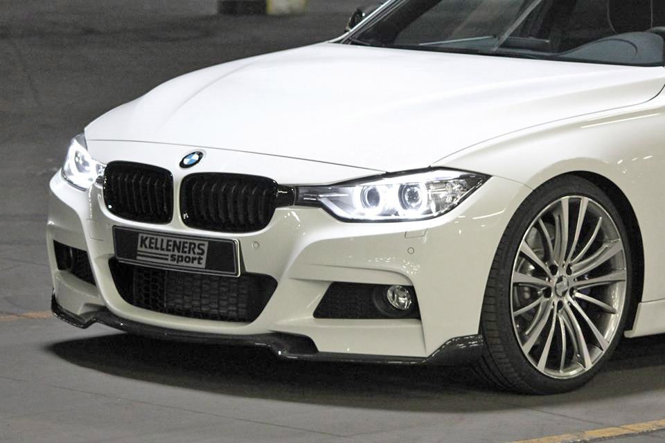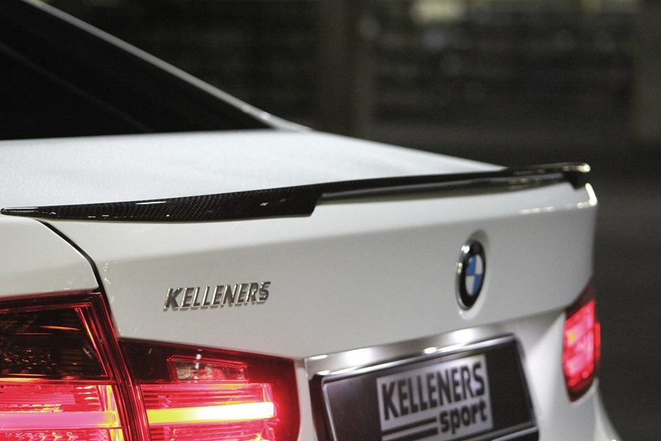 Speziell für das M Sportpaket hat Kelleners eine MS-Frontspoilerlippe, Außenspiegelgehäuse, einen Heckschürzen-Einsatz und eine dezente Heckspoilerlippe entwickelt. Die Anbauteile sind auf Wunsch auch in Carbon-Ausführung erhältlich, was insbesondere in Kombination mit hellen Außenfarben sehr sportliche Akzente setzt. Mit Ausnahme der Spoiler-Lippe für die Kofferraum-Haube der Limousine sind die Aerodynamik-Komponenten aus Merzig natürlich auch für den BMW 3er Touring F31 erhältlich.