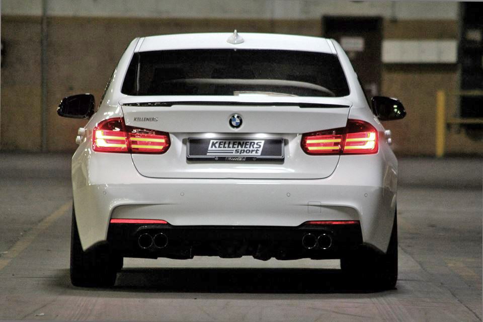 Der gezeigte F30 verfügt zwar über vier Endrohre am Heck, es muss sich dabei aber nicht zwingend um einen Umbau auf Basis des BMW 335i handeln: Auch für den BMW 330d F30 bietet Kelleners eine entsprechende Endrohr-Variante an, die den 3er besonders dynamisch abschließt und ein wenig an den M3 erinnert.