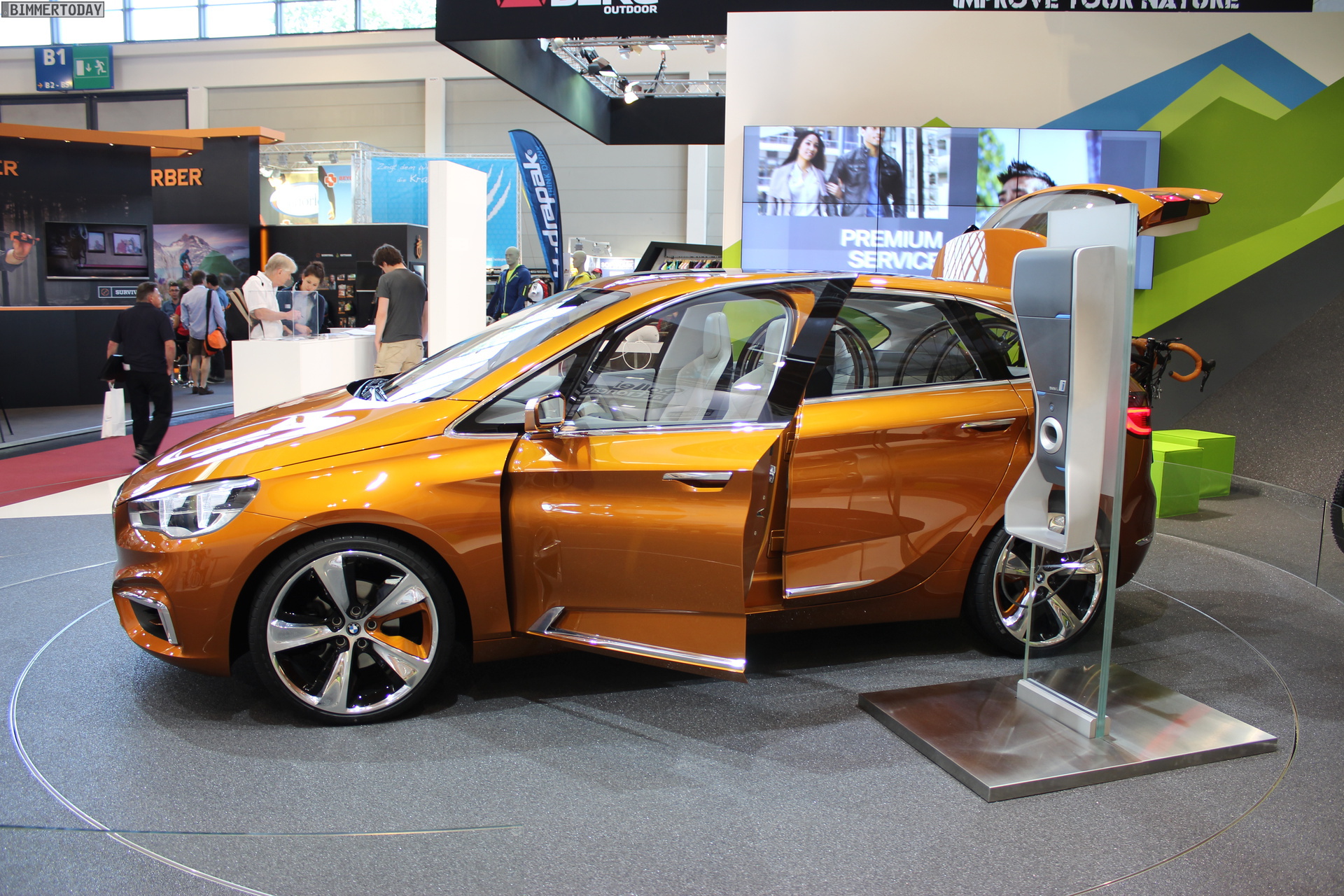 Gestern wurde das BMW Active Tourer Outdoor Concept auf der OutDoor 2013 in Friedrichshafen enthüllt, insofern ist es schon höchste Zeit für erste Live-Fotos von der neuen Studie zum Mitte 2014 kommenden Kompakt-Van aus München. Dank Lisa von Hyyperlic.com können wir an dieser Stelle einige Bilder zeigen, die uns einen Eindruck vom Concept Car am BMW-Stand vermitteln.