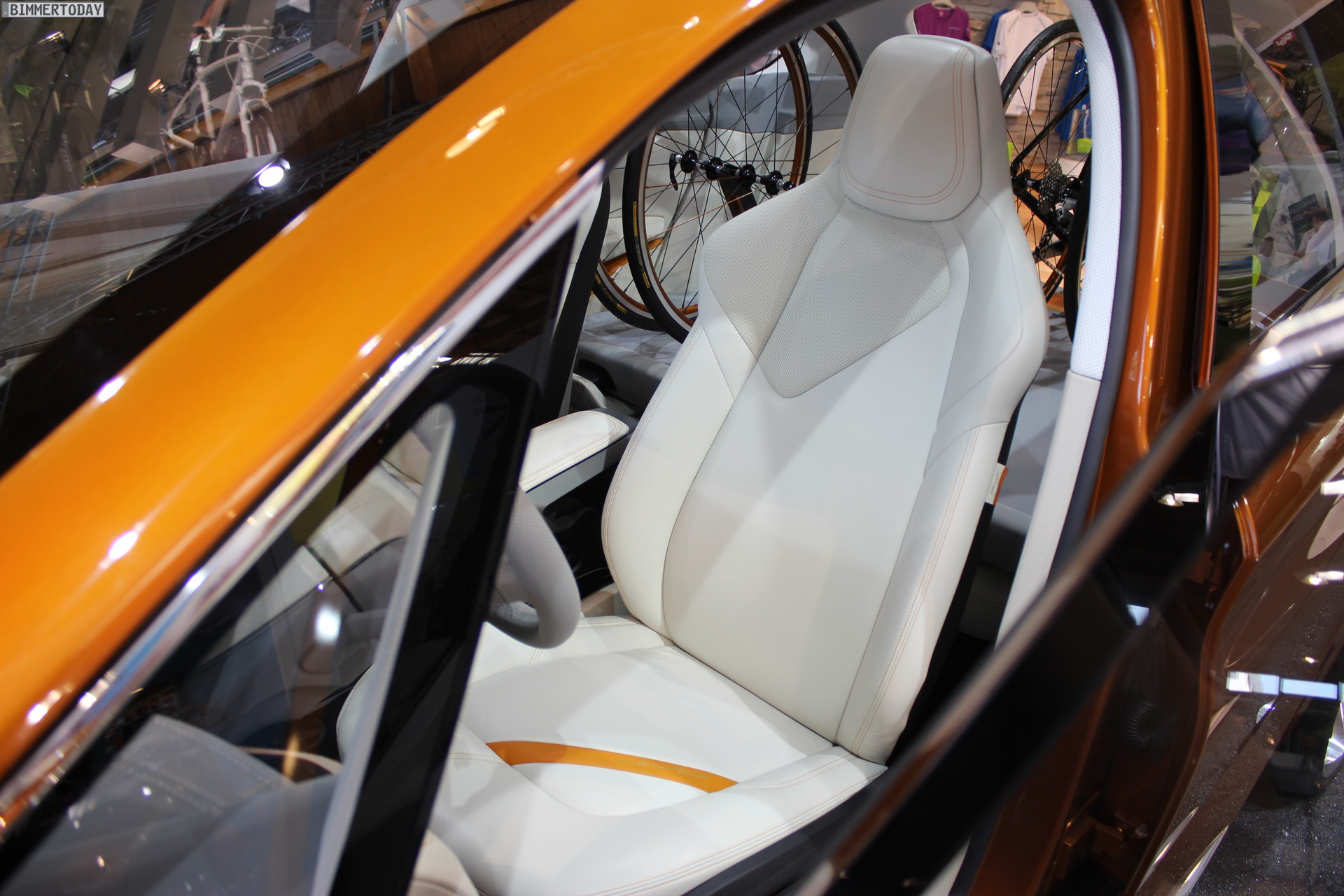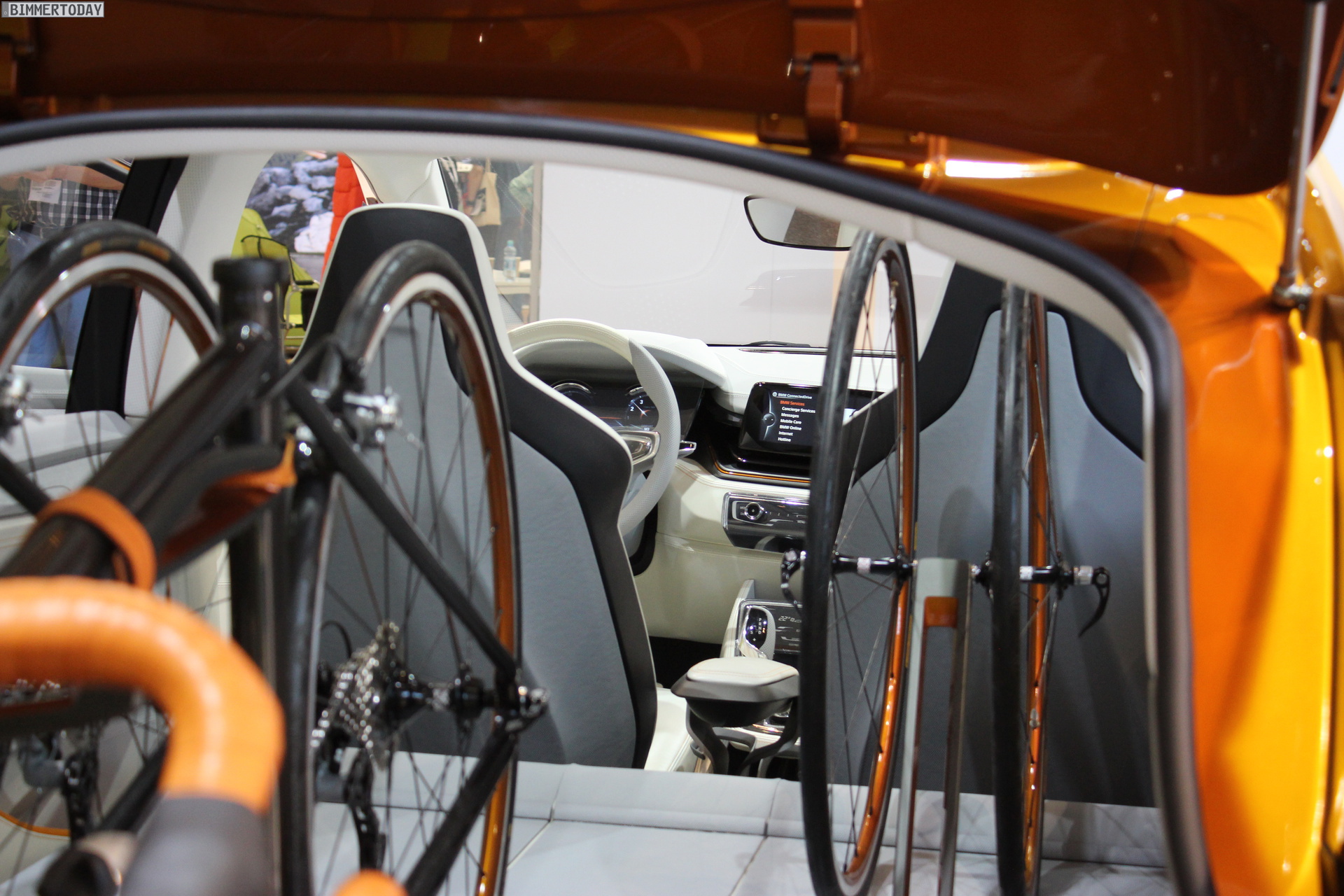 Der Innenraum ist auch abseits des Fahrradträgers im Kofferraum interessant und glänzt mit mehreren Displays, die zur Anzeige von Geschwindigkeit, Drehzahlmesser, Navigation & Co. genutzt werden. Bermerkenswert ist außerdem, dass anders als bei der Studie in Paris kein Head Up Display (HUD) verbaut ist und eine solche Lösung auch im Pressetext mit keinem Wort erwähnt wird.
