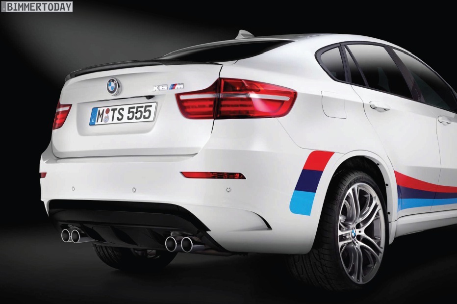 Optisch unterscheidet sich die BMW X6 M Design Edition dank Frontsplitter und Heckspoiler aus Carbon, schwarzen Nieren und Außenspiegelkappen sowie einem schwarz eingefärbten Diffusor von der Serie. Genau wie die Aerodynamik-Elemente stammen auch die 21 Zoll großen Leichtmetallräder (Doppelspeiche 310 M) aus dem Zubehör-Programm von BMW M Performance.