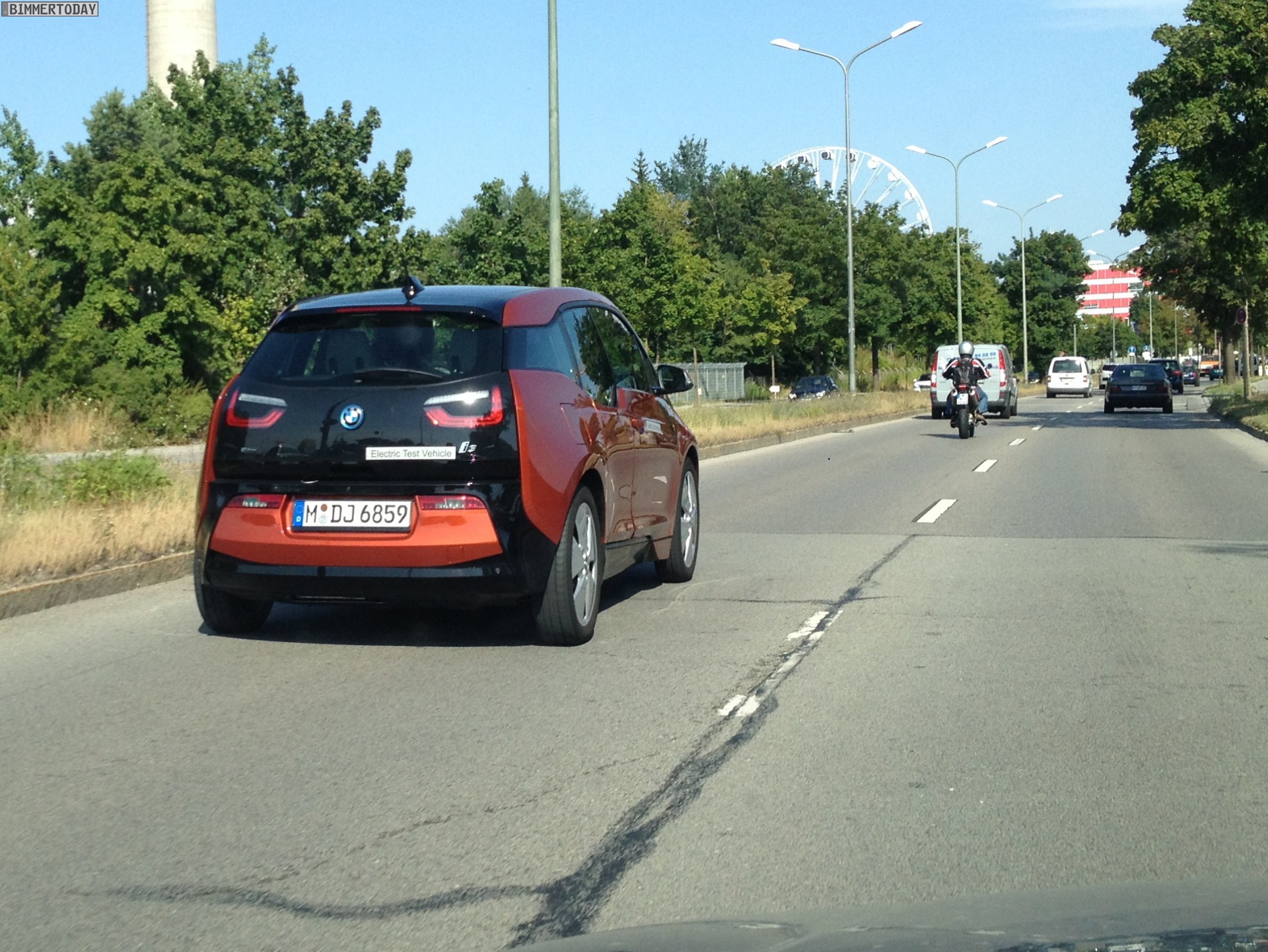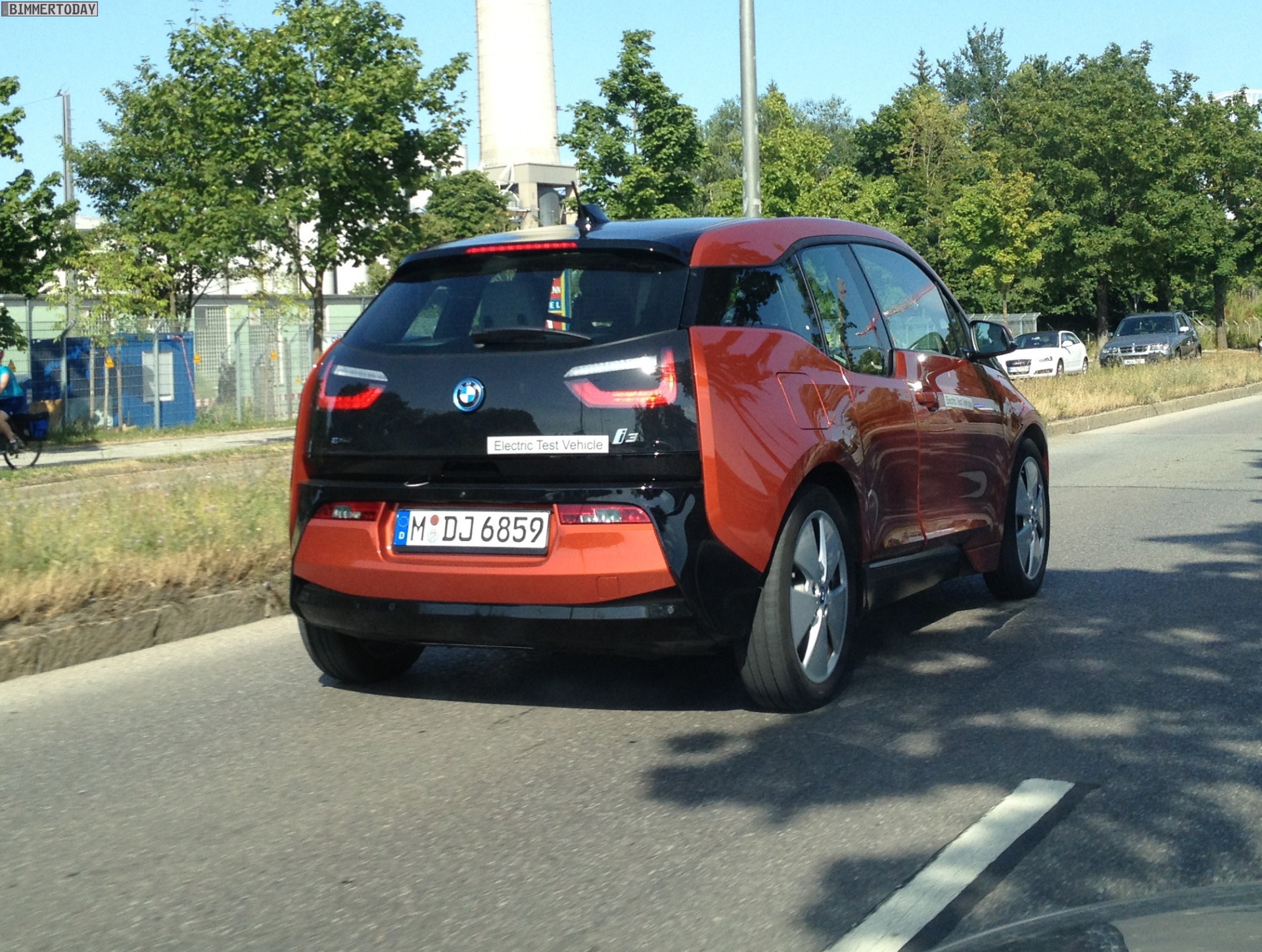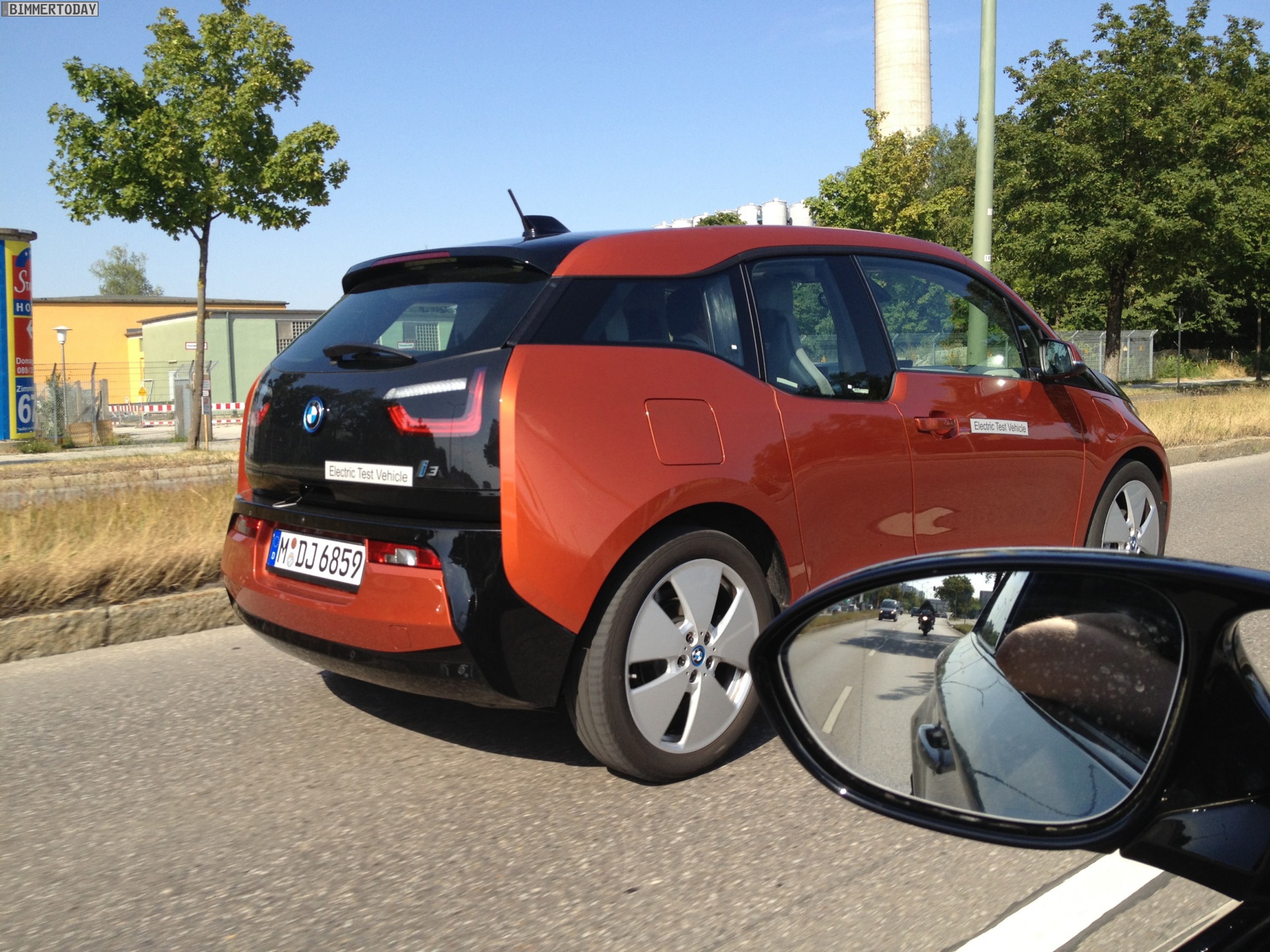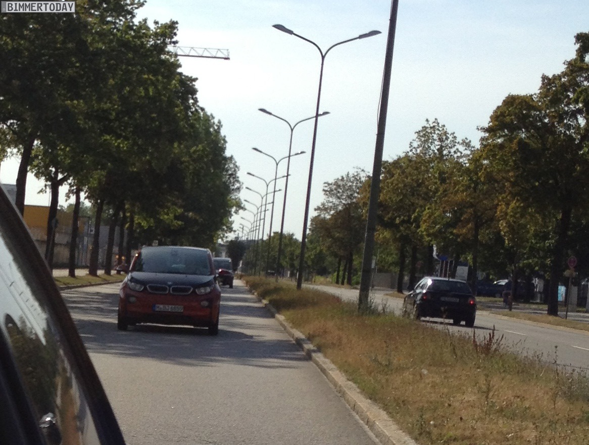 Wer den BMW i3 lange vor dem Marktstart im November komplett ungetarnt und in serienmäßiger Form zu Gesicht bekommen will, sollte sich derzeit offenbar im Raum München aufhalten. Dann kann man den Elektro-Kleinwagen mit Carbon-Fahrgastzelle sogar fotografieren, wie es einem unserer Leser nun erneut gelungen ist: Nachdem wir vor ein paar Tagen erste Fotos eines BMW i3 in Capparisweiß zeigen konnten, folgt nun ein BMW i3 REX in Solarorange.