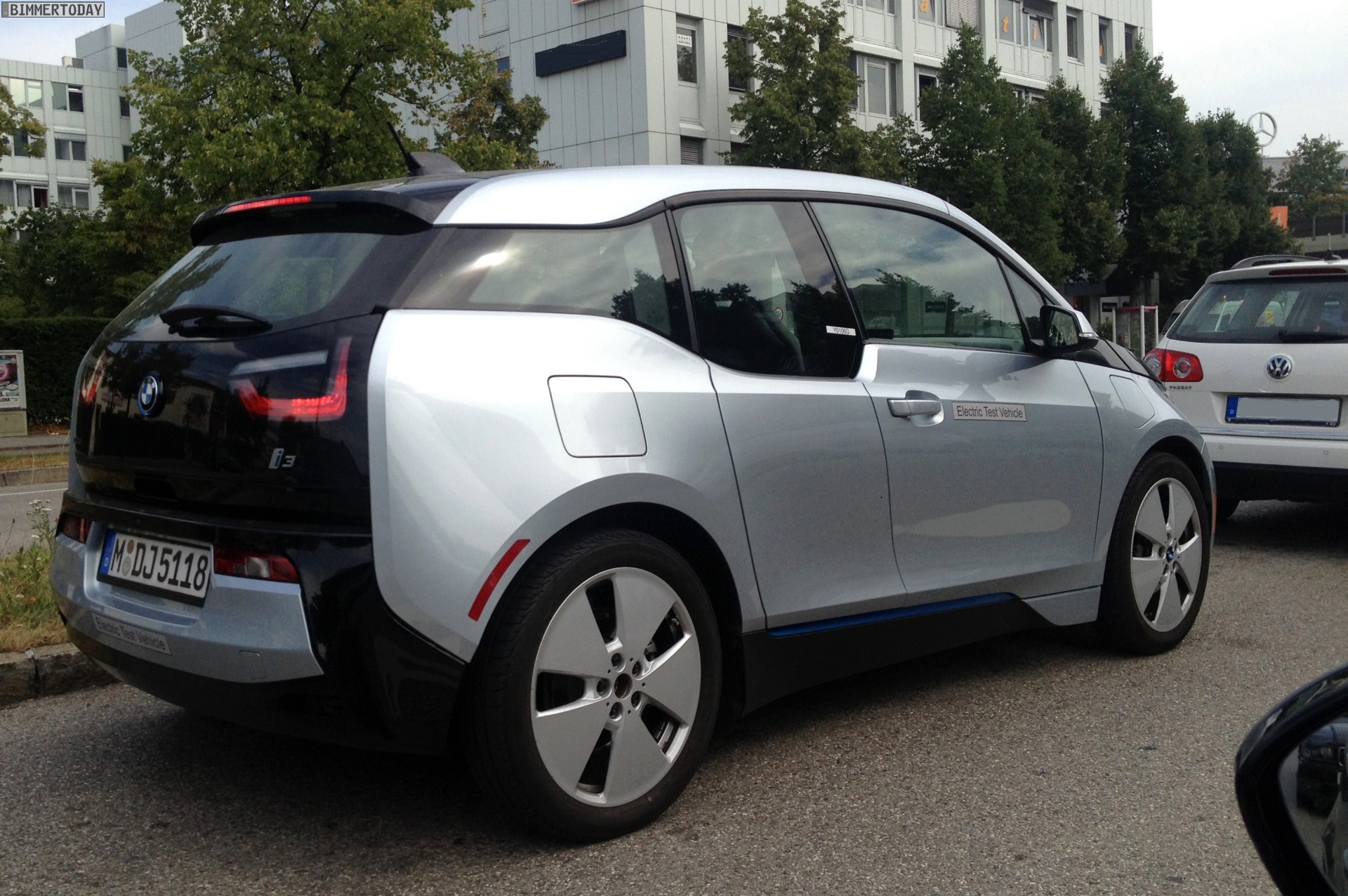 Wie der zusätzliche Tankdeckel am vorderen rechten Kotflügel zeigt, handelt es sich auch bei diesem ebenfalls in München erwischten Werkstestwagen um einen BMW i3 REX mit Range Extender. Der zusätzliche Tank für den Verbrennungsmotor bietet Platz für neun Liter Benzin und macht den BMW i3 im Bedarfsfall zum Dauerläufer: Abgesehen von der überschaubaren Tankkapazität und der folglich relativ häufig notwendigen Tankstopps spricht nichts dagegen, mit einem i3 REX praktisch unbegrenzt lange Strecken am Stück zu fahren.