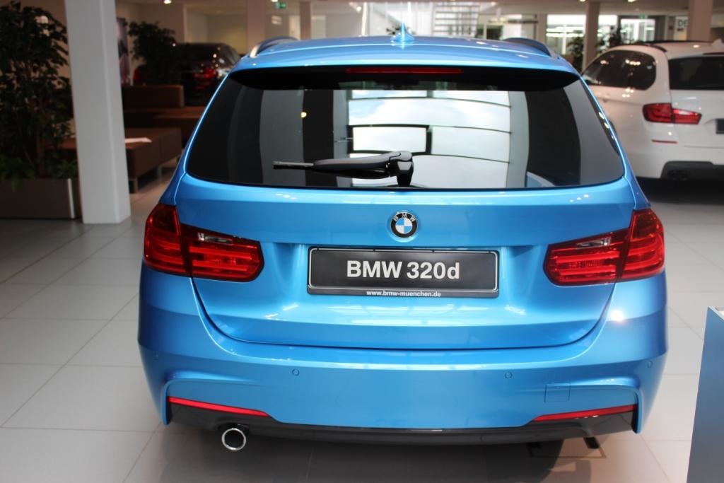 Die hellblaue Lackierung bewegt sich entlang des schmalen Grats zwischen Blau und Türkis und erinnert nicht zufällig an die Farbe des Meeres in südlichen Gefilden. Zu sehen ist die Farbe an einem BMW 320d Touring F31 mit M Sportpaket, der im Innenraum Akzente in Estorilblau trägt. Obwohl es sich um unterschiedliche Blau-Töne handelt, dürften die Differenzen im Alltag kaum störend ins Auge fallen – schließlich sieht Estorilblau zwar etwas dunkler, aber auch nicht völlig anders aus.