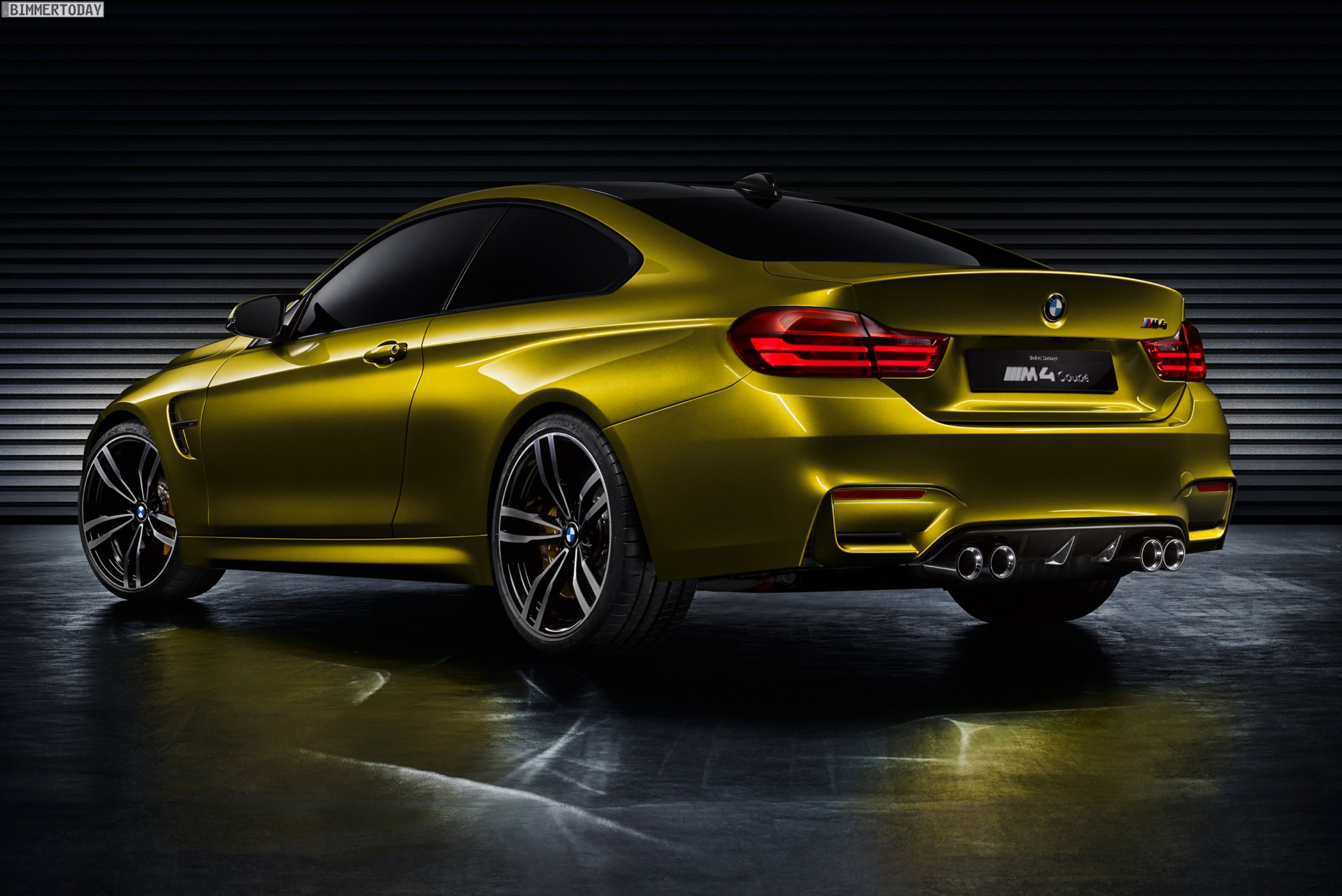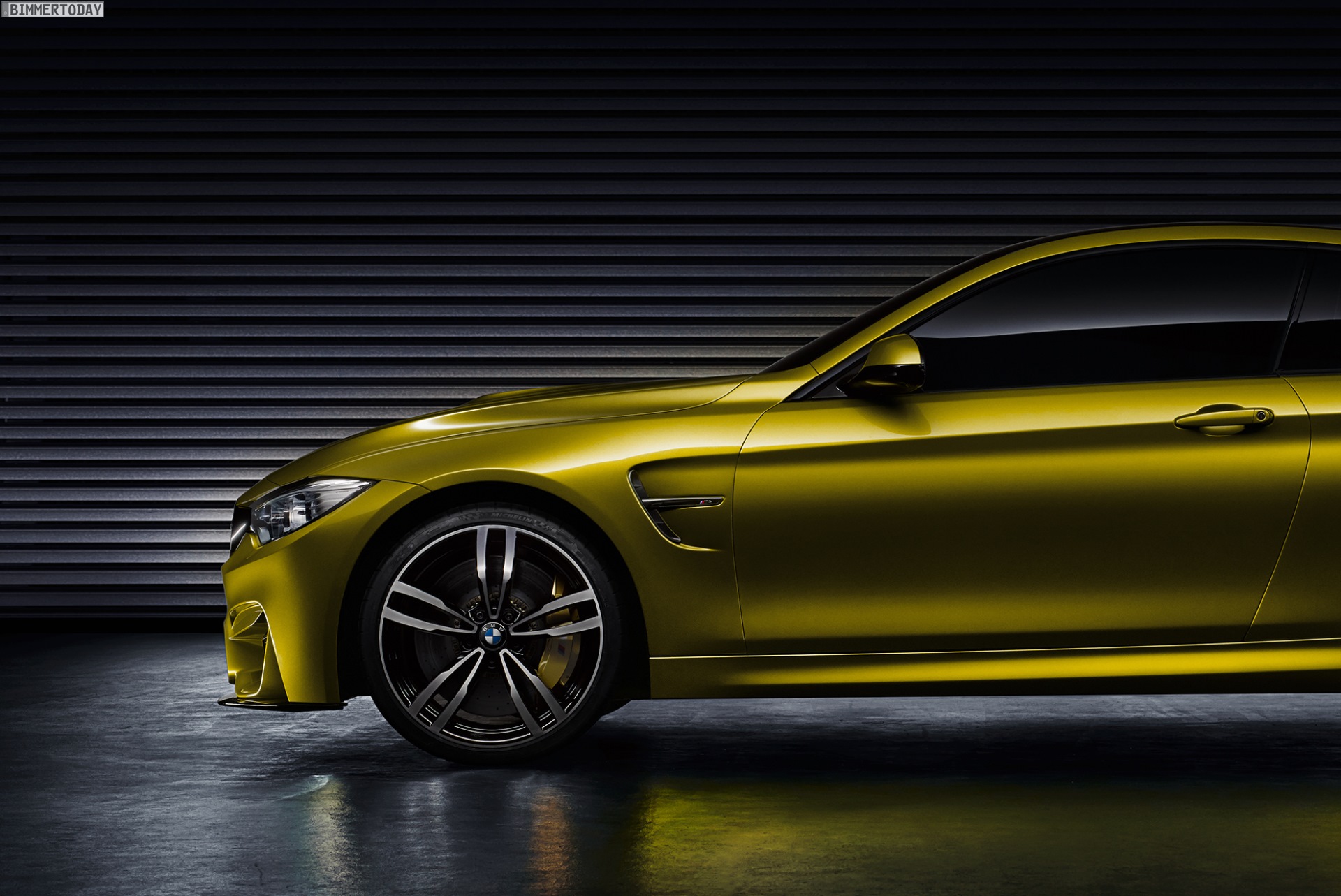 Die für viele Leser vielleicht wichtigste Antwort gleich zu Beginn: Nein, bei der Farbe des BMW M4 Concept F82 handelt es sich nicht um das vom M3 E46 bestens bekannte Phoenixgelb Metallic, sondern “nur” um eine Sonderlackierung namens Aurum Dust. In ihrer exakten Form wird es diese Farbe zwar nicht zur Serienreife schaffen, aber zum Marktstart des BMW M4 F82 im Jahr 2014 wird zumindest eine ähnliche Lackierung zur Wahl stehen und selbstbewussten M4-Kunden die Farbwahl erleichtern.