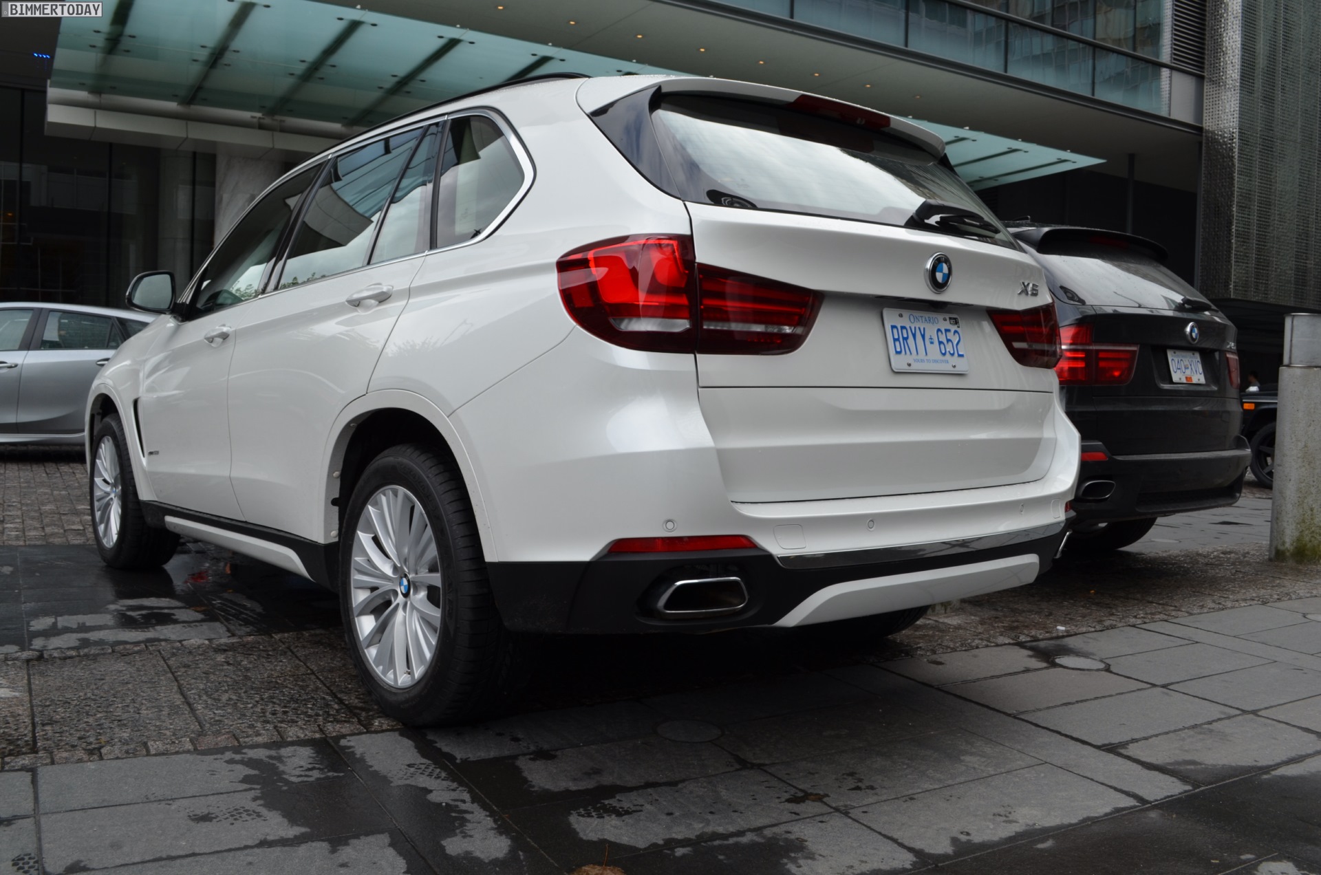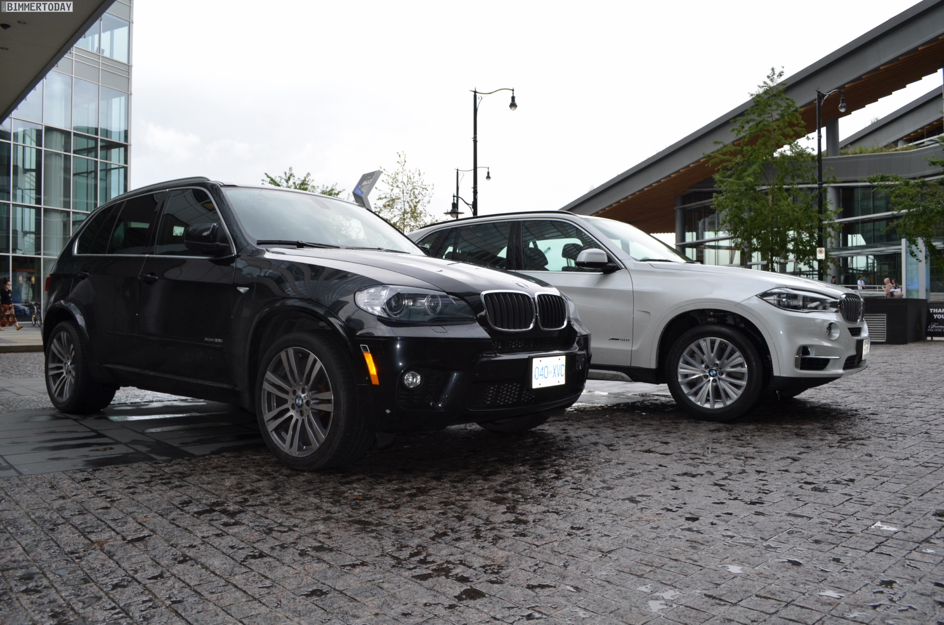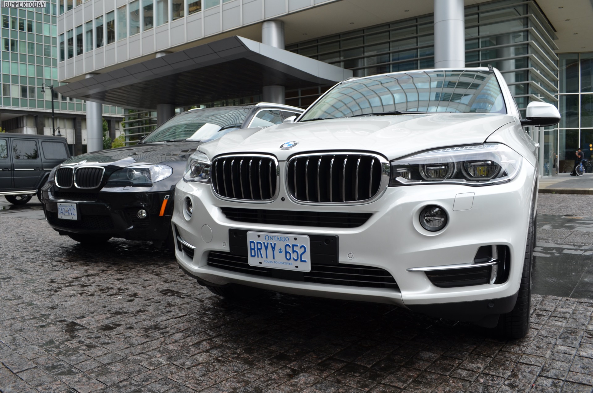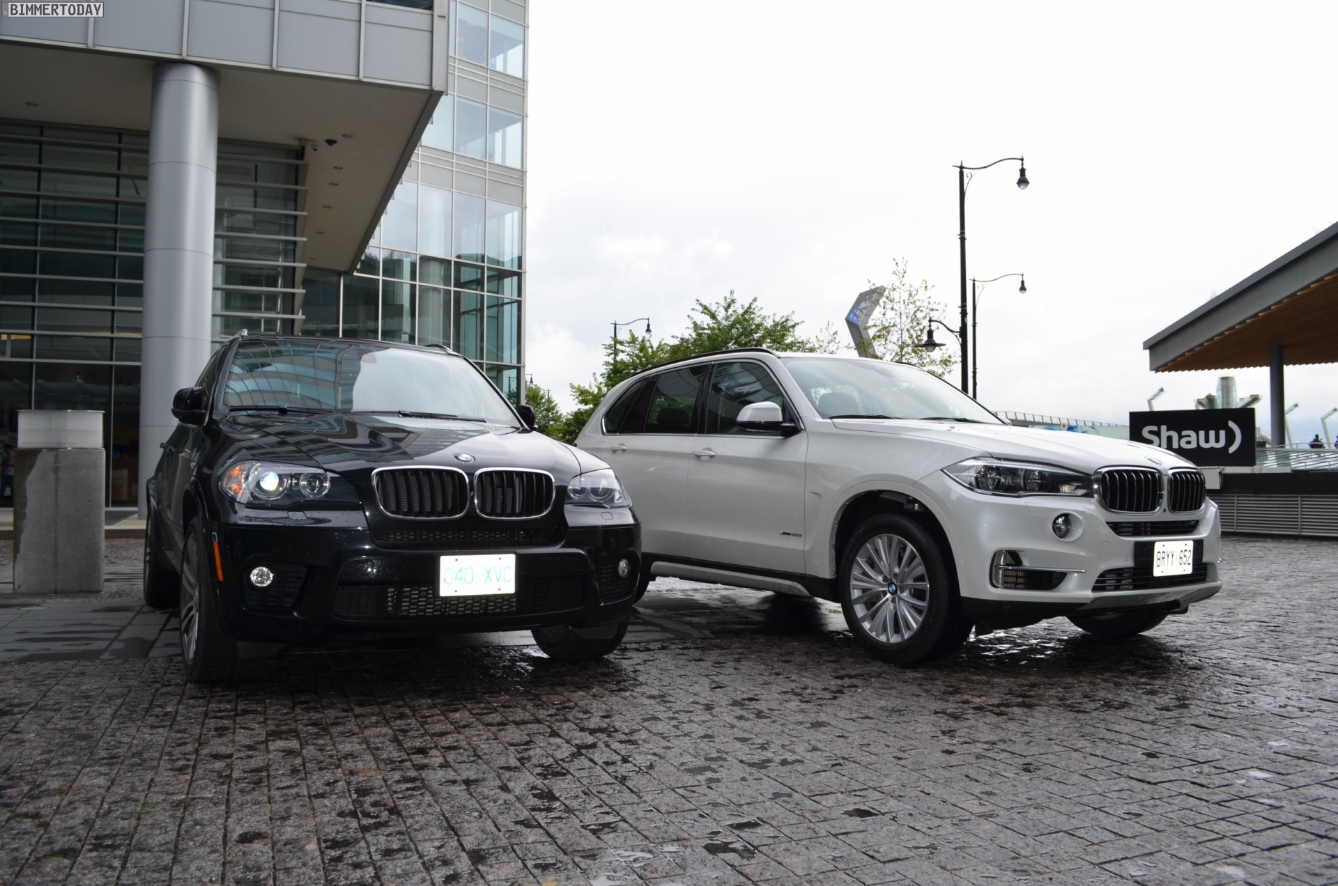 Zugegeben: Ganz perfekt ist der Vergleichspartner zwar nicht, aber wer will schon wählerisch sein? Durch Zufall hatten wir die Chance, den neuen BMW X5 F15 in Vancouver neben einen X5 der zweiten Generation (E70) zu stellen und auch wenn letzterer mit dem M Sportpaket ausgestattet ist und farblich das schwarze Gegenteil des weißen Neulings verkörpert, bekommen wir doch einen guten Eindruck von den beiden großen Münchner SUV im direkten Vergleich.