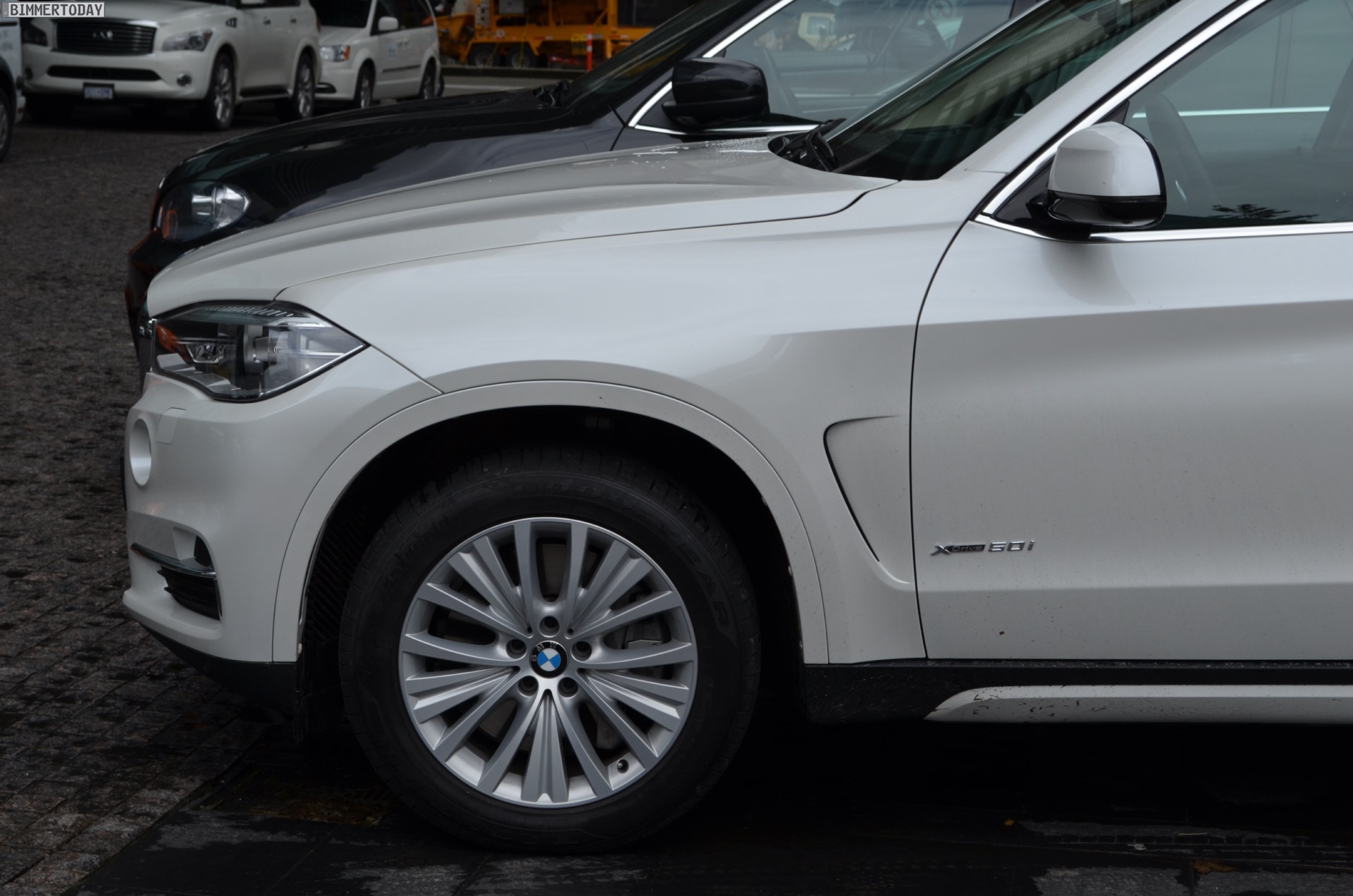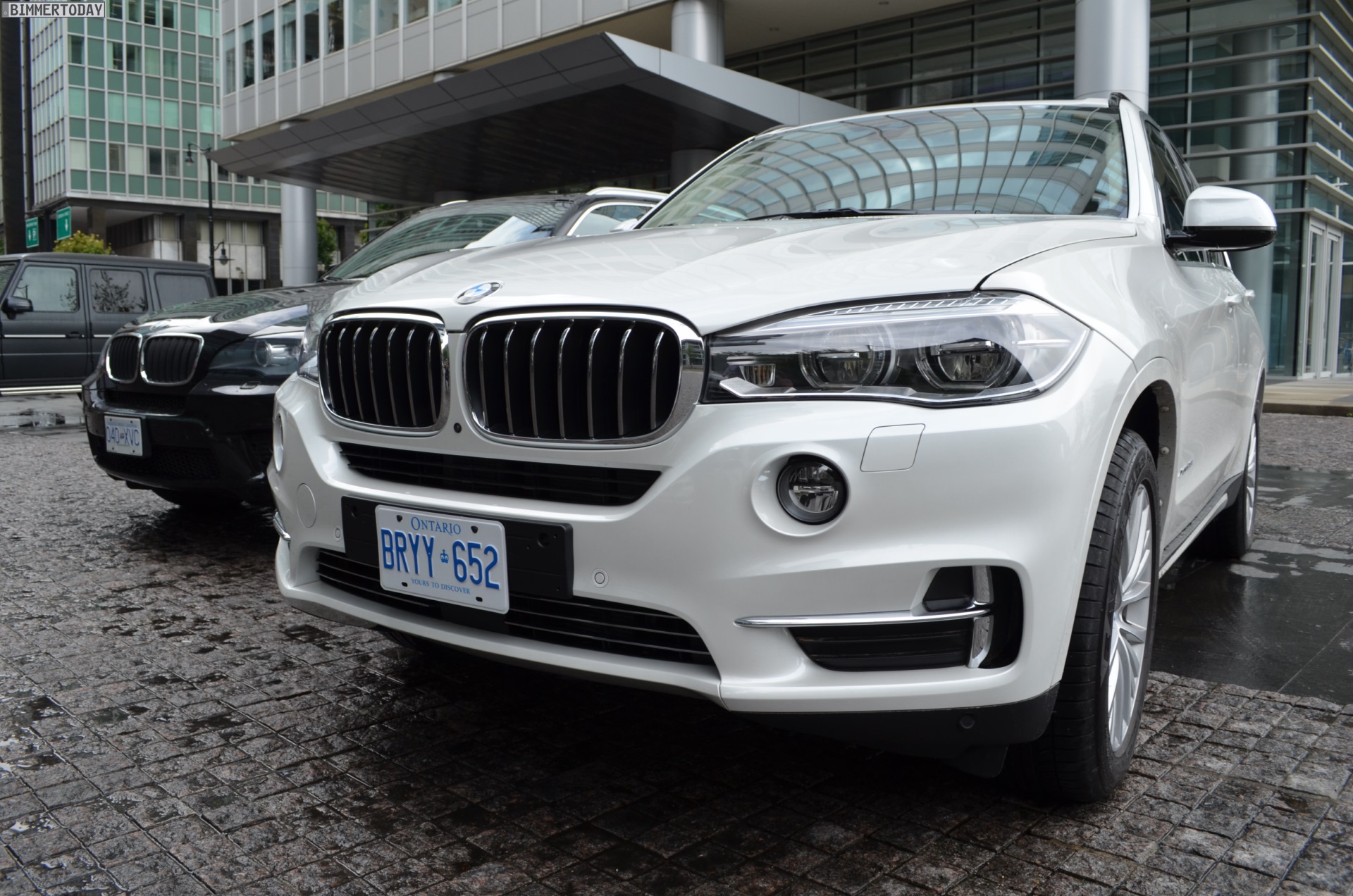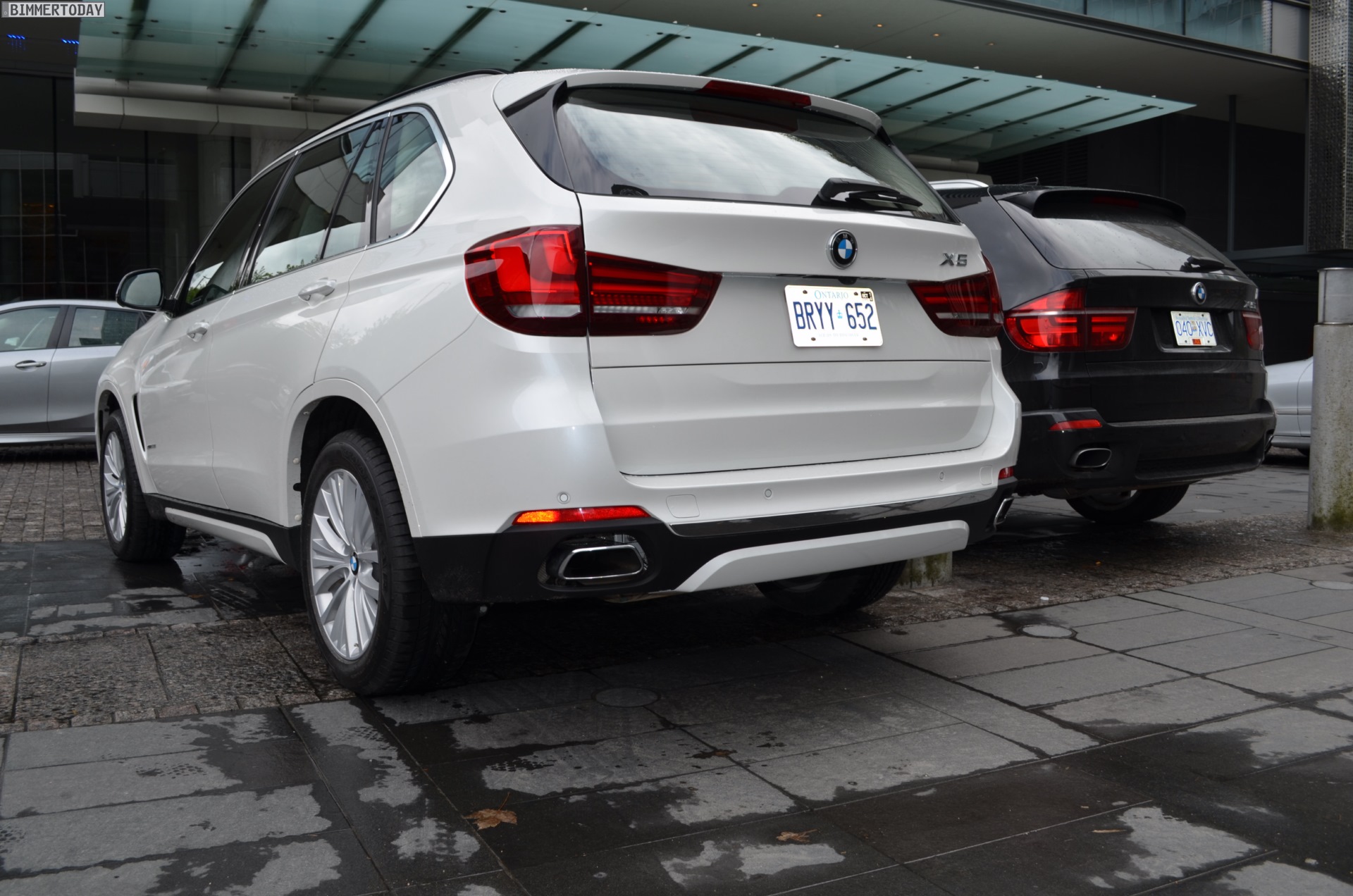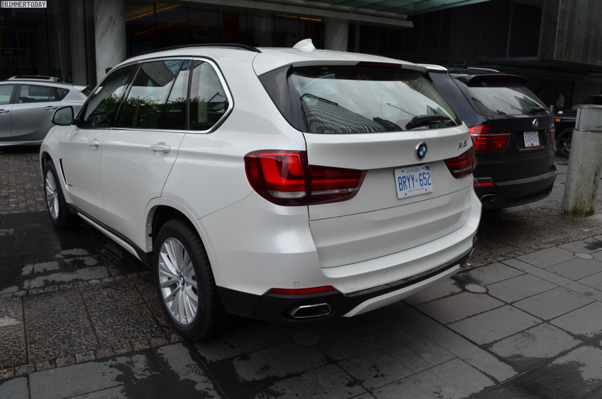 Zugegeben: Ganz perfekt ist der Vergleichspartner zwar nicht, aber wer will schon wählerisch sein? Durch Zufall hatten wir die Chance, den neuen BMW X5 F15 in Vancouver neben einen X5 der zweiten Generation (E70) zu stellen und auch wenn letzterer mit dem M Sportpaket ausgestattet ist und farblich das schwarze Gegenteil des weißen Neulings verkörpert, bekommen wir doch einen guten Eindruck von den beiden großen Münchner SUV im direkten Vergleich.