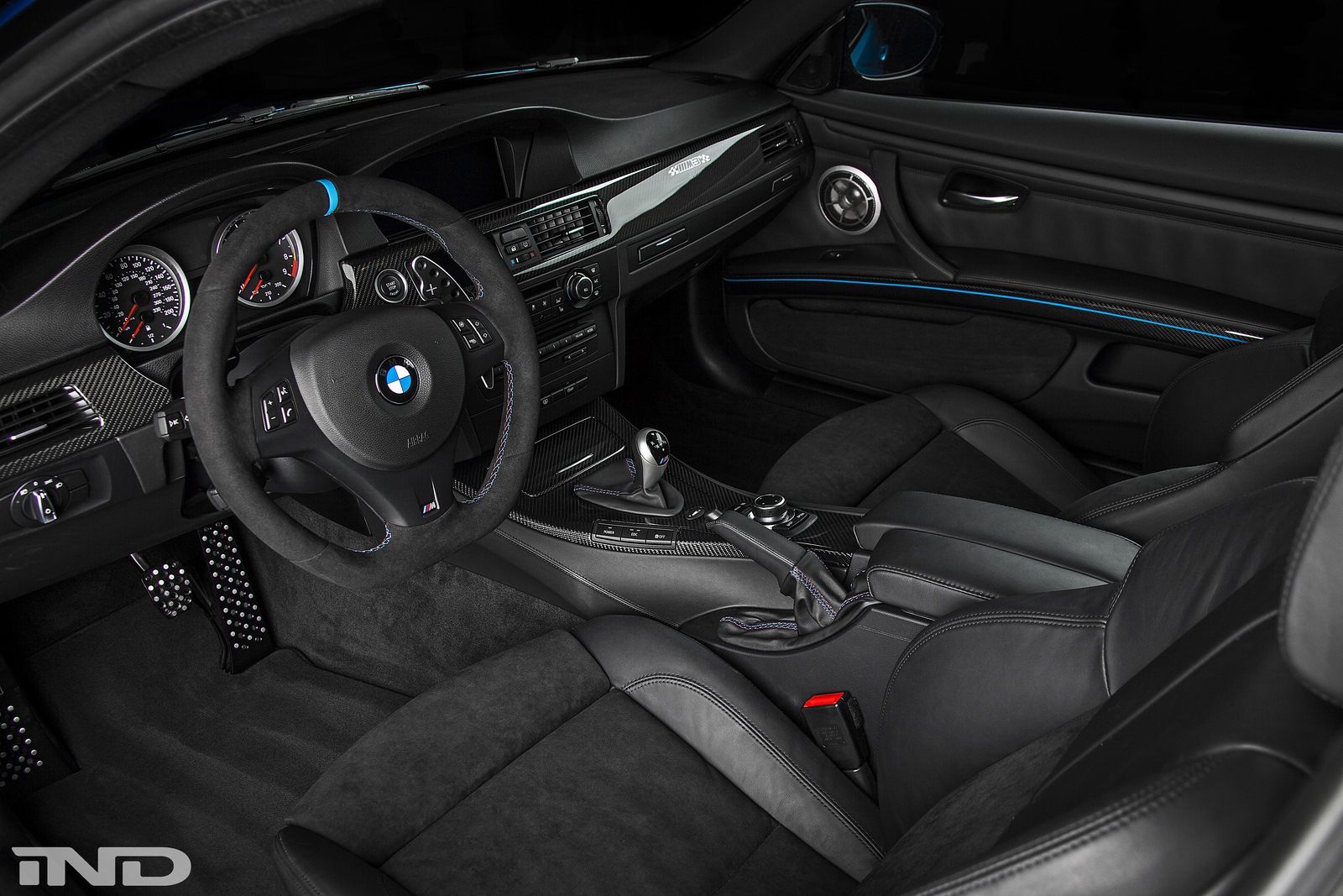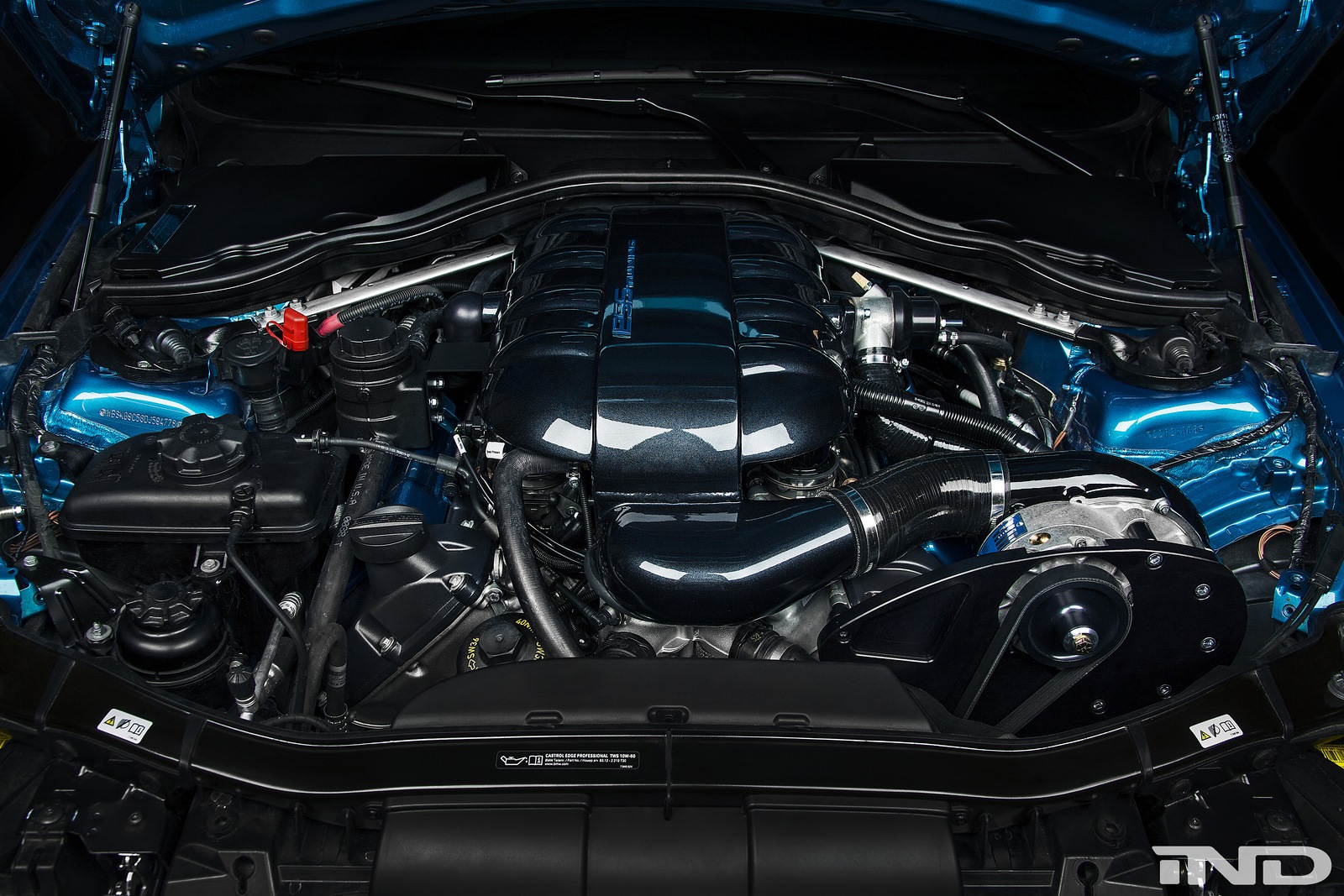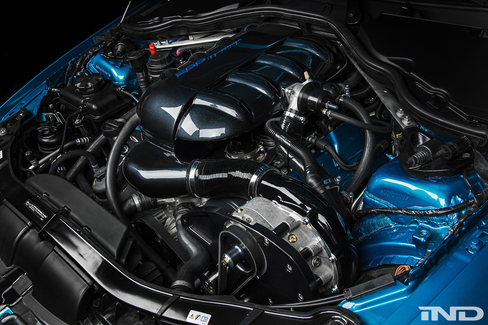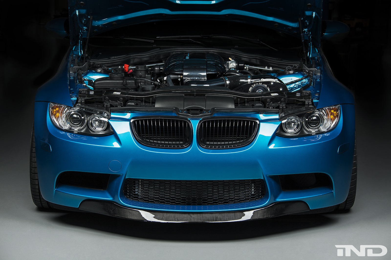 Unterm Blech fallen die Unterschiede deutlich größer und wirkungsvoller aus, denn IND verpasst dem Hochdrehzahl-V8 eine Kompressor-Aufladung. Das System ESS VT2-625 beschert dem BMW M3 rund 200 zusätzliche PS und bringt die Fahrleistungen auf ein völlig anderes Niveau. Die akustische Untermalung übernimmt eine Sport-Abgasanlage aus dem Hause Eisenmann.