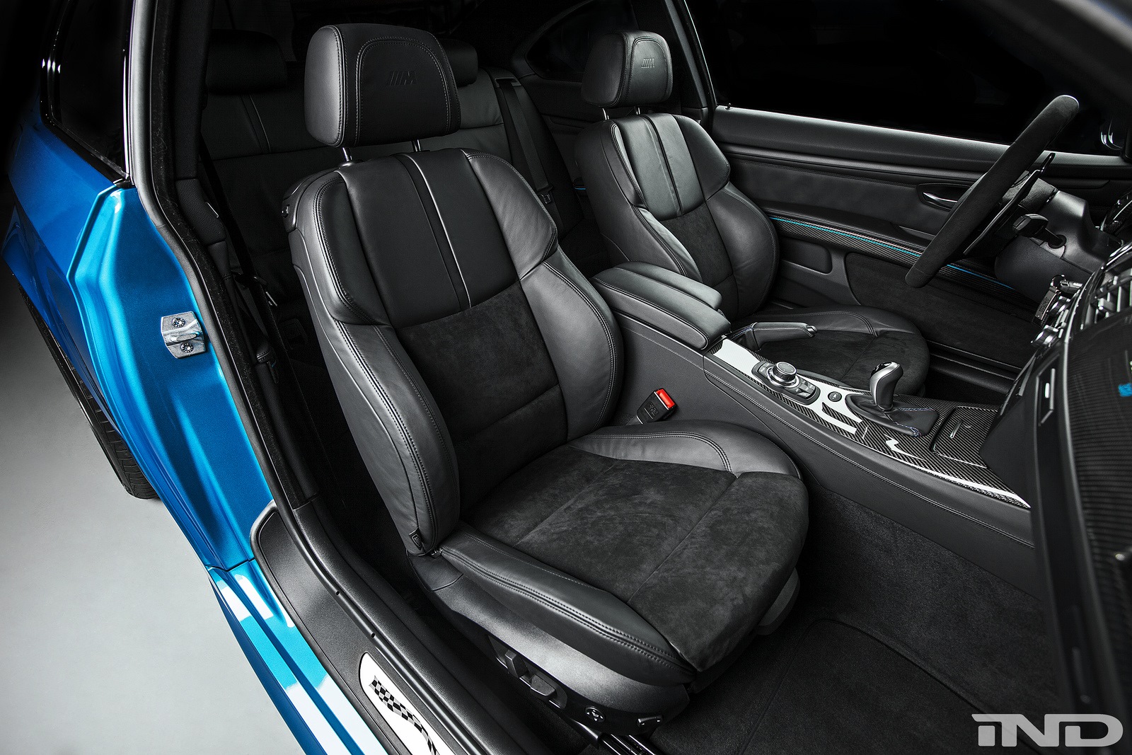 Im Innenraum gibt es verschiedene Akzente in Atlantis Blue, die der speziellen Außenfarbe den Weg in den Innenraum ebnen. Carbon-Zierleisten und viel Alcantara runden das Gesamtpaket ab.