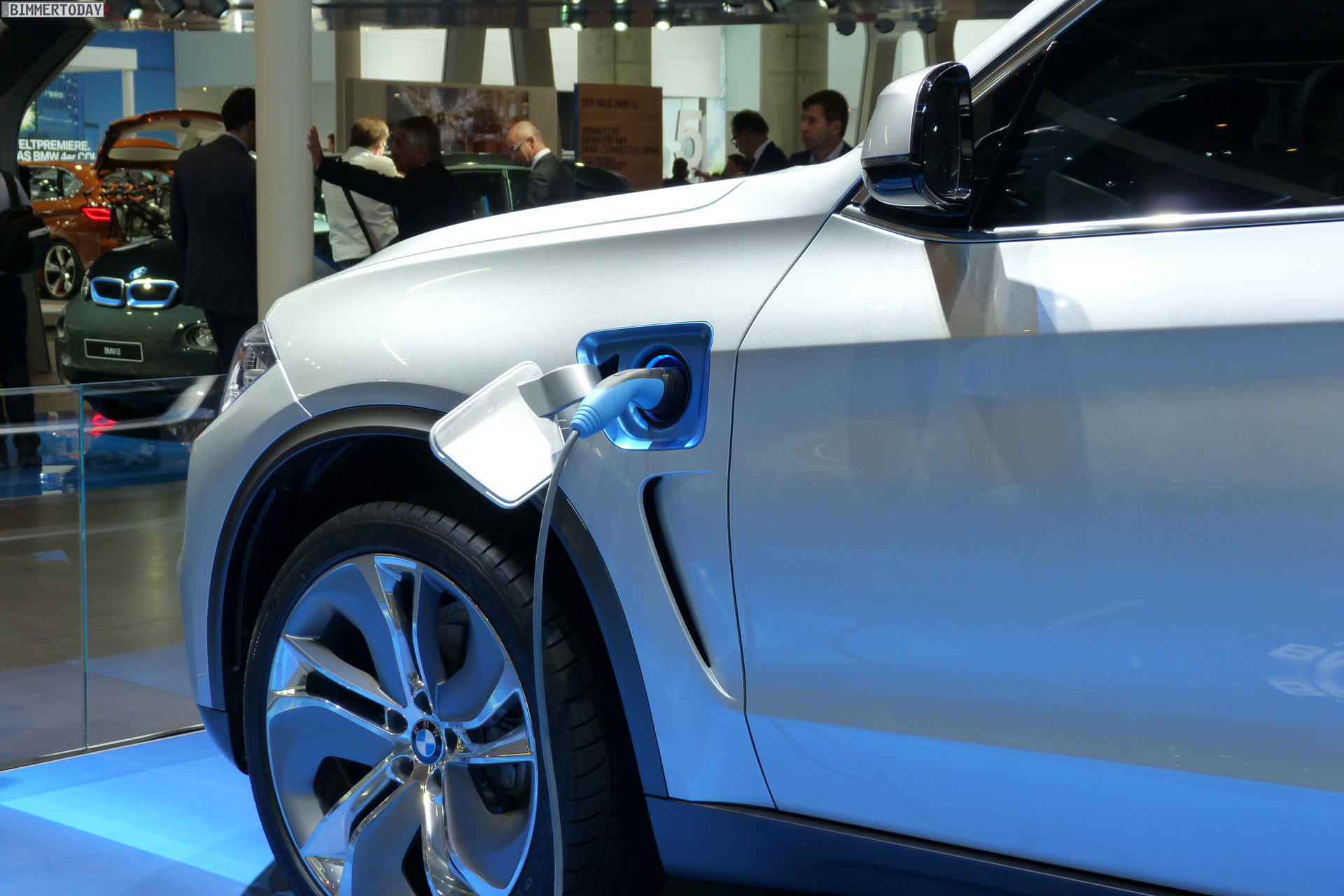 Am Stand der BMW Group auf der IAA 2013 spielt das Thema Plug in-Hybrid nicht nur beim Sportwagen i8 eine Rolle, auch die SUV-Studie BMW X5 eDrive F15 setzt auf die besonders sparsame Kombination von Verbrennungs- und Elektromotor. Während beim i8 ein Dreizylinder im Heck arbeitet, kommt im BMW X5 eDrive ein Vierzylinder mit 2,0 Litern Hubraum in der Front zum Einsatz.