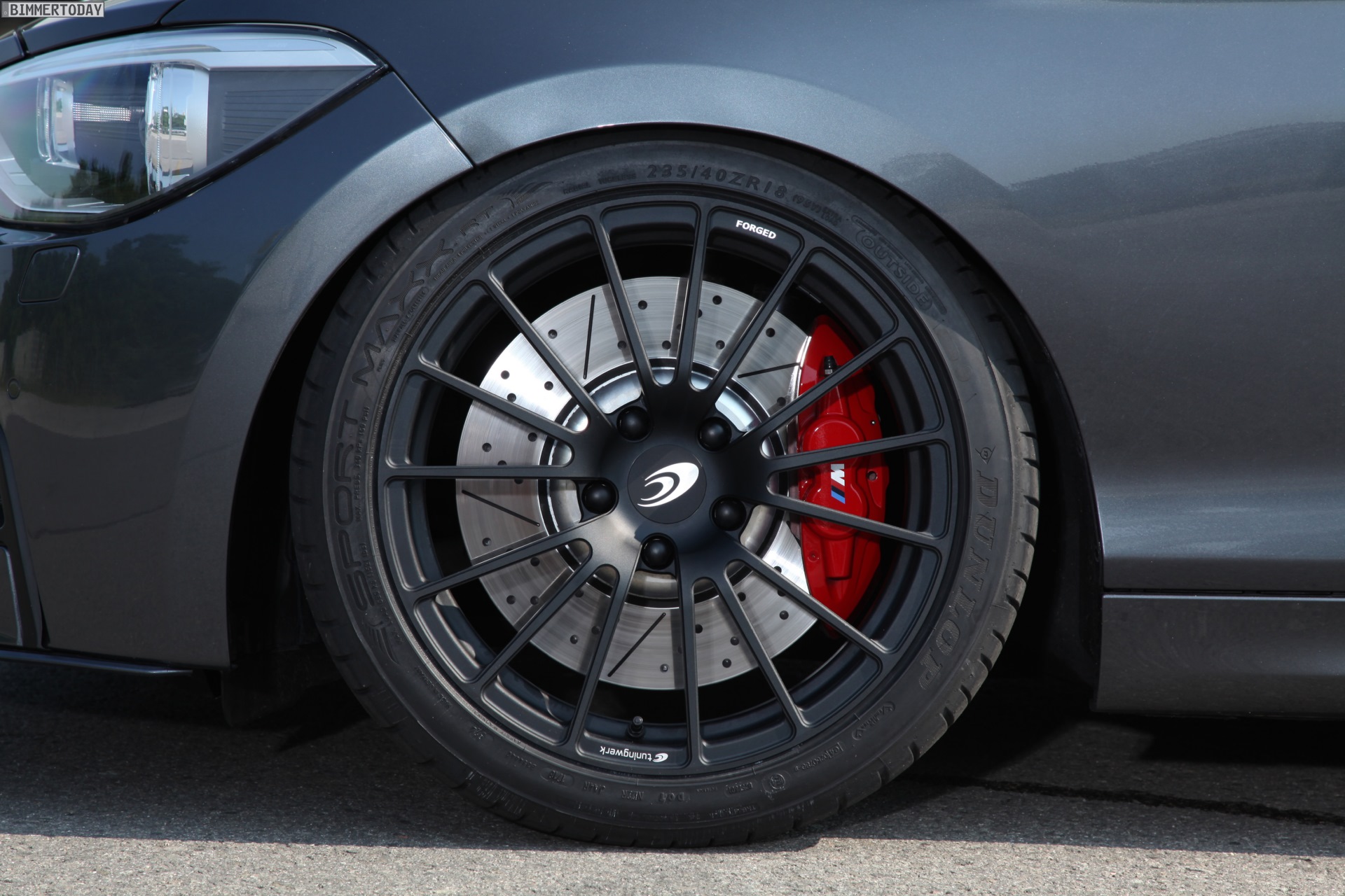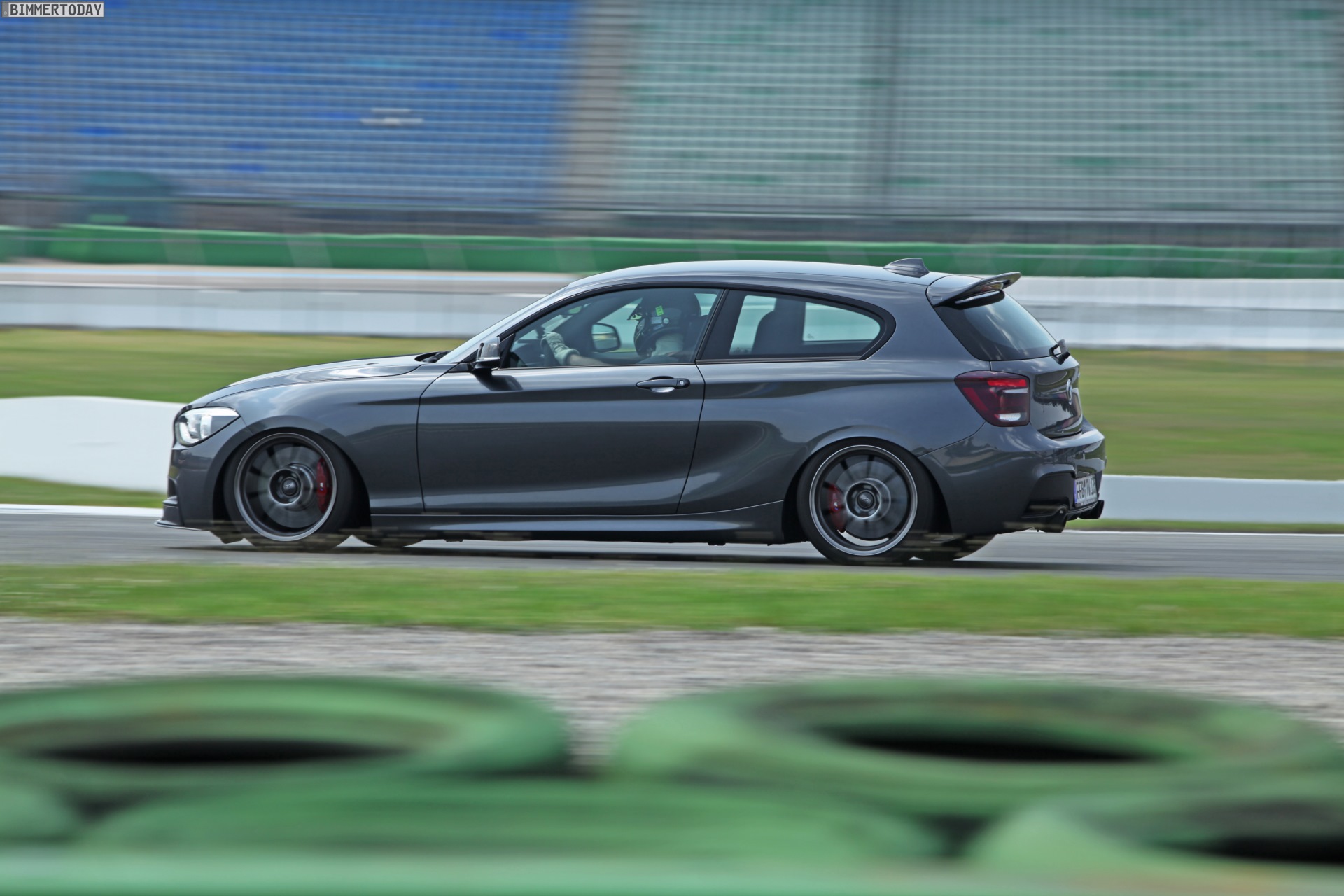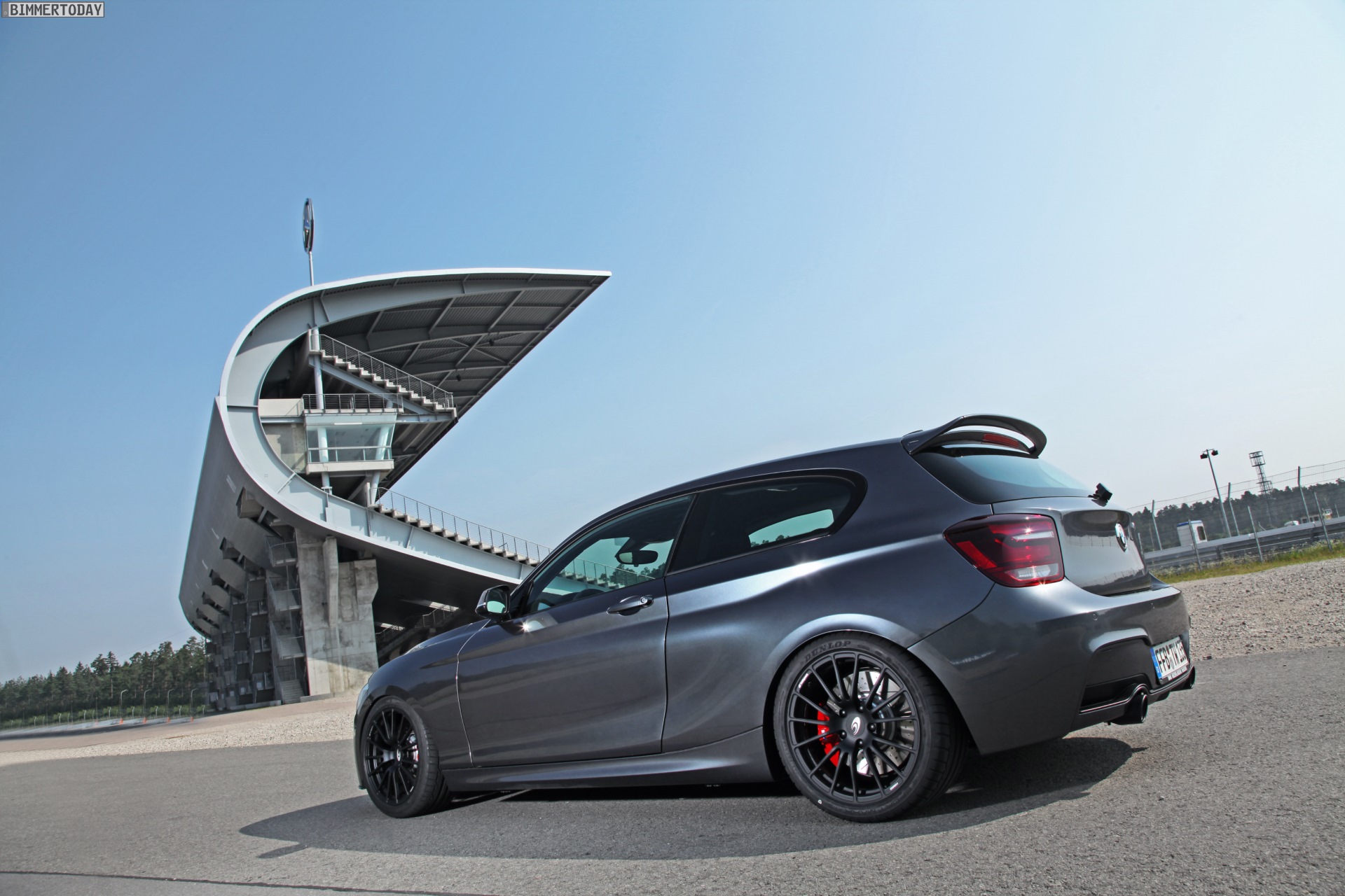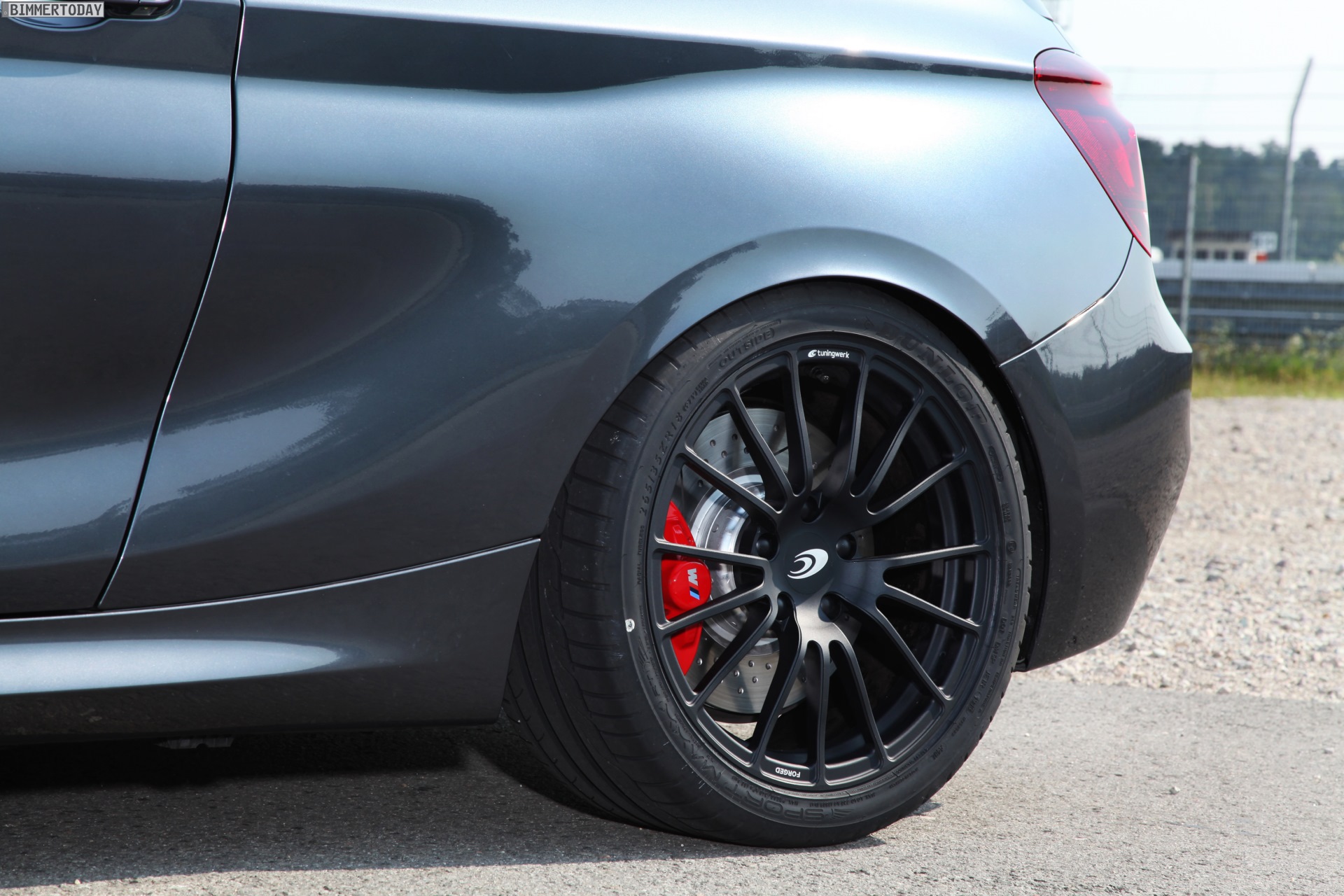 Um den M135i fit für die Rennstrecke zu machen, verbaut Tuningwerk neben einem Clubsport-Fahrwerk von KW auch ein Sperrdifferenzial an der angetriebenen Hinterachse. Für möglichst ausdauernde Verzögerung im Rennbetrieb dient eine Bremsanlage von BMW M Performance mit Rennbremsbelägen und Stahlflex-Leitungen von Tuningwerk. Natürlich dürfen bei einem ambitionierten Projekt auch die Reifen nicht fehlen: Semi-Slicks von Dunlop werden in den Formaten 245/40 R18 und 265/35 R18 verbaut und verbessern den Kontakt zur Straße maßgeblich.