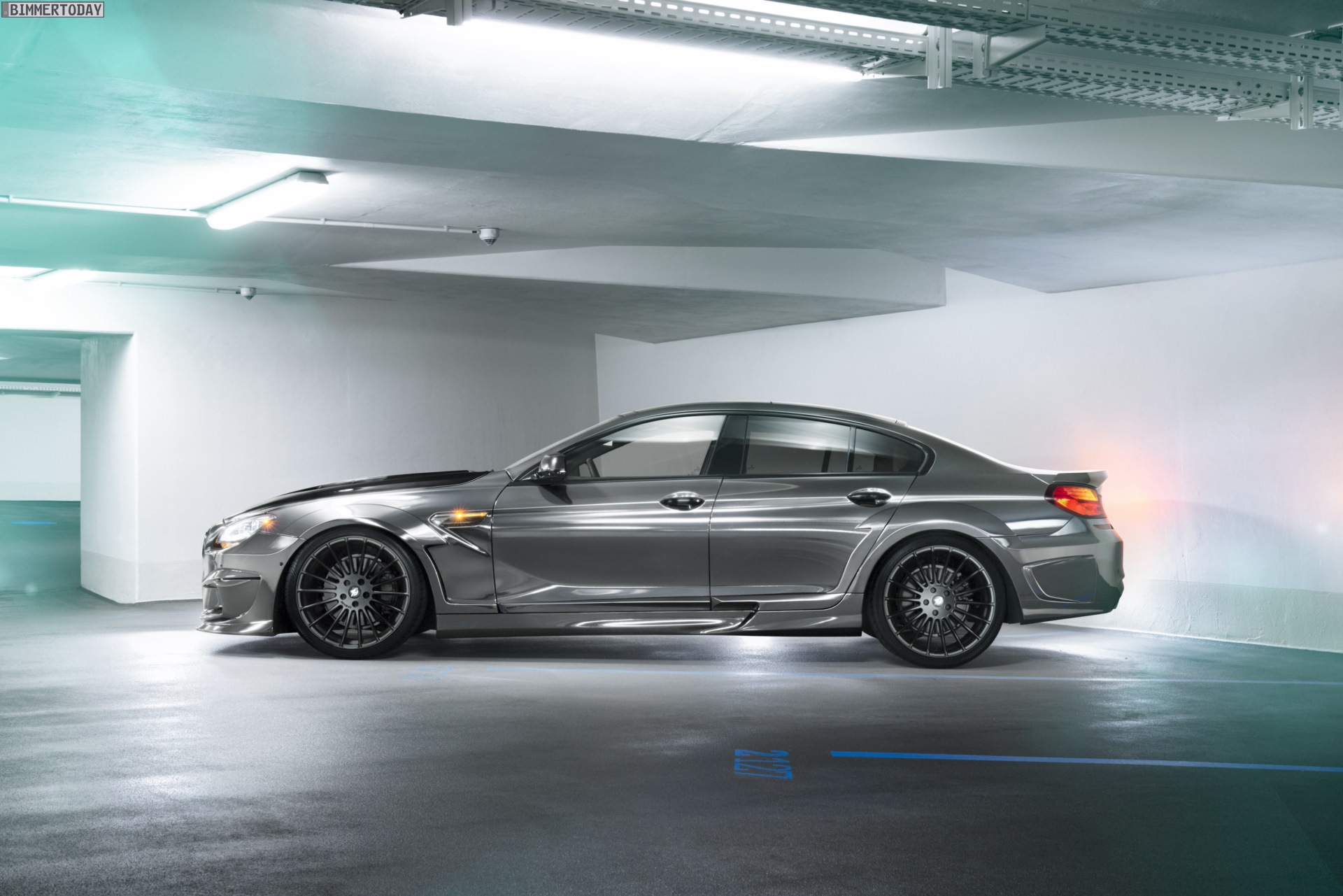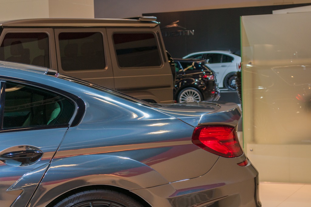 Neben der um 40 Millimeter breiteren Karosserie bietet der MIRROR auch 21 Zoll große Felgen, die mit 265 und 305 Millimeter breiten Reifen aus dem Hause Vredestein bezogen sind. Standesgemäßen Sound liefert eine Abgasanlage mit vier schwarz eloxierten Endrohren. Natürlich gibt es auch weiterhin Leistungssteigerungen für den V8-Biturbo, um dem BMW M6 Gran Coupé die zu Tuning-Optik und -Akustik passende Performance zu verpassen.