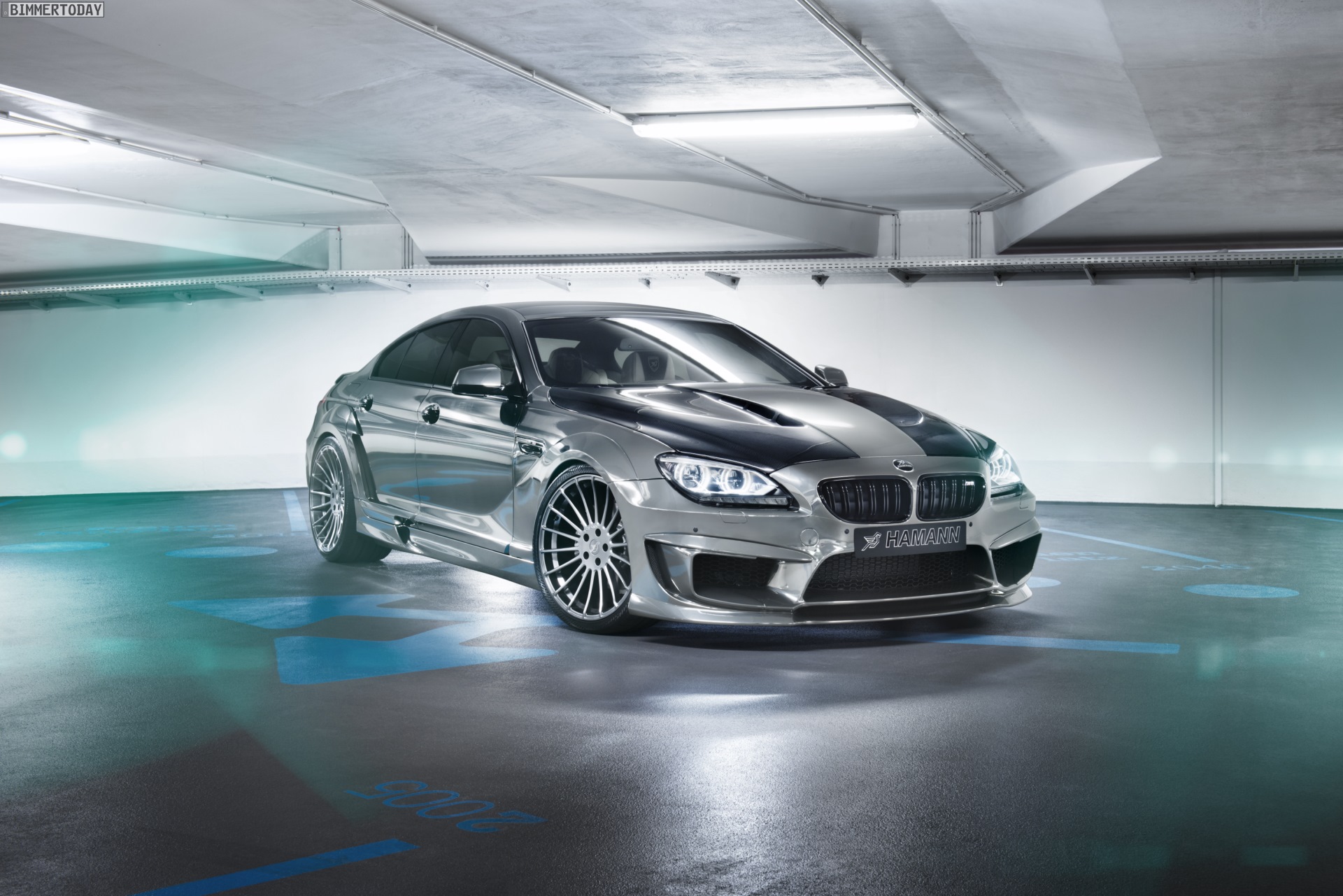 Auch ohne seine chrom-glänzende Oberfläche wäre der Hamann BMW M6 ein echter Hingucker, denn das Widebody-Kit mit rundum neuen Schürzen und Spoilern beschert dem viertürigen Coupé aus München so oder so einen deutlich aggressiveren Auftritt.