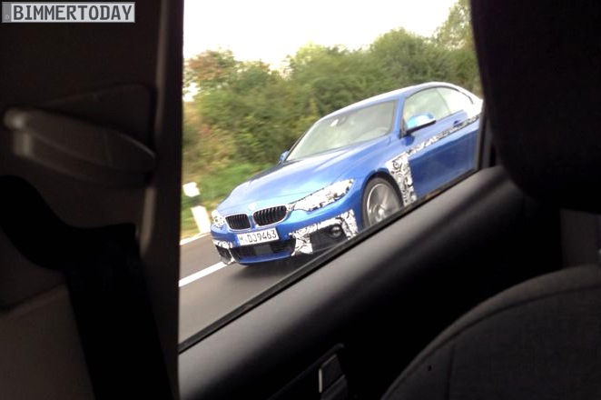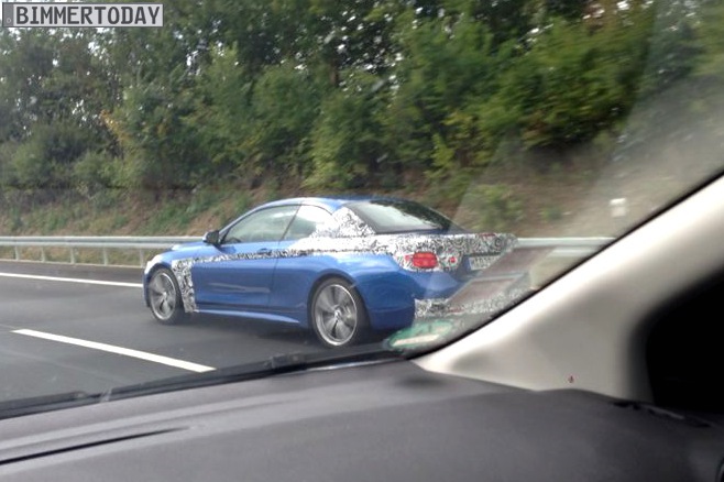 Kenner sehen sofort, dass der nun erwischte Prototyp das M Sportpaket trägt und auch in der exklusiv für Modelle mit M Paket erhältlichen Farbe Estorilblau lackiert ist. Offenbar wird es beim M Sportpaket keine relevanten Design-Unterschiede zum 4er Coupé mit M Paket geben, von dem es bereits reichlich ungetarnte Fotos gibt.