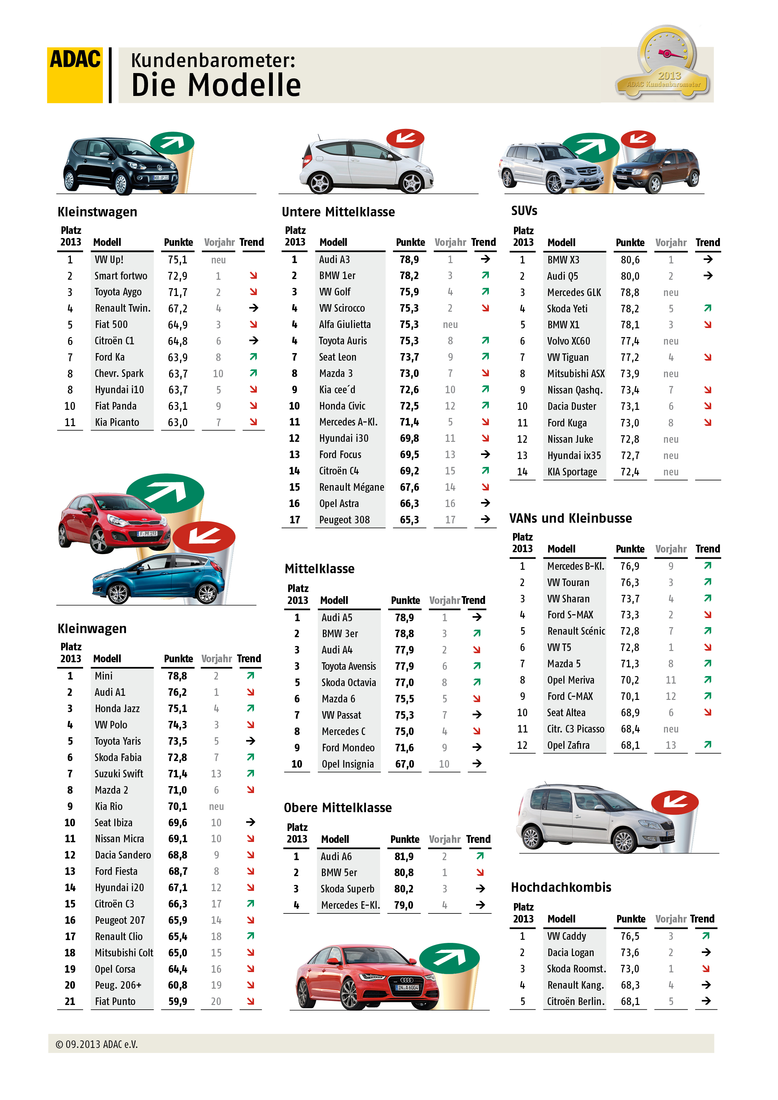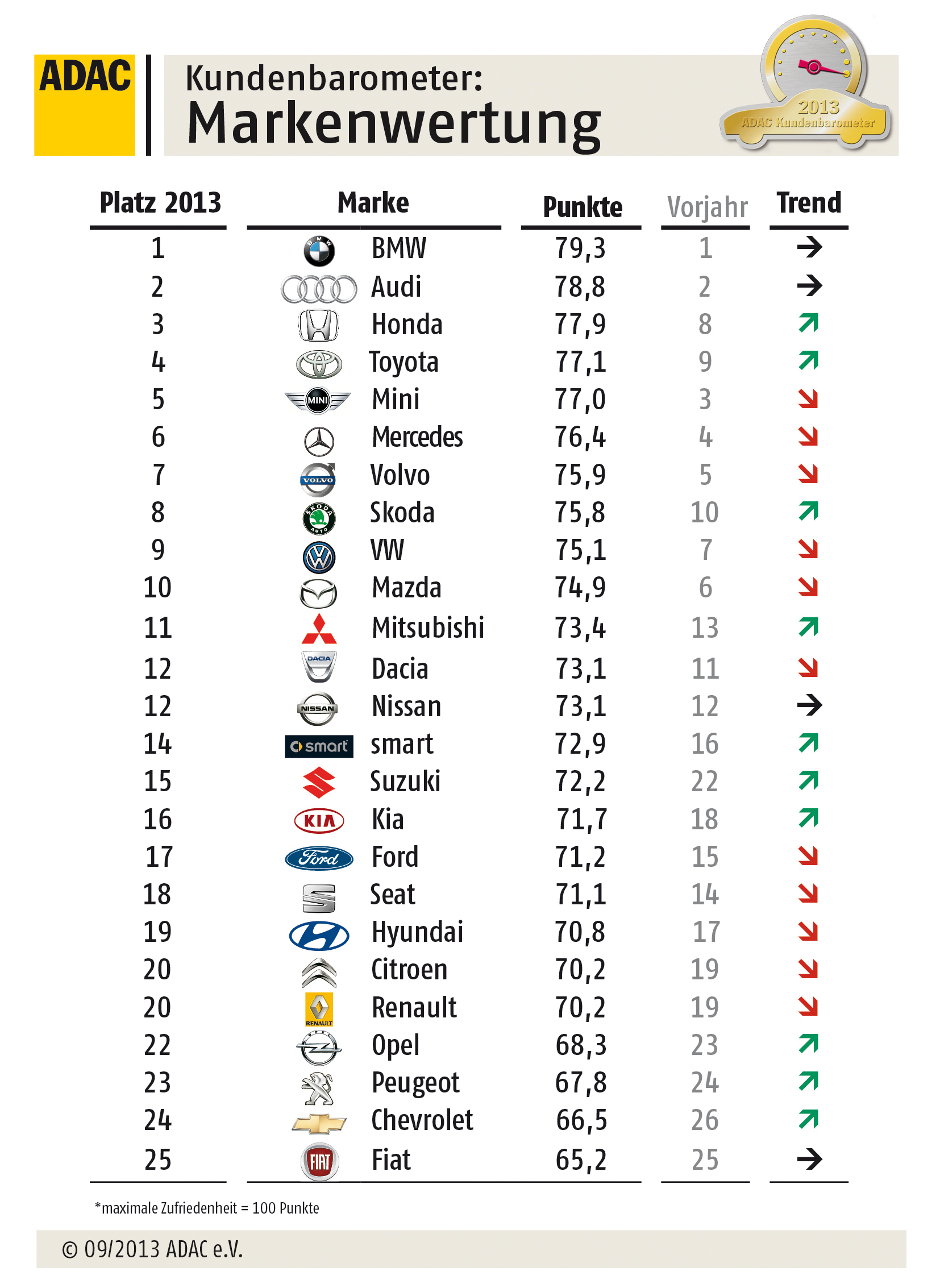 Für das ADAC Kundenbarometer 2013 wurden in einer repräsentativen Online-Umfrage über 20.000 Personen zu Erfahrungen und Kundenzufriedenheit mit ihrem Auto befragt. Das Kundenbarometer des ADAC ist damit Deutschlands größte und wichtigste Kundenzufriedenheits-Studie.