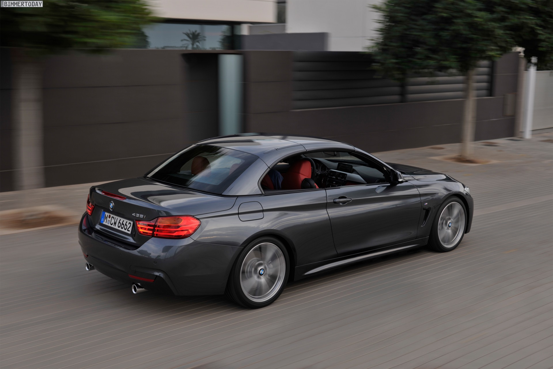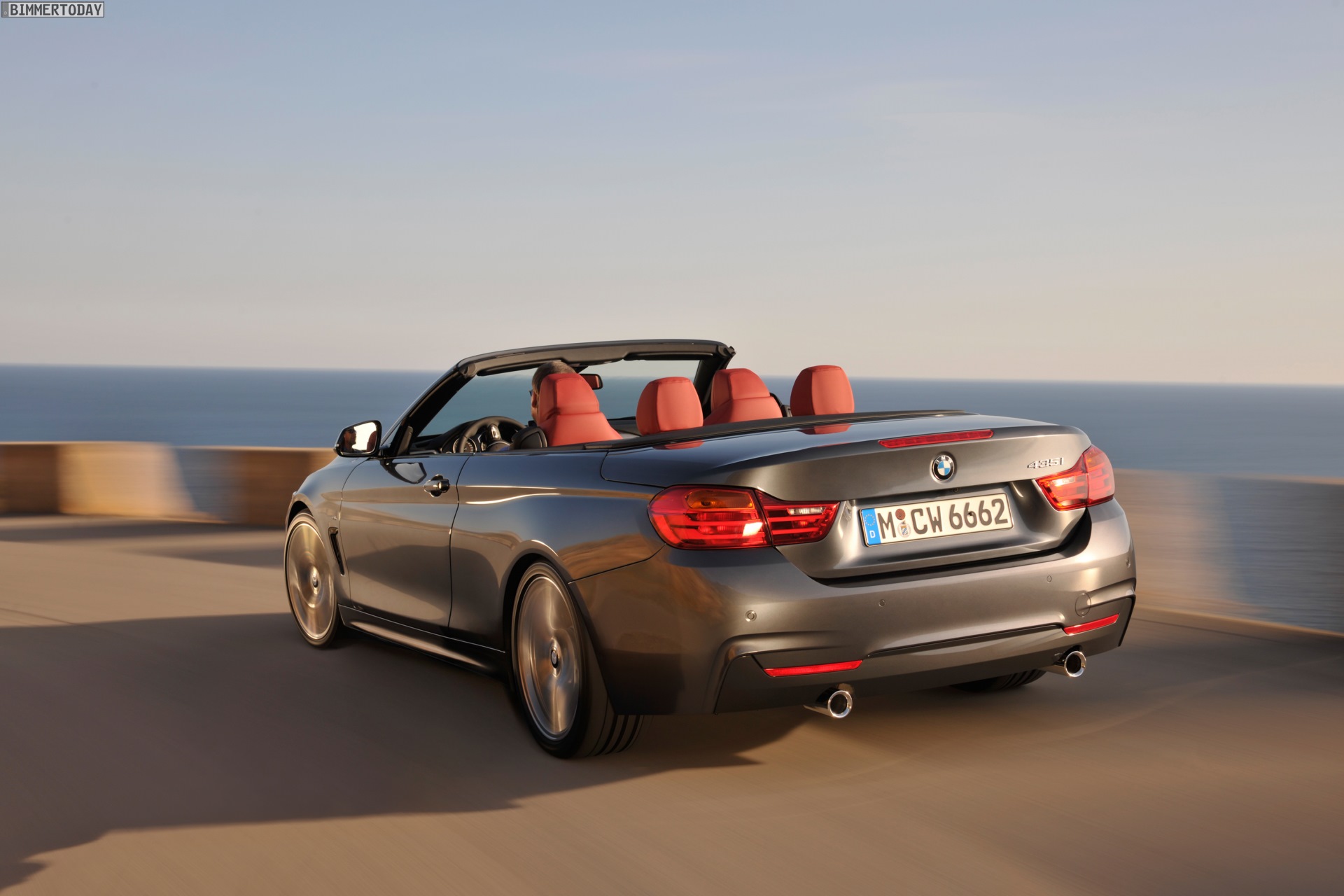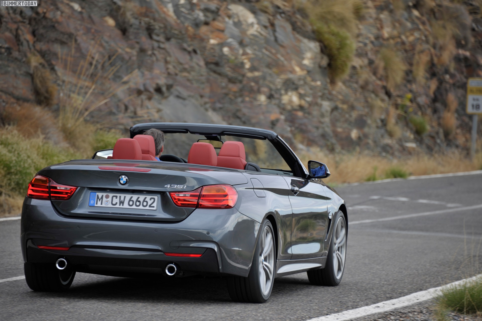 Neben den von uns zum Bild-Vergleich mit dem Audi S5 genutzten Studio-Fotos vom BMW 4er Cabrio F33 mit M Sportpaket gibt es auch einige Fotos, die das zweite Mitglied der neuen 4er-Reihe in freier Wildbahn zeigen. Bei der Lackierung handelt es sich um die Farbe Mineralgrau Metallic, die im Gegensatz zum Estorilblau der ersten Bilder mit M Paket auch für Modelle ohne das Sportpaket erhältlich ist.