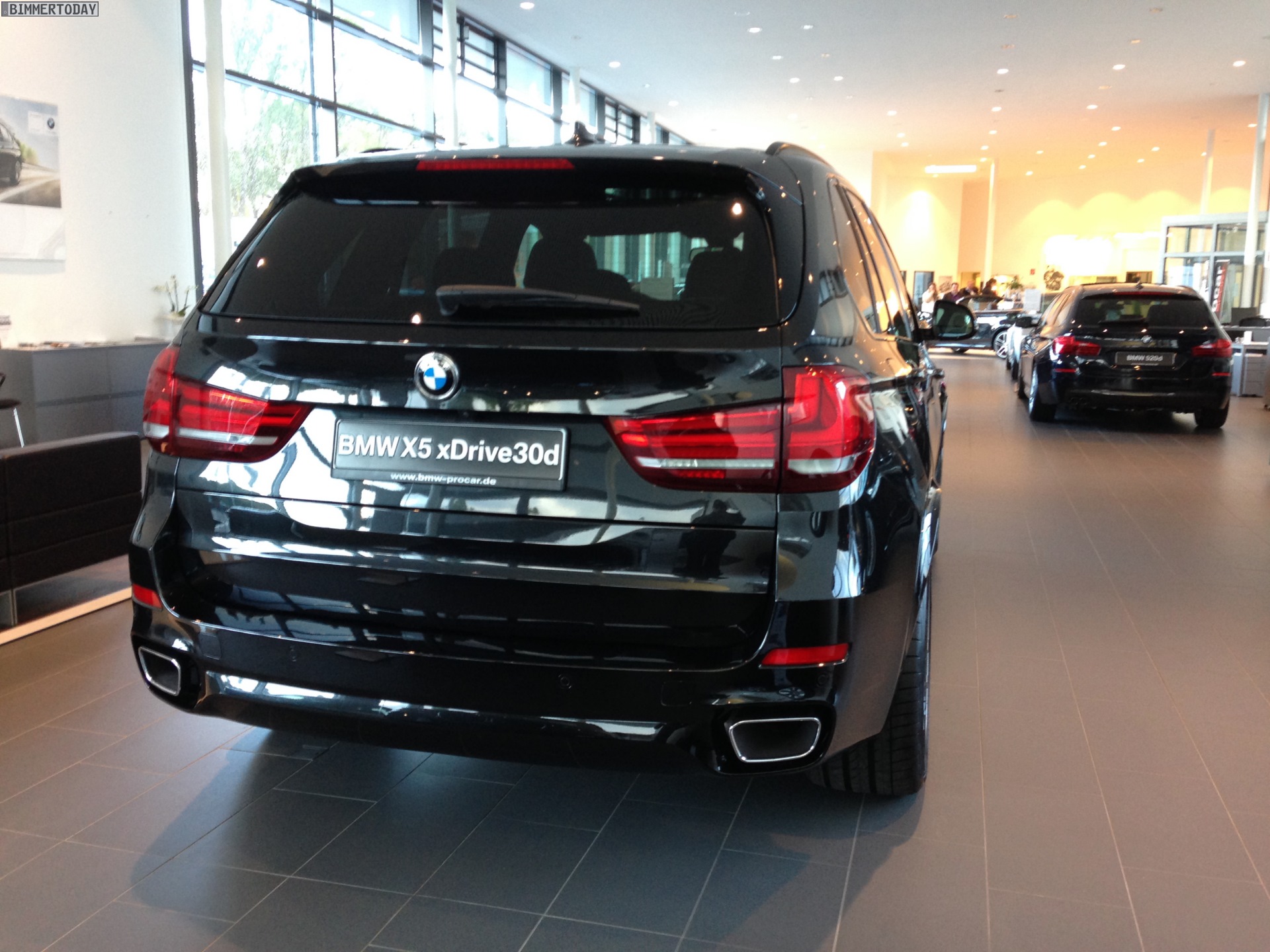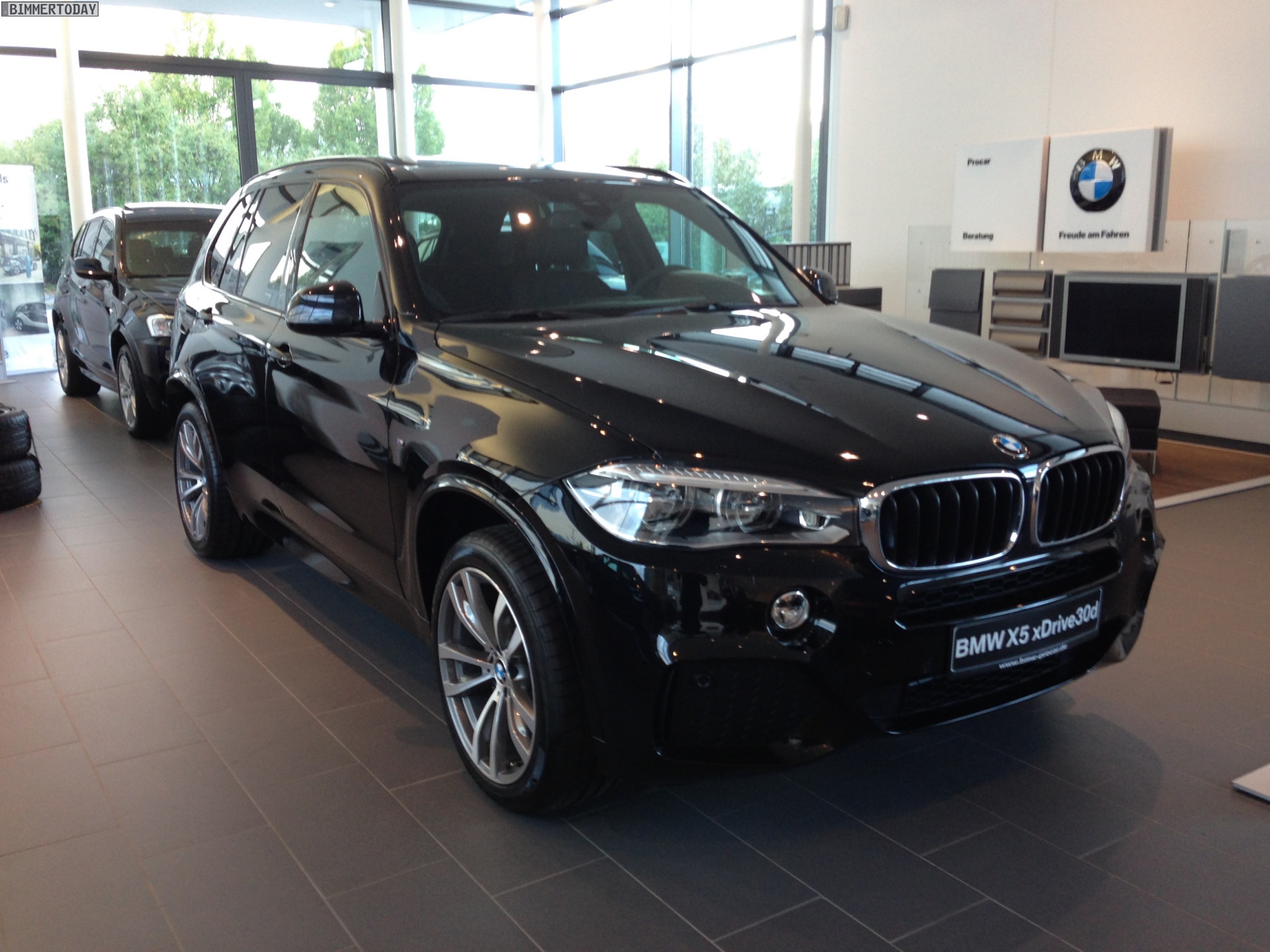 Mehr als drei Wochen vor der offiziellen Premiere des BMW X5 F15 in Deutschland am 16. November 2013 hat ein weiterer Leser das nächste Exemplar des Luxus-SUV beim Händler seines Vertrauens zu Gesicht bekommen. Nachdem wir vor kurzem einen X5 Design Pure Experience auf Live-Fotos zeigen konnten, folgt nun ein X5 xDrive30d mit M Sportpaket in Schwarz.