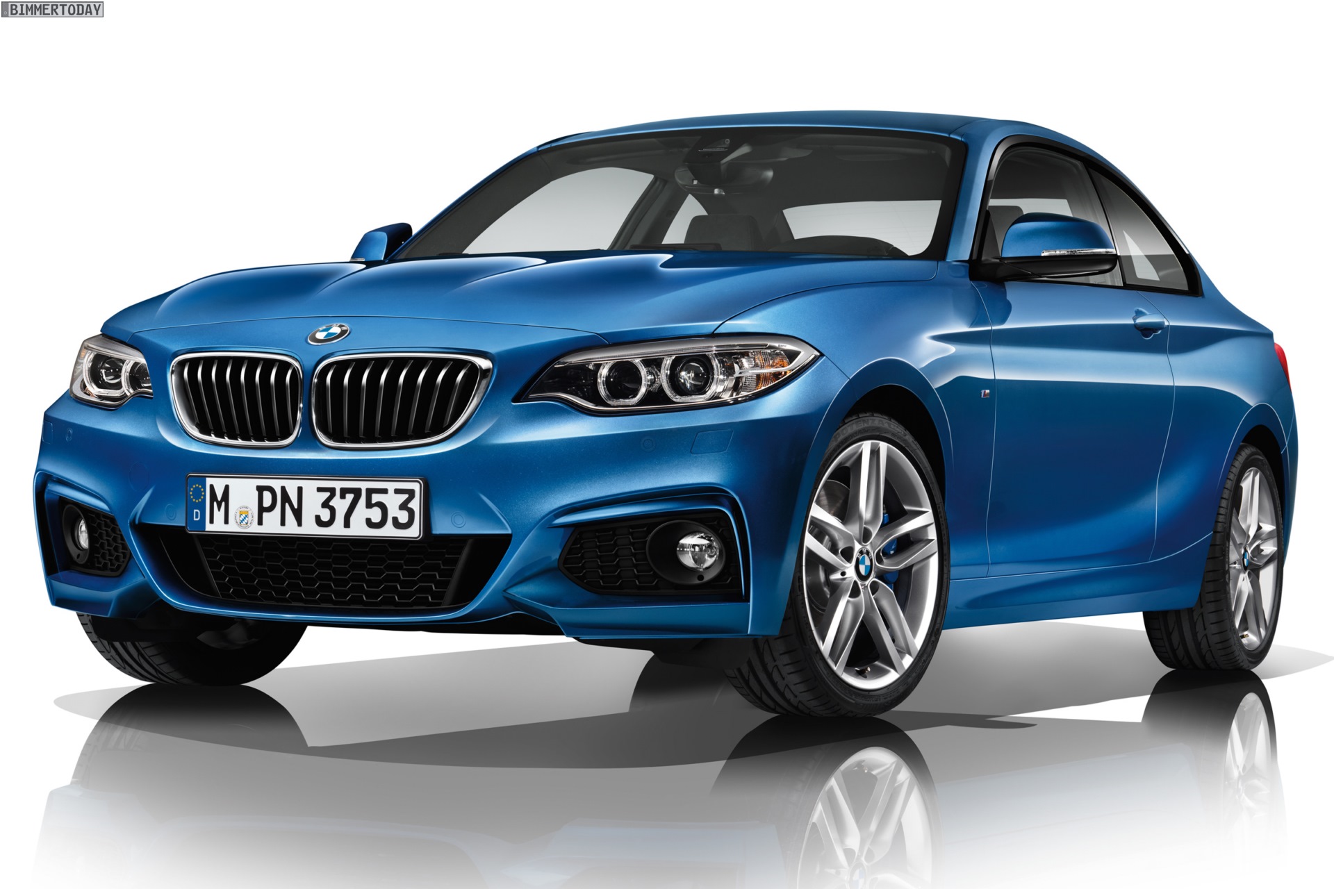 Das BMW 2er Coupé F22 ist ab Marktstart auch als M235i erhältlich und wie alle M Performance Modelle trägt der M235i serienmäßig die Optik des M Pakets. Da liegt es auf der Hand, dass auch das M Sportpaket für alle anderen Motorisierungen direkt angeboten wird. Die ersten Fotos zeigen uns ein BMW 220d Coupé F22 mit M Sportpaket in Estorilblau, wobei diese Farbe auch im Fall der neuen BMW 2er-Reihe exklusiv jenen Fahrzeugen vorbehalten bleibt, die das Werk mit Sportpaket verlassen.