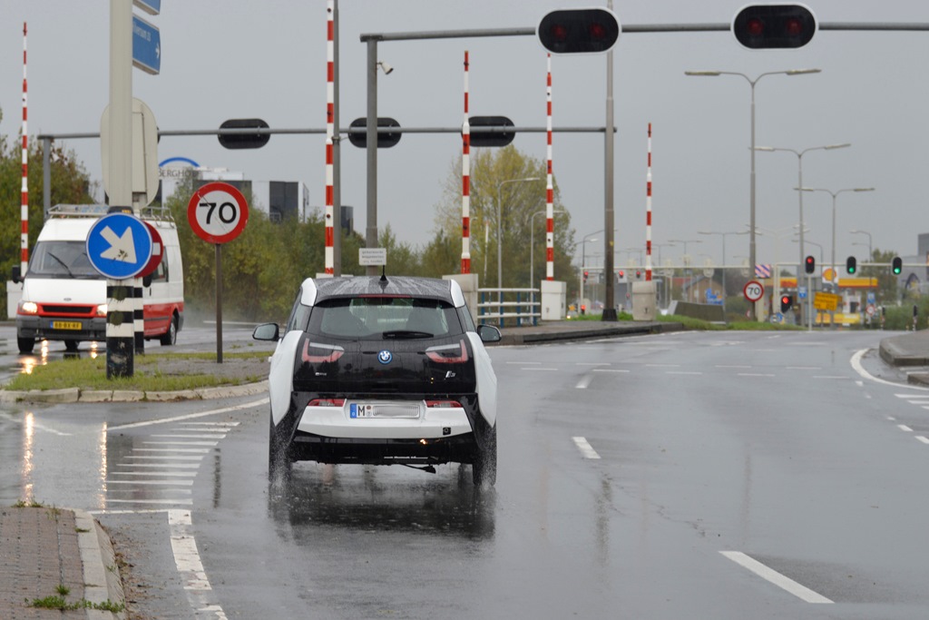Noch vor dem Marktstart und somit deutlich früher als erhofft war der neue BMW i3 in einen ersten Unfall im öffentlichen Straßenverkehr verwickelt. Die exklusiven Fotos von Eric van Lieshout zeigen einen in München zugelassenen i3 in Capparisweiß, auf den an einer Kreuzung ein Seat Altea XL aufgefahren ist. Den Beschädigungen am Seat nach zu urteilen handelte es sich um einen weniger schweren Auffahrunfall mit relativ geringer Geschwindigkeit, Personen kamen in beiden Autos nicht zu Schaden.