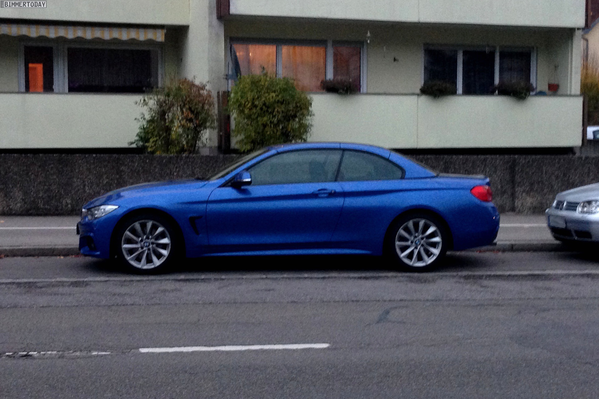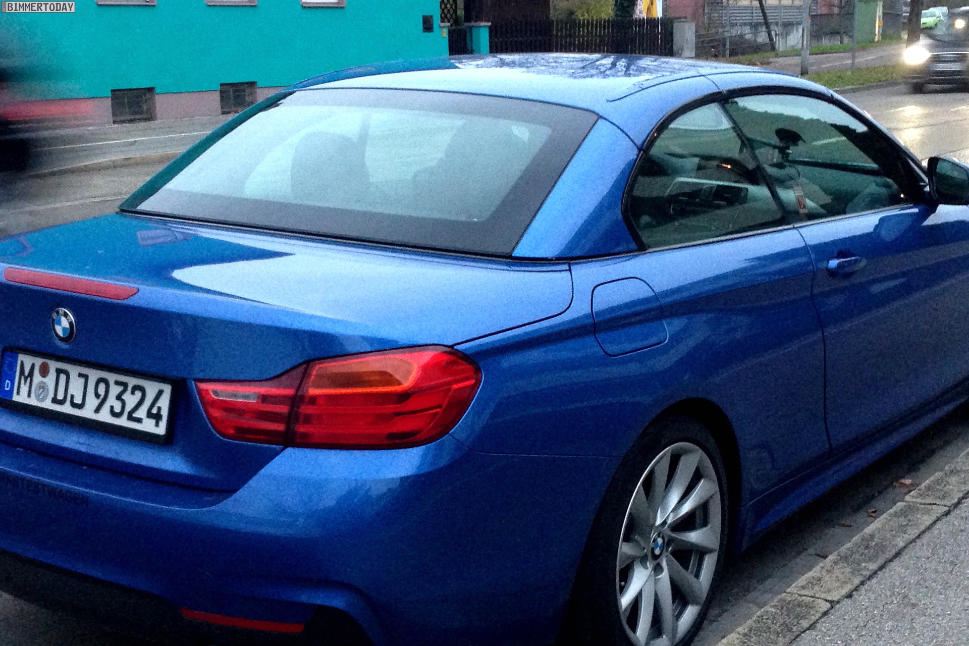 Zwar kann das Cabrio mit geschlossenem Dach nicht seine ganze Schönheit entfalten, wir erhalten aber dennoch den bisher realistischsten Eindruck vom neuen 4er Cabrio in alltäglicher Umgebung. Auf den ersten Blick dürften viele Menschen das Cabrio mit geschlossenem Verdeck für ein Coupé halten: