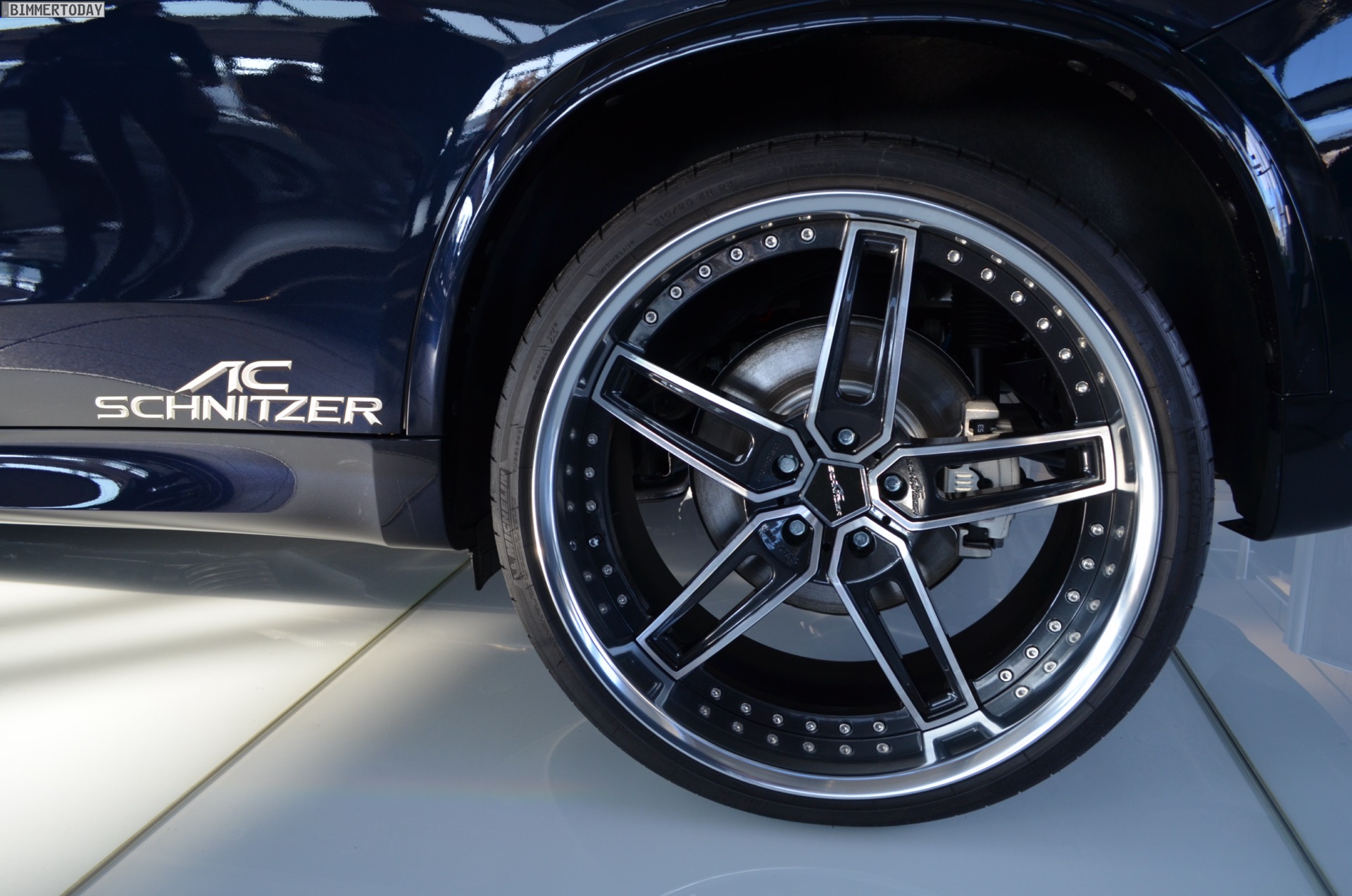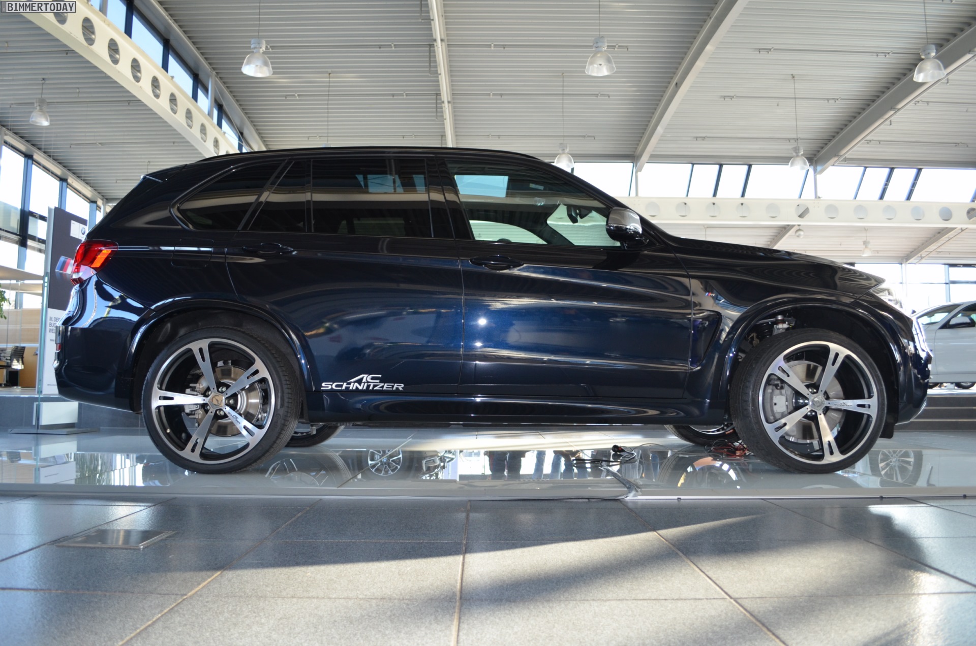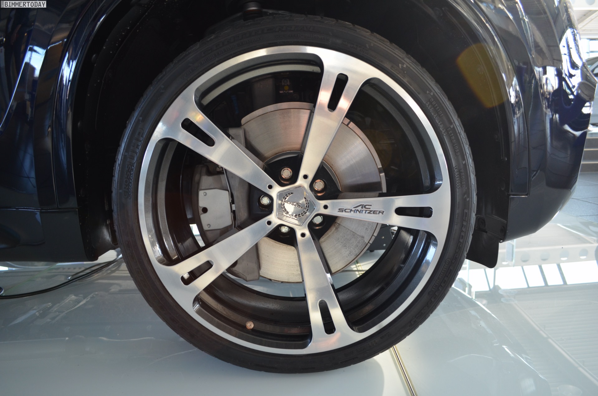 Beim Autohaus Kohl war der neue BMW X5 M50d F15 bereits mit Tuning-Felgen von AC Schnitzer zu sehen, was uns einen ersten Eindruck vom neuen SUV mit wirklich großen Rädern beschert. In Fahrtrichtung rechts trägt der gezeigte X5 die AC Schnitzer Felge Typ V in 22 Zoll, links glänzt Typ VIII Racing in 23 Zoll.