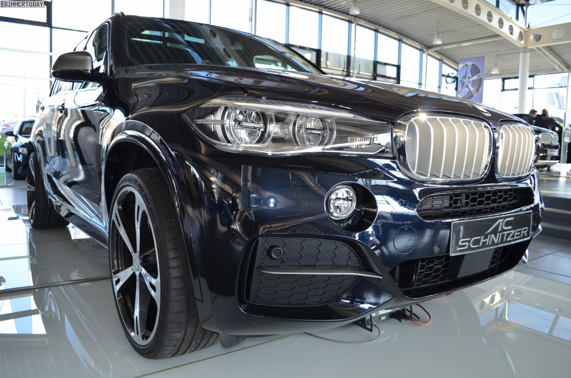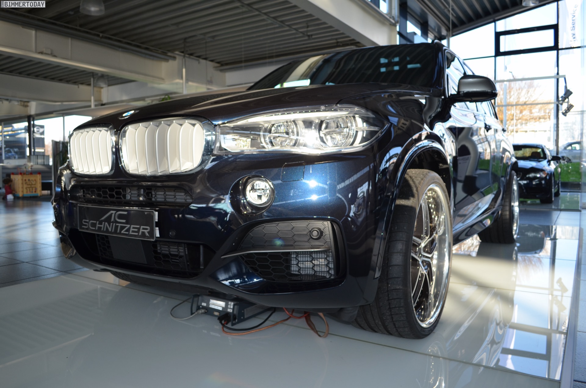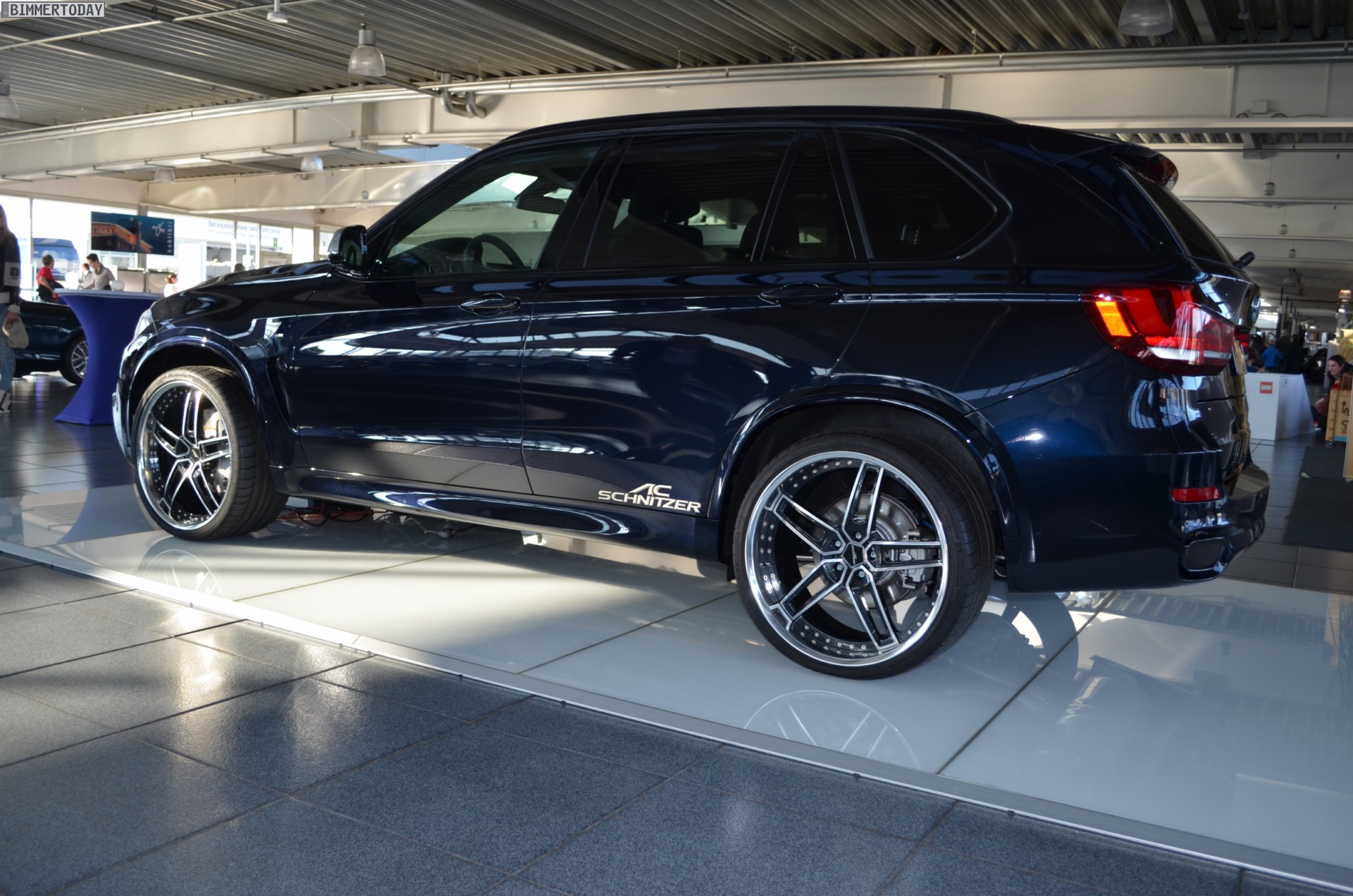 Beim Autohaus Kohl war der neue BMW X5 M50d F15 bereits mit Tuning-Felgen von AC Schnitzer zu sehen, was uns einen ersten Eindruck vom neuen SUV mit wirklich großen Rädern beschert. In Fahrtrichtung rechts trägt der gezeigte X5 die AC Schnitzer Felge Typ V in 22 Zoll, links glänzt Typ VIII Racing in 23 Zoll.