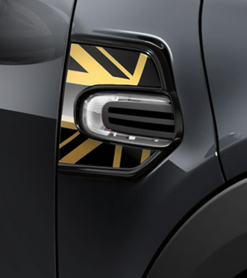 Als Beispiele gibt es schon jetzt Fotos von Side Scuttles und Außenspiegeln in einem gelb-schwarzen Union Jack-Design sowie einen Ausblick auf die Farb-Palette. Alle bisher vorgestellten Varianten können ohne Aufpreis mit Dach in Kontrastfarbe bestellt werden.