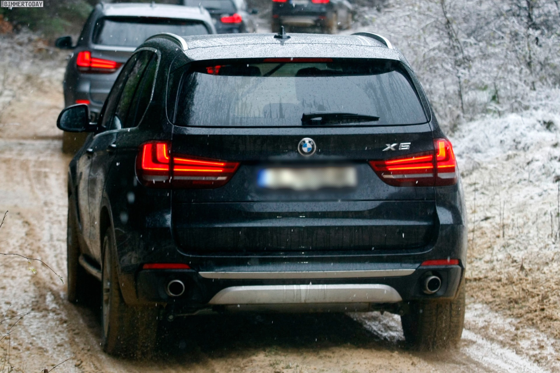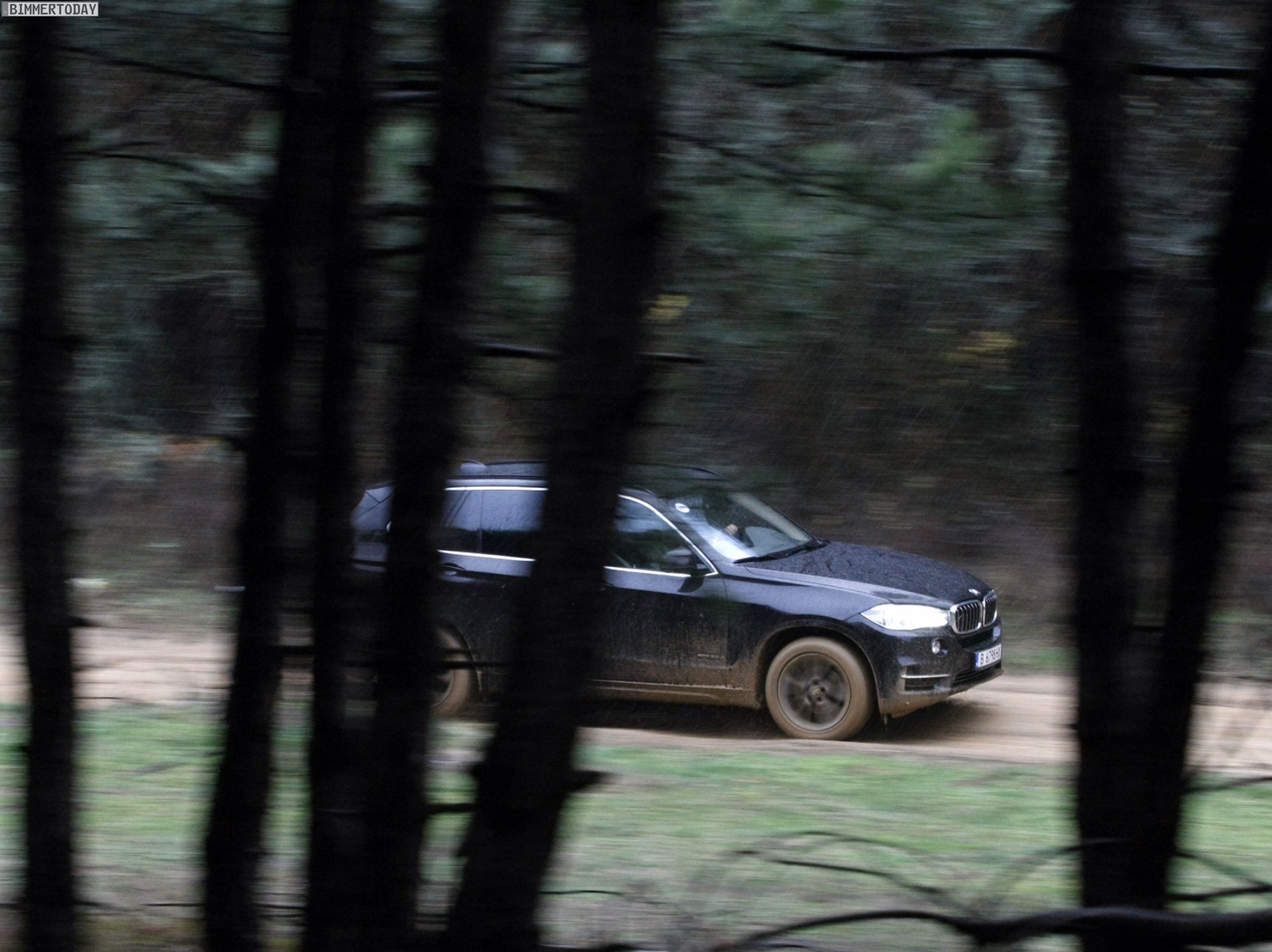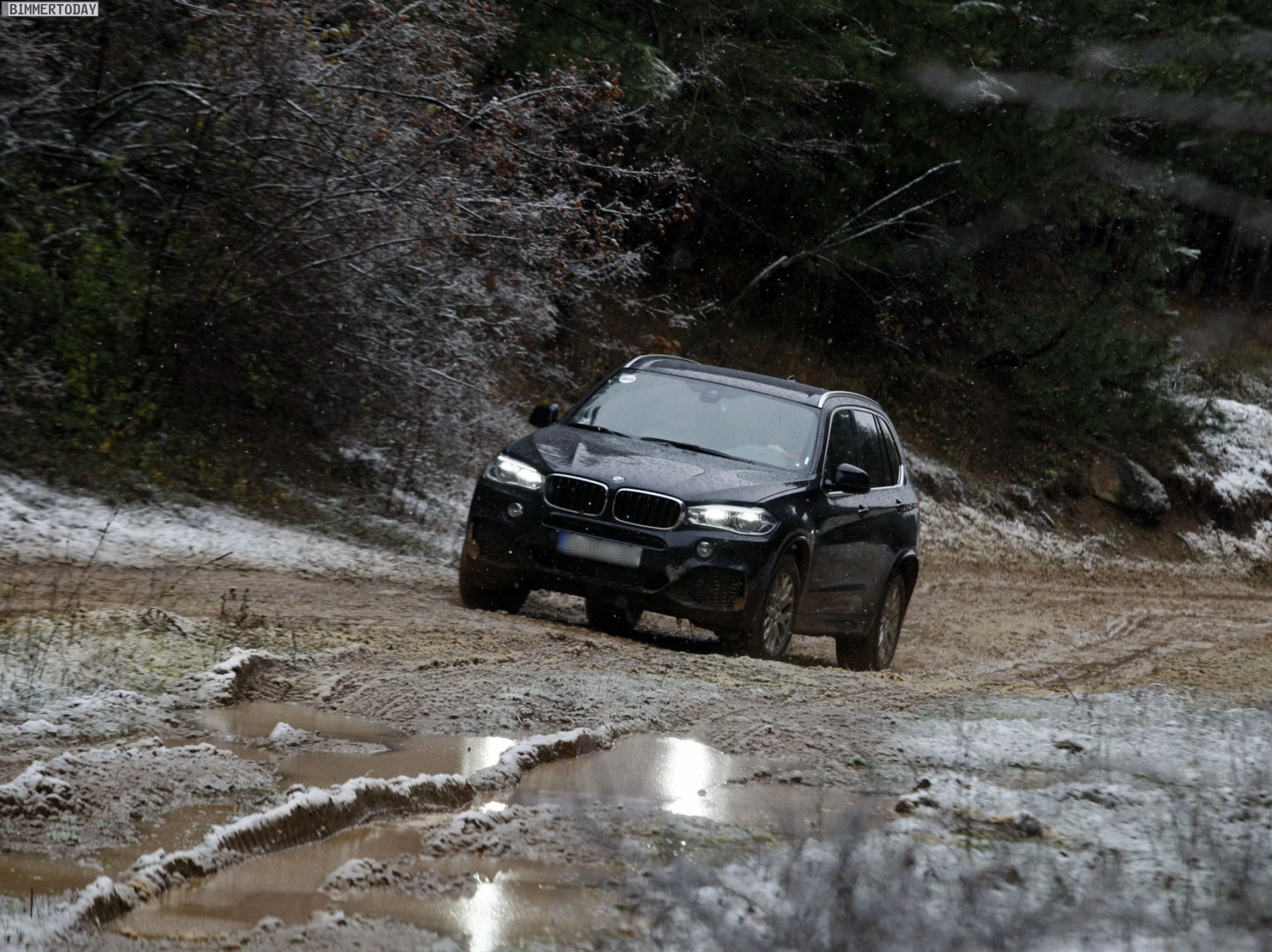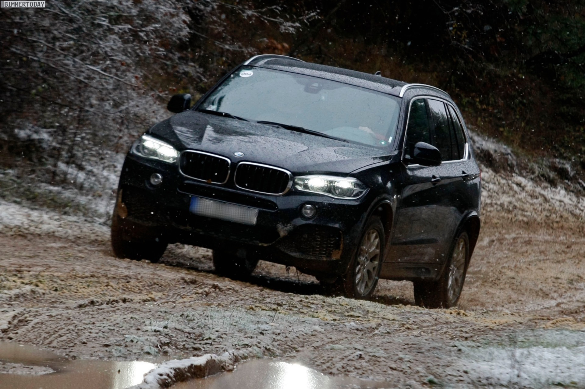 Auf den Bildern, die offenbar von einer Presse-Veranstaltung mit Offroad-Parcours stammen, sehen wir den neuen BMW X5 F15 mit Design Pure Experience, Design Pure Excellence und M Sportpaket im tiefen Schlamm, der allerdings dank Allradantrieb xDrive und der für BMW-Verhältnisse großzügig bemessenen Bodenfreiheit kein Problem darstellt: