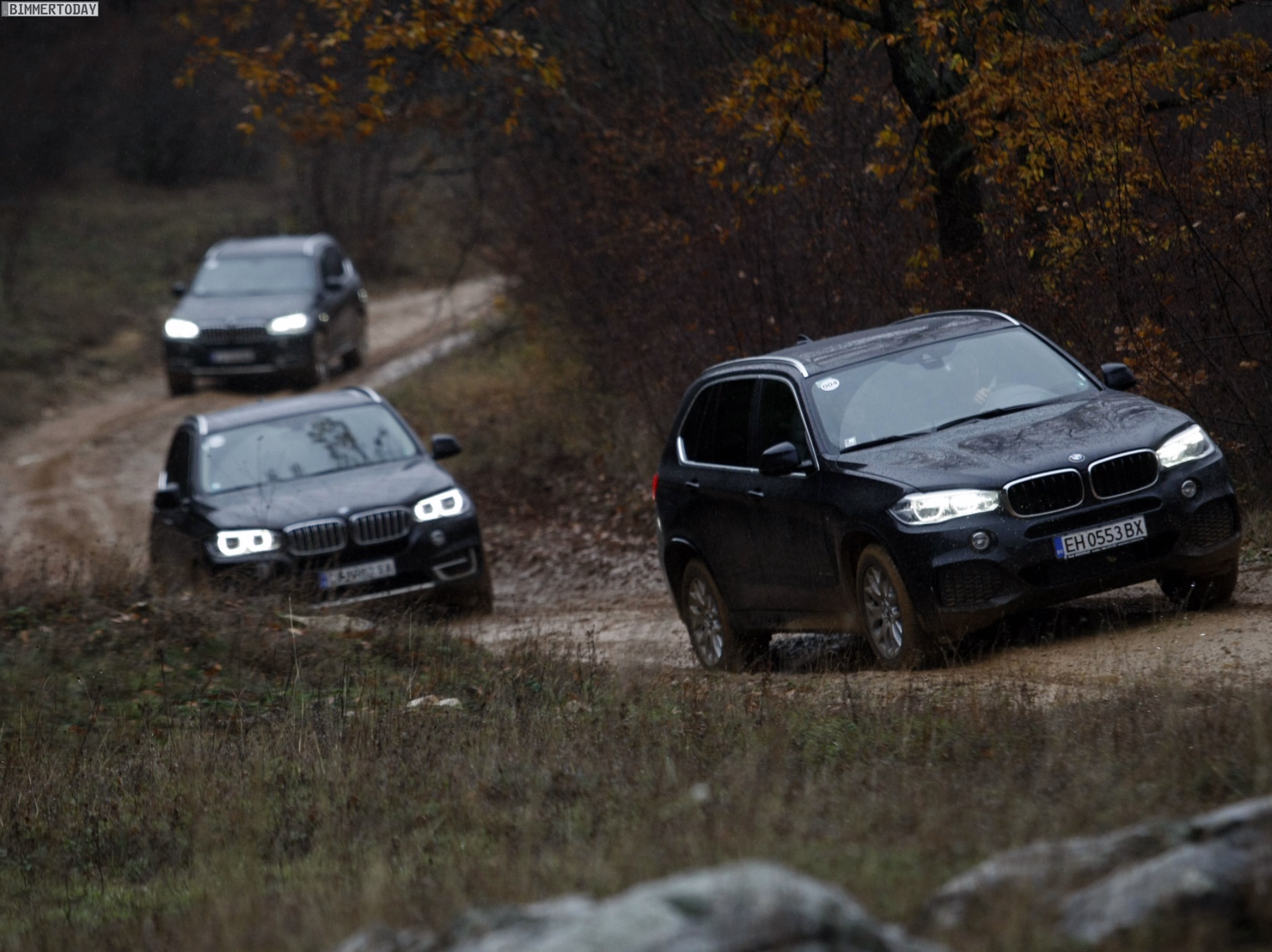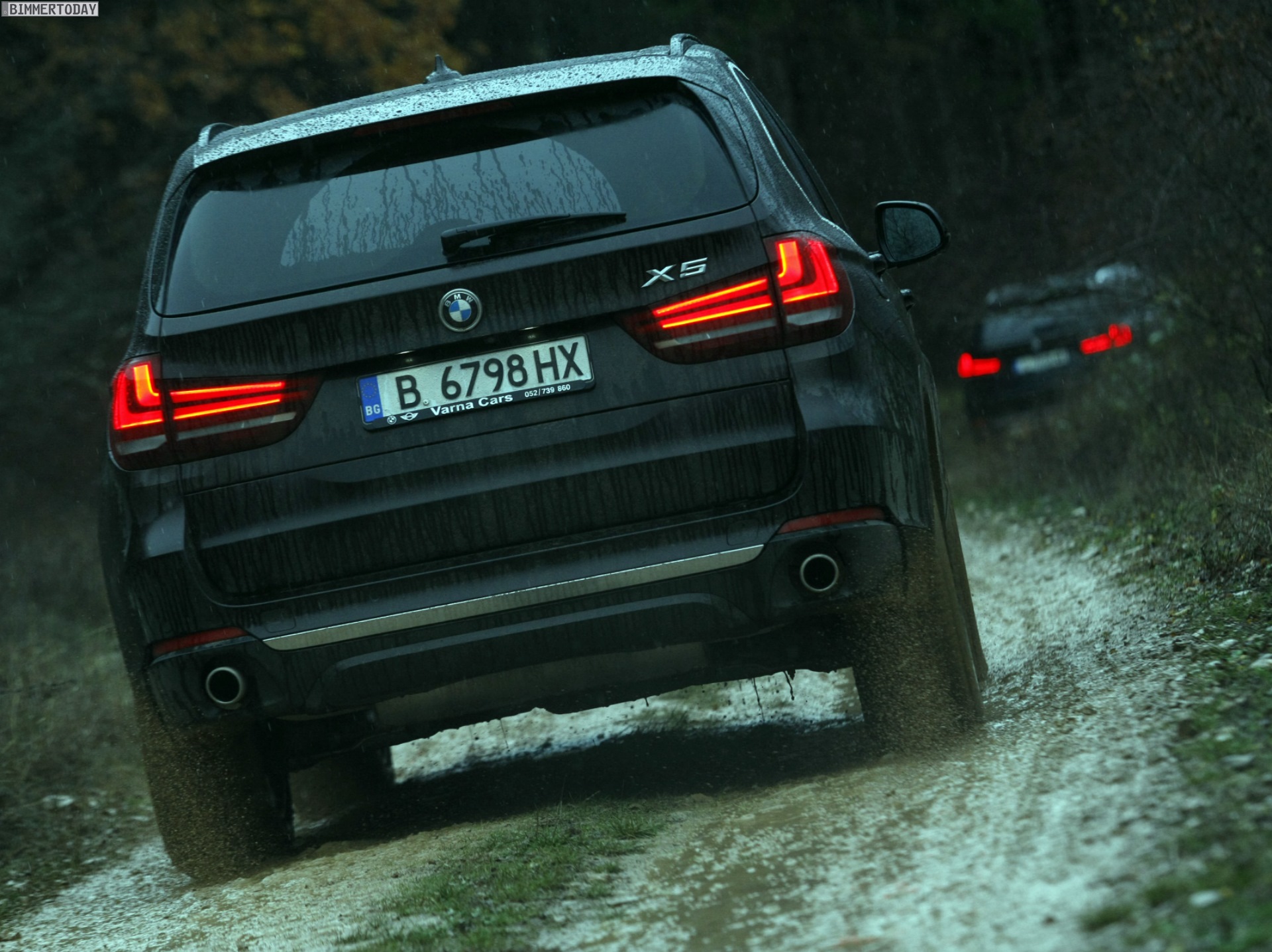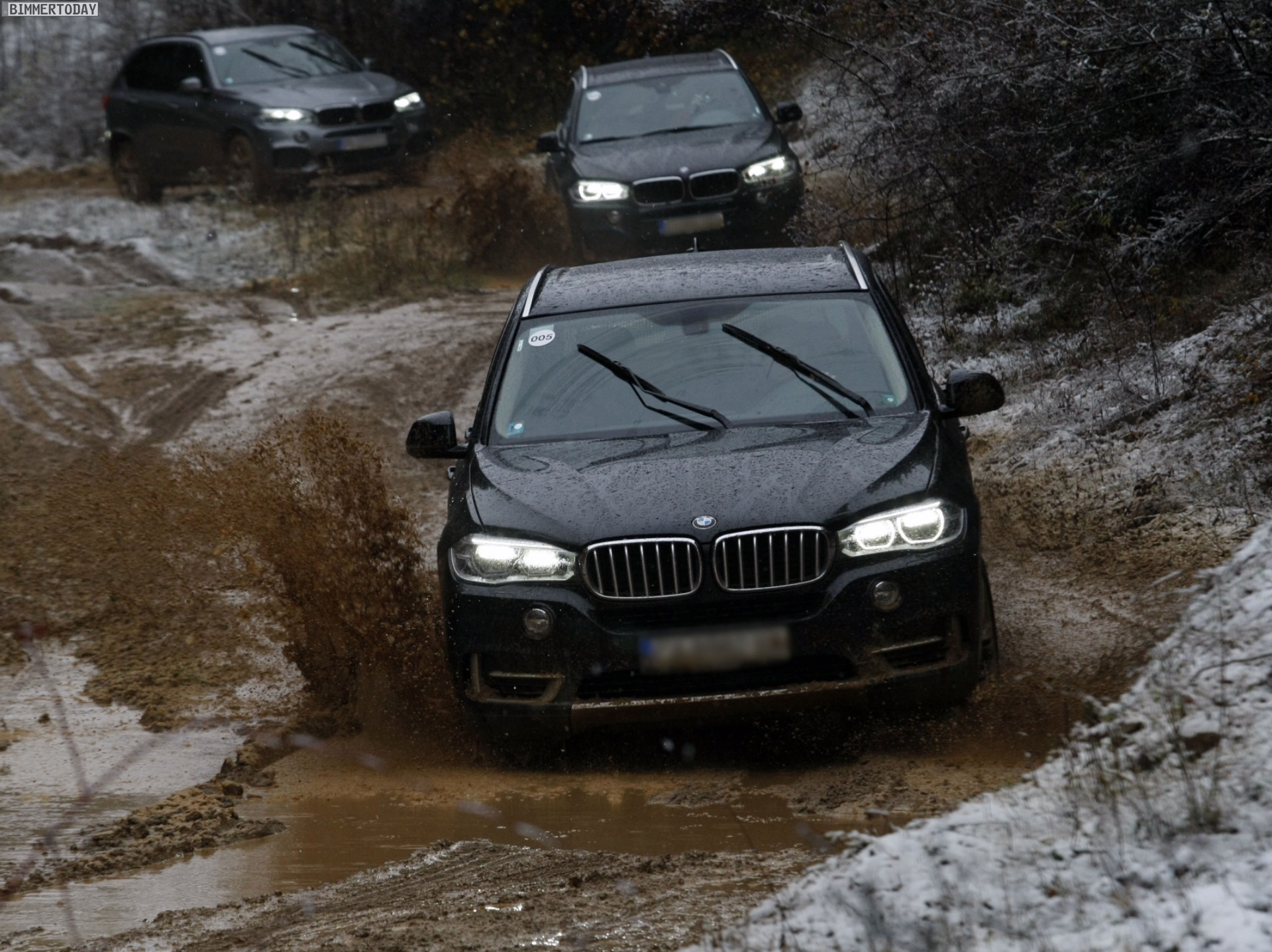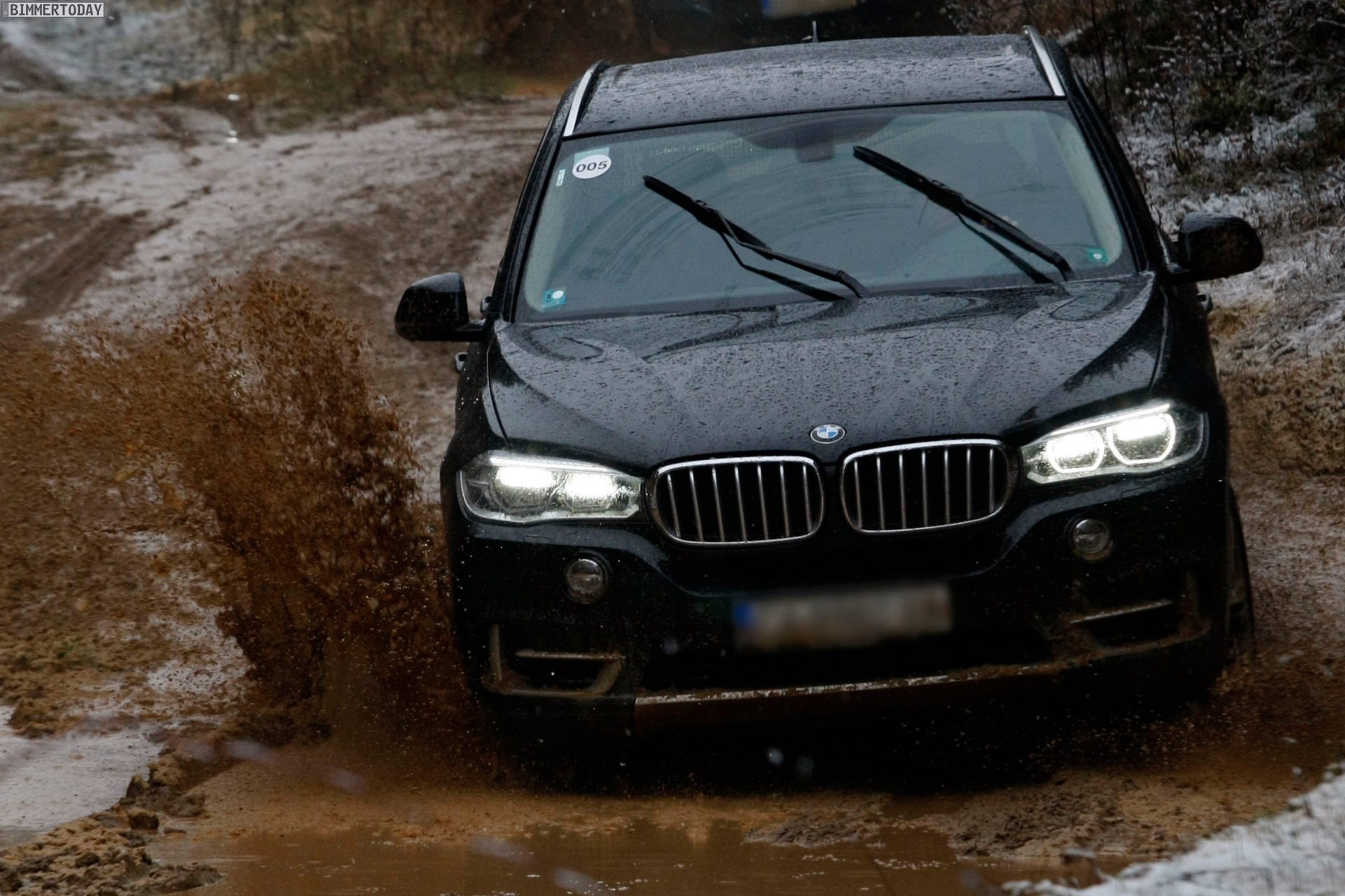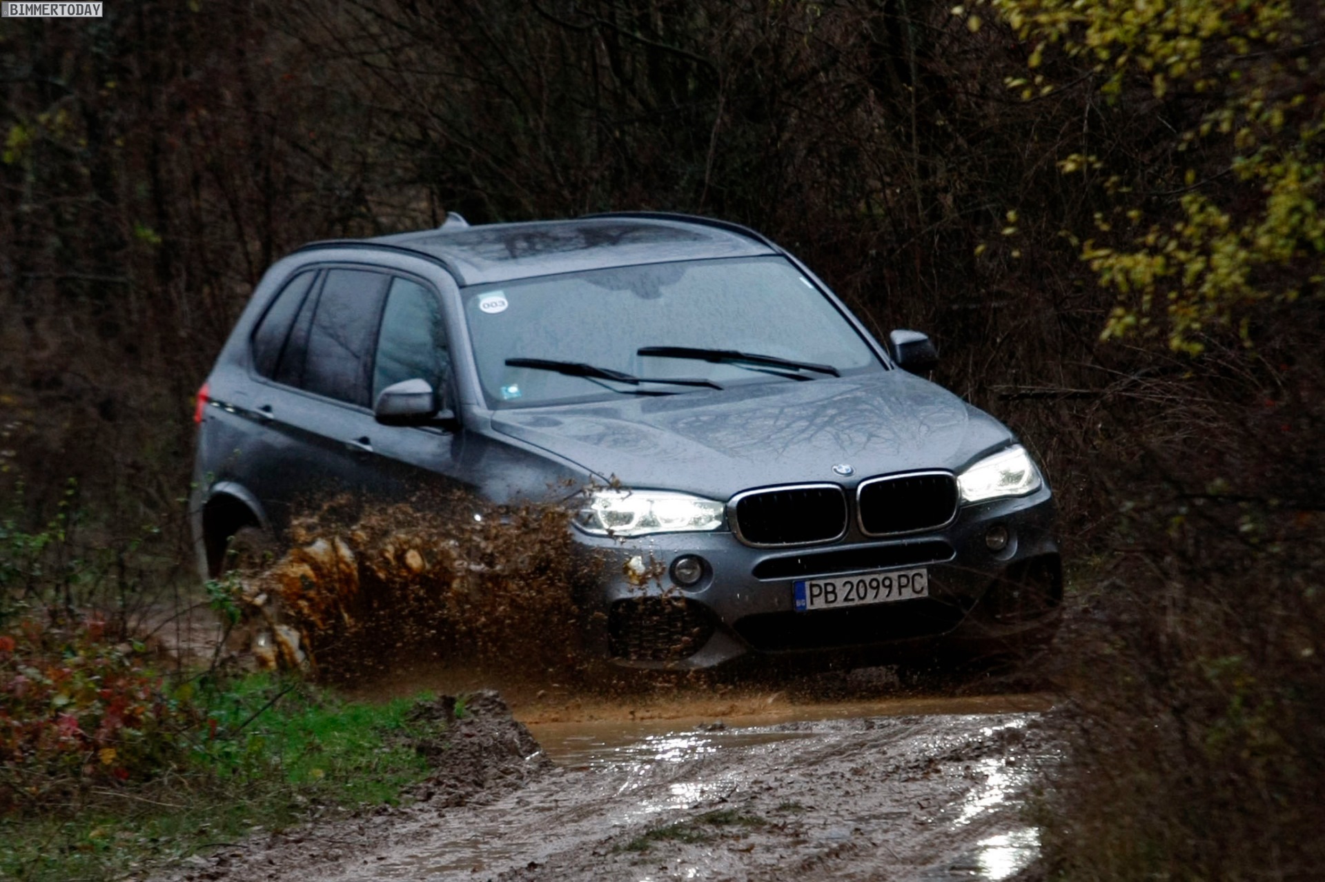 Auf den Bildern, die offenbar von einer Presse-Veranstaltung mit Offroad-Parcours stammen, sehen wir den neuen BMW X5 F15 mit Design Pure Experience, Design Pure Excellence und M Sportpaket im tiefen Schlamm, der allerdings dank Allradantrieb xDrive und der für BMW-Verhältnisse großzügig bemessenen Bodenfreiheit kein Problem darstellt: