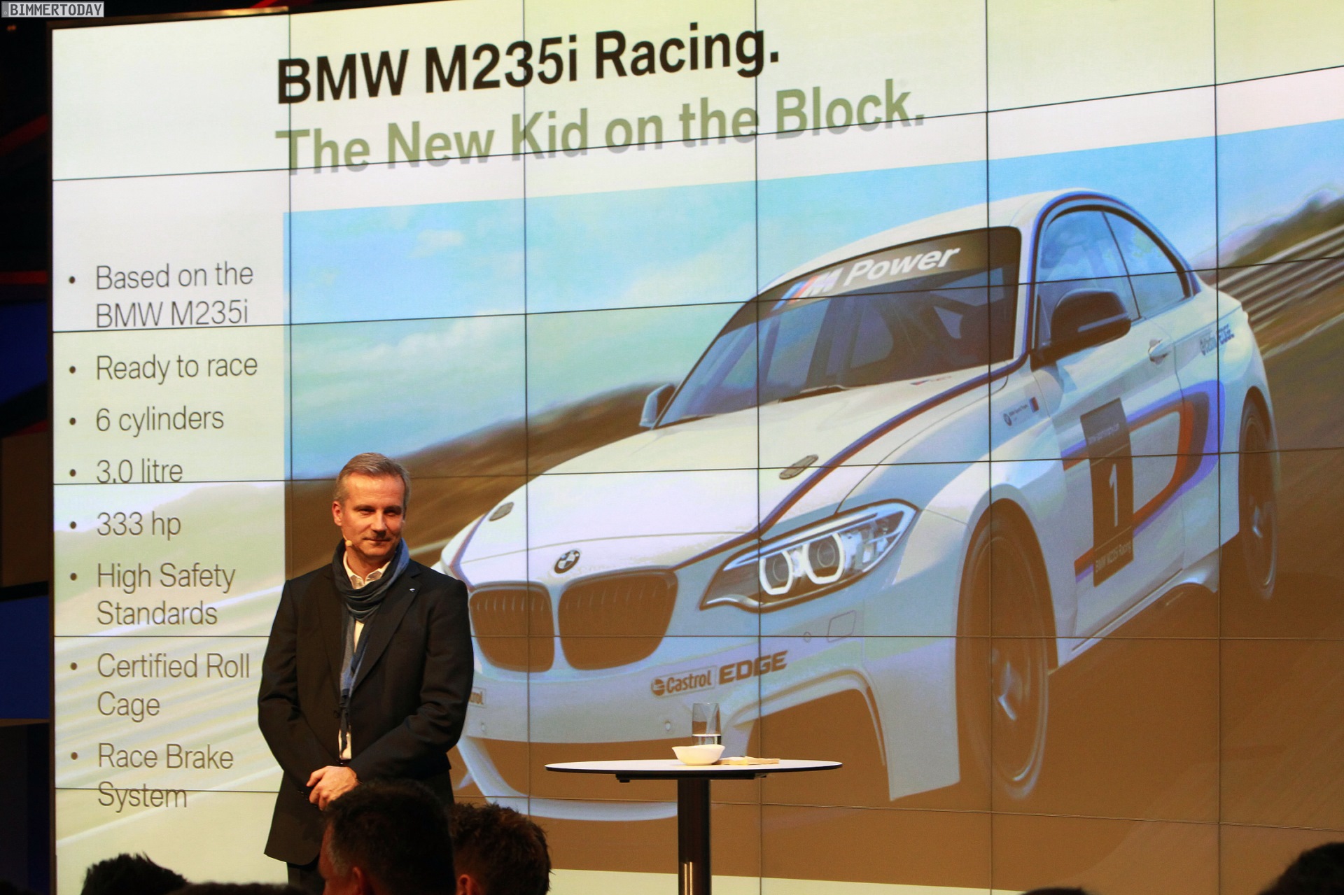 Richtige Fotos gibt es noch immer nicht, aber im Rahmen der BMW Sports Trophy 2013 wurden immerhin einige neue Eindrücke vom BMW M235i Racing für die Saison 2014 in Form  konkreterer Zeichnungen und eines Videos mit leichter Tarnung gezeigt. Erstmals zu sehen ist eine realistische Lackierung in den Farben von BMW Motorsport, auch wenn die meisten Kundenteams ihr Fahrzeug natürlich in einer von Sponsoren geprägten Lackierung einsetzen werden.