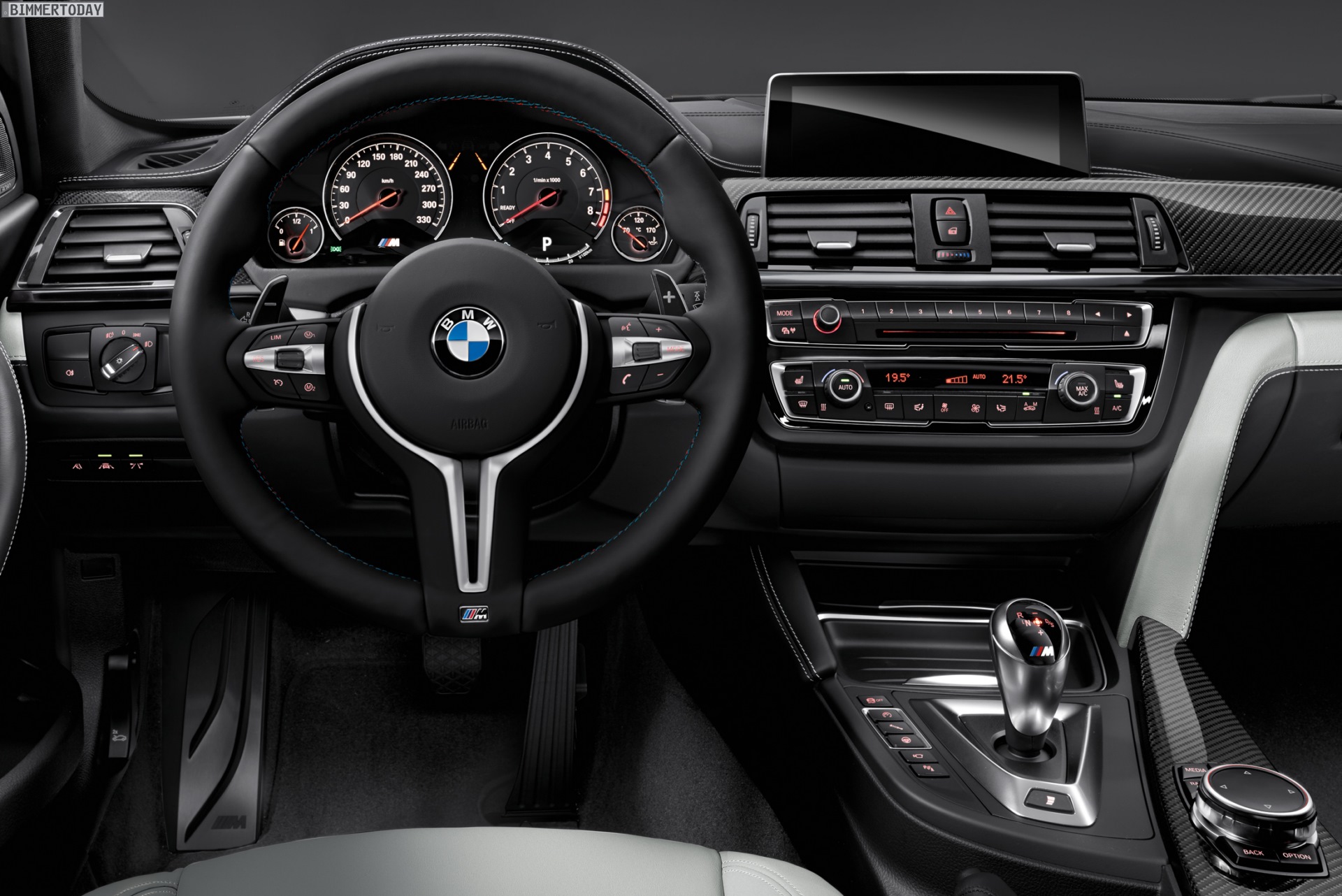 Auch in Sachen Exklusivität müssen Limousinen-Käufer im Fall des BMW M3 F80 praktisch keine Abstriche mehr machen: Wie das M4 Coupé trägt auch die viertürige M3 Limousine ein Carbon-Dach, das den stärksten F30-Ableger auf den ersten Blick aus der Masse hervorhebt und die sportlichen Ambitionen unterstreicht. Neben dem Show-Effekt durch das Carbon-Dach trägt der leichte Werkstoff gemeinsam mit einigen Aluminium-Elementen auch dazu bei, dass der BMW M3 2014 trotz größerer Abmessungen 85 Kilogramm weniger Gewicht auf die Waage bringt als der Vorgänger – laut BMW sind es mit manuellem Getriebe exakt 1.520 Kilogramm.