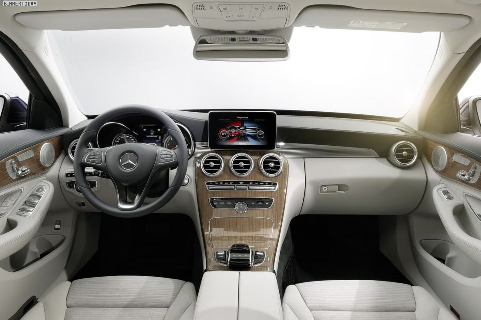 Wie beim Design orientiert sich die C-Klasse W205 auch bei den Assistenzsystemen und Optionen an ihren großen Brüdern. Als erster Mercedes überhaupt kommt die Mittelklasse-Limousine auf Wunsch mit einem Head Up-Display, dazu kommen zahlreiche Sicherheitssysteme und elektronische Assistenten, Voll-LED-Scheinwerfer sowie das erste Luftfahrwerk in der Premium-Mittelklasse.