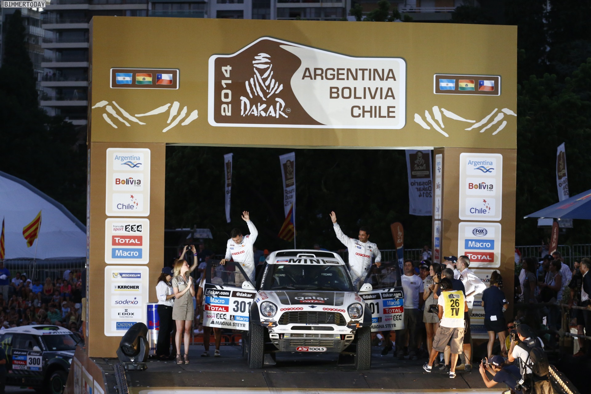 Auch Al-Attiyah konnte in der Tageswertung aber “nur” den dritten Rang erreichen und musste sich neben seinem Teamkollegen Orlando Terranova auch dem überraschenden Tagessieger Carlos Sousa im Buggy vom Typ Haval H8 geschlagen geben. Mit fünf MINIs unter den ersten Sieben hat der überarbeitete Rallye-MINI seine Stärke dennoch schon angedeutet.