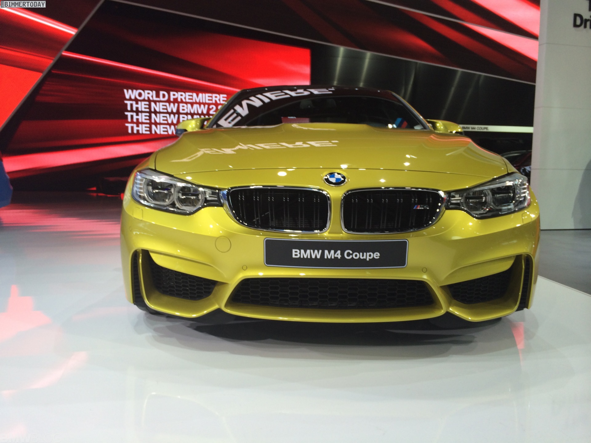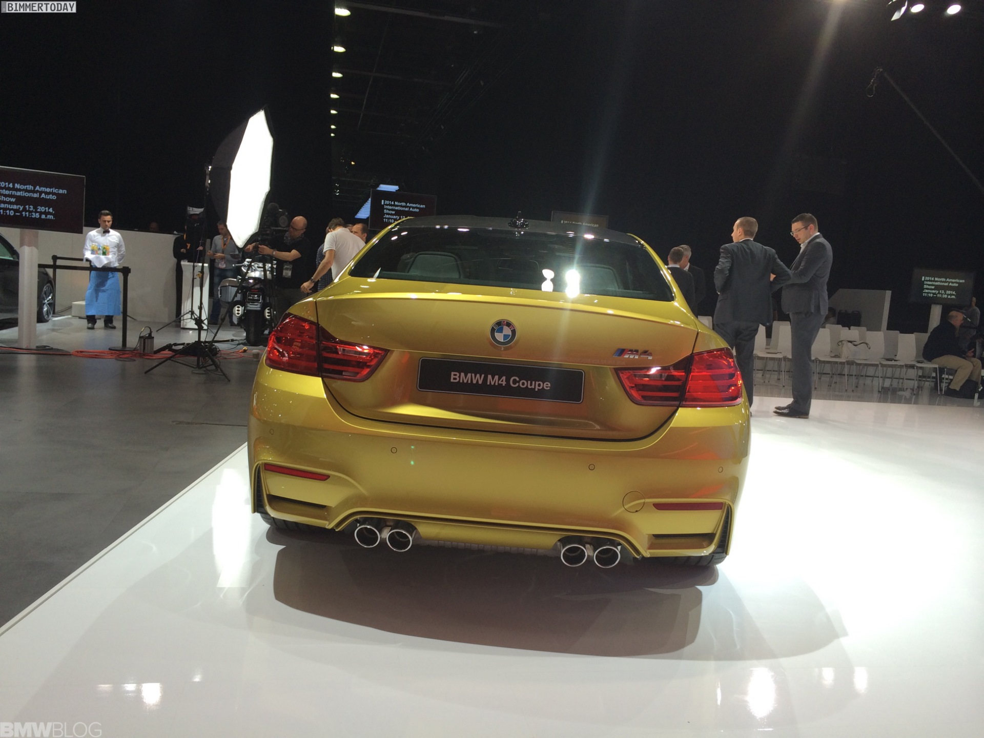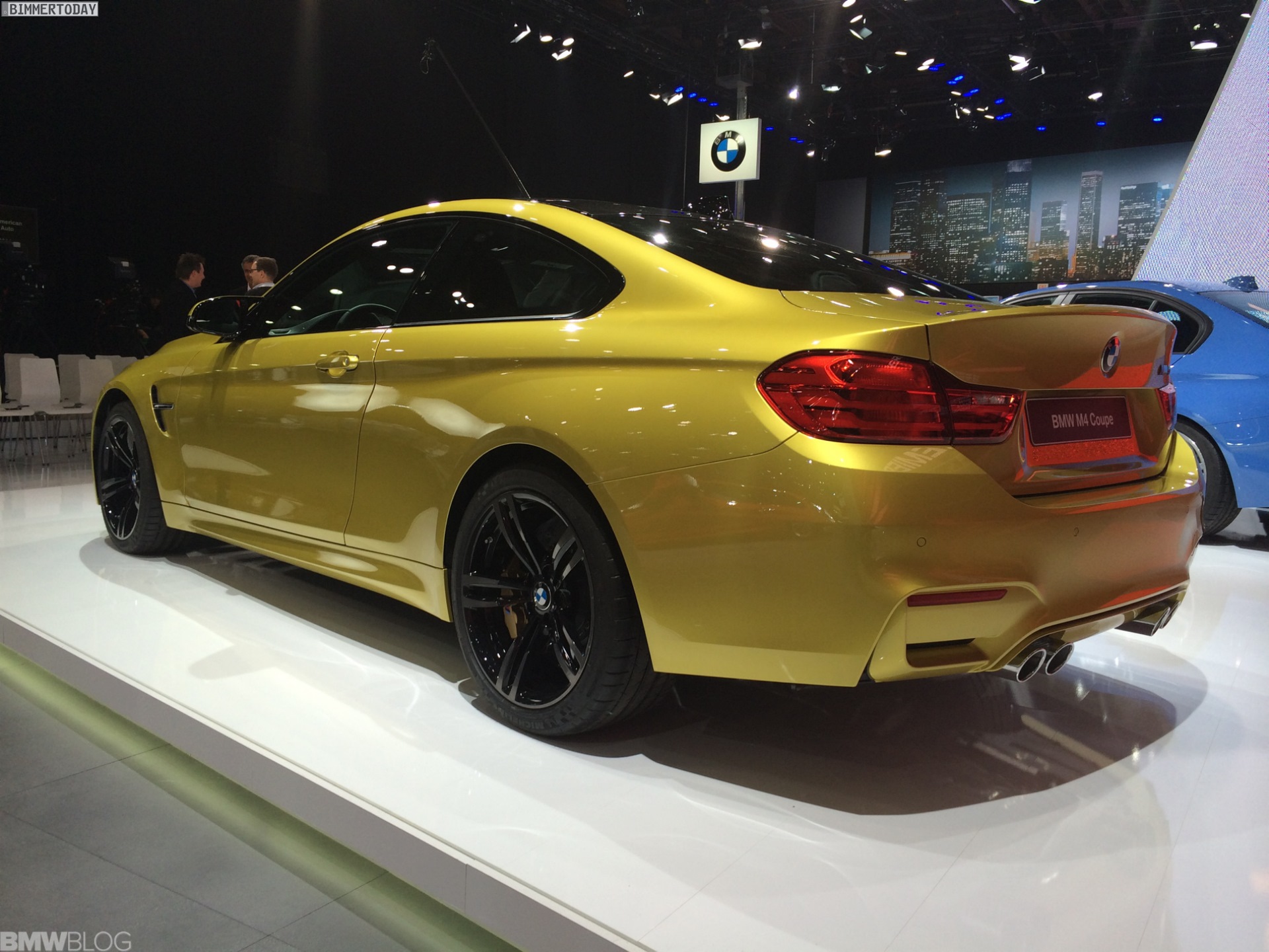 Die ersten Fotos von der Premiere auf der NAIAS 2014 kommen von BMWblog.com und zeigen das neue Sportcoupé mit serienmäßigem Carbon-Dach und der optionalen M Carbon-Keramik-Bremse, deren goldene Bremssättel in Kombination mit dieser Außenfarbe ziemlich unauffällig werden.
