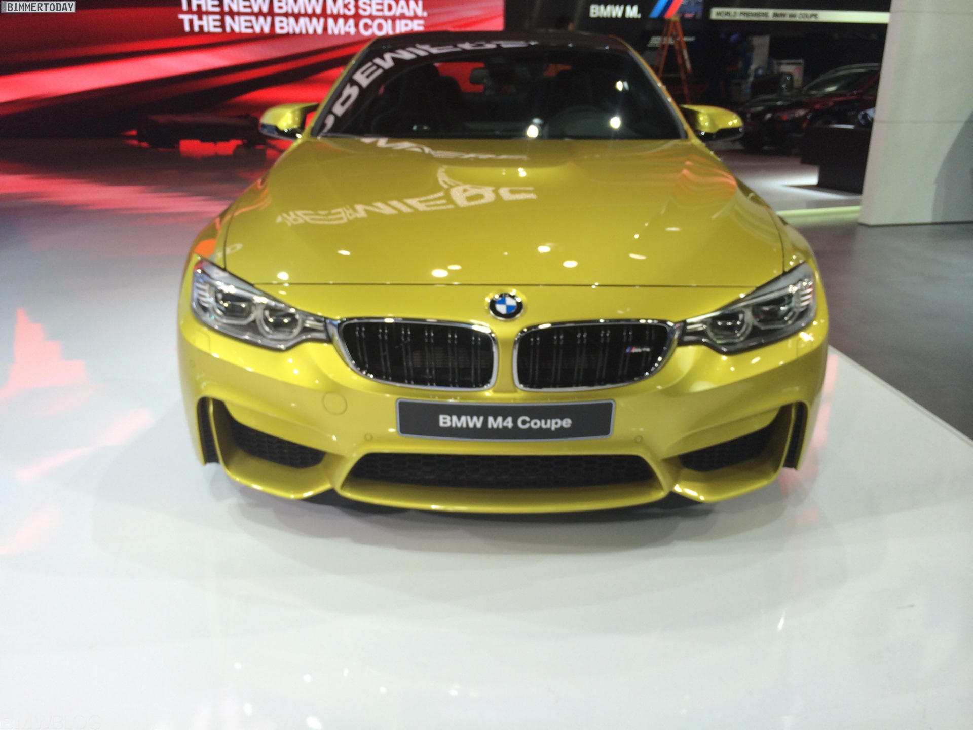 Wer eine Farbe wie Austin Yellow auf den Markt bringt, muss sie auch zeigen: Nicht nur auf den offiziellen Presse-Fotos, auch bei der Weltpremiere auf der Detroit Auto Show 2014 präsentiert BMW das neue M4 Coupé F82 im goldenen Kleid. Die Lackierung erinnert BMW M-Fans stark an Phoenix Gelb vom M3 E46 und könnte bei so manchem treuen M-Kunden zu einem Déjà-vu in der Garage führen.