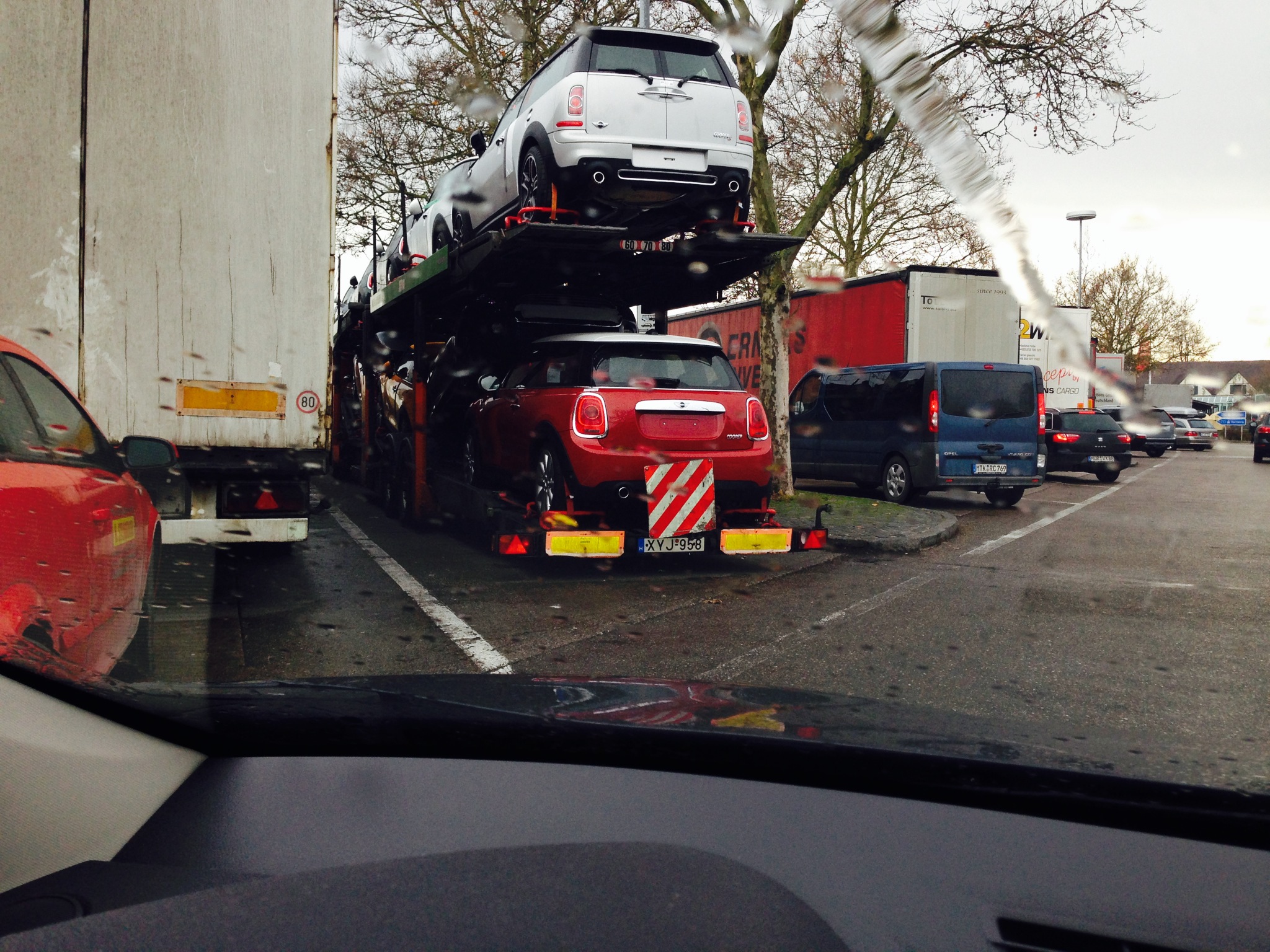 Auch ein paar Wochen nach der Weltpremiere des neuen MINI F56 auf der L.A. Auto Show ist die vierte Generation des britischen Kult-Kleinwagens in Deutschland ein äußerst seltener Anblick – kein Wunder, der Marktstart findet schließlich erst im März statt. BigBlogg-Leserin Steffi Ellrichmann hat nun allerdings einen ganzen Auto-Transporter mit brisanter Ladung auf einem Autobahn-Parkplatz erwischt und beschert uns so einige weitere Live-Eindrücke vom F56.