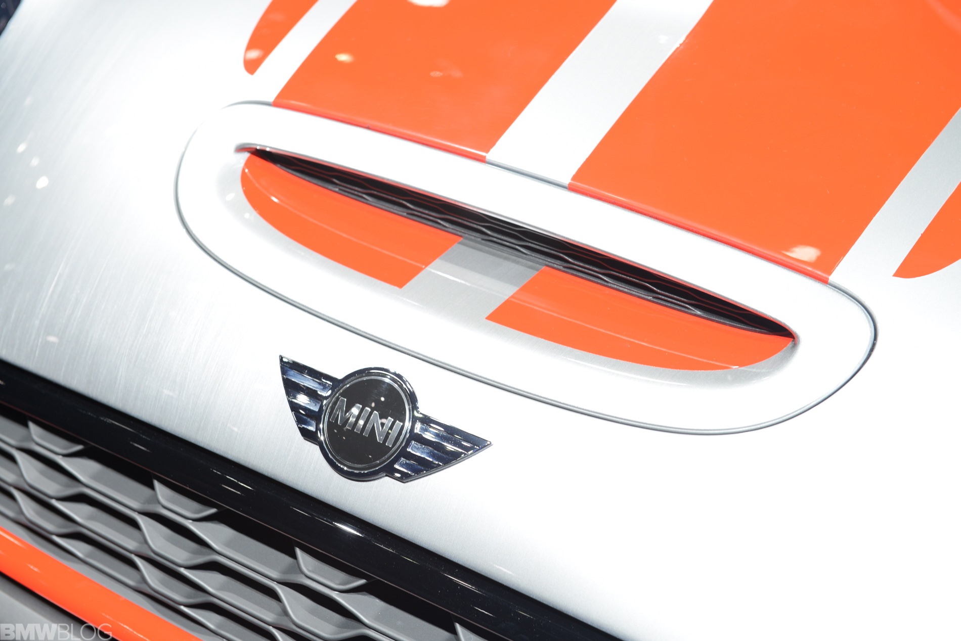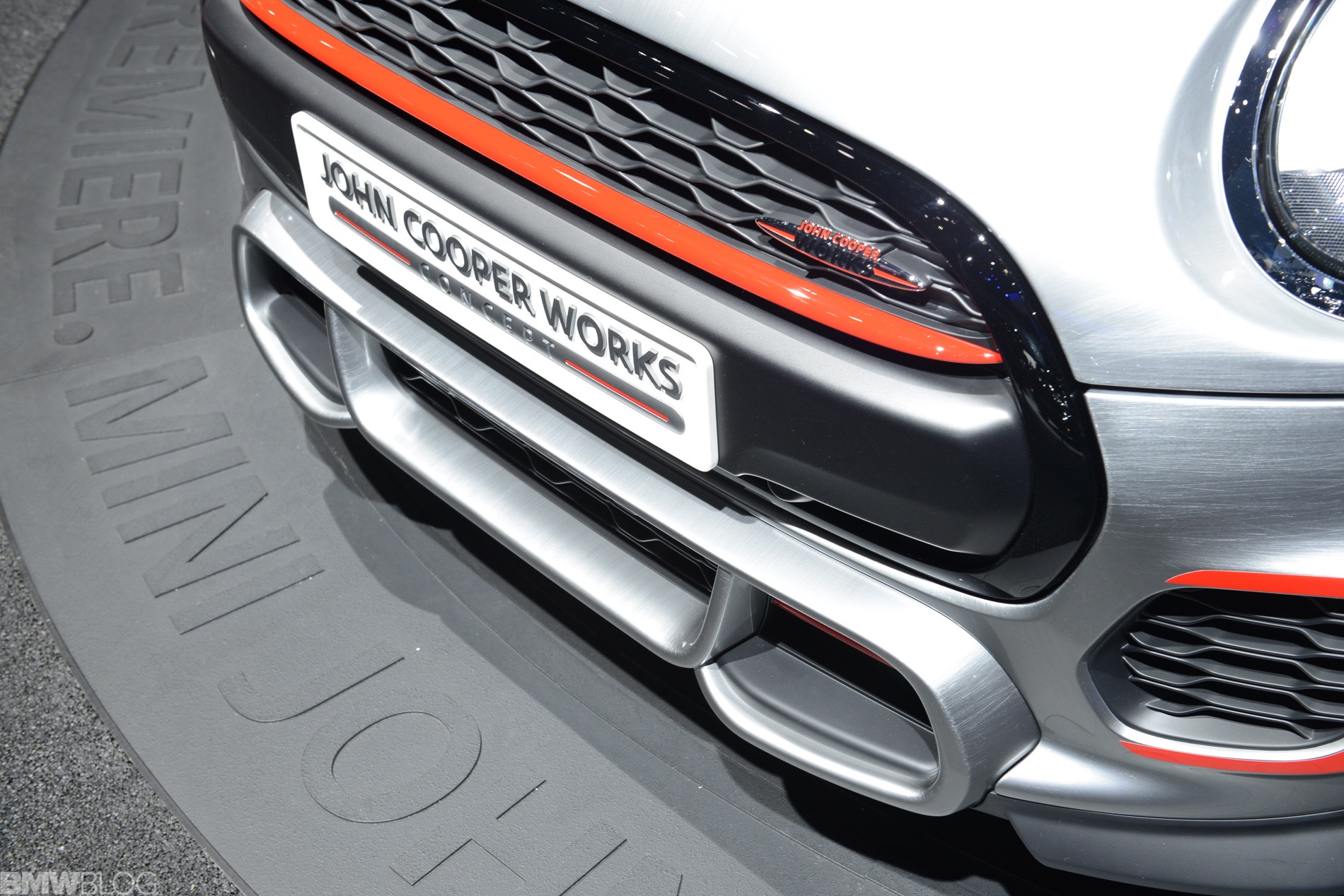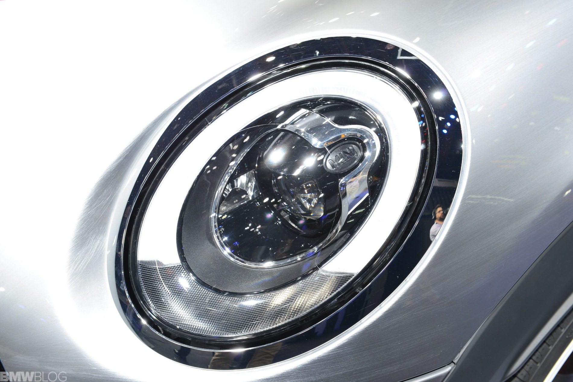 Eigentliches Highlight des Concept Cars für die NAIAS 2014 ist aber die Lackierung in Bright Highways Grey. Eine handgeschliffene Oberfläche mit starker Strukturierung wird von einer Klarlack-Deckschicht überzogen und erzeugt aus der Nähe betrachtet den Eindruck einer geschliffenen Aluminium-Oberfläche. Außerdem trägt die Studie die für alle F56 optional erhältlichen Voll-LED-Scheinwerfer.