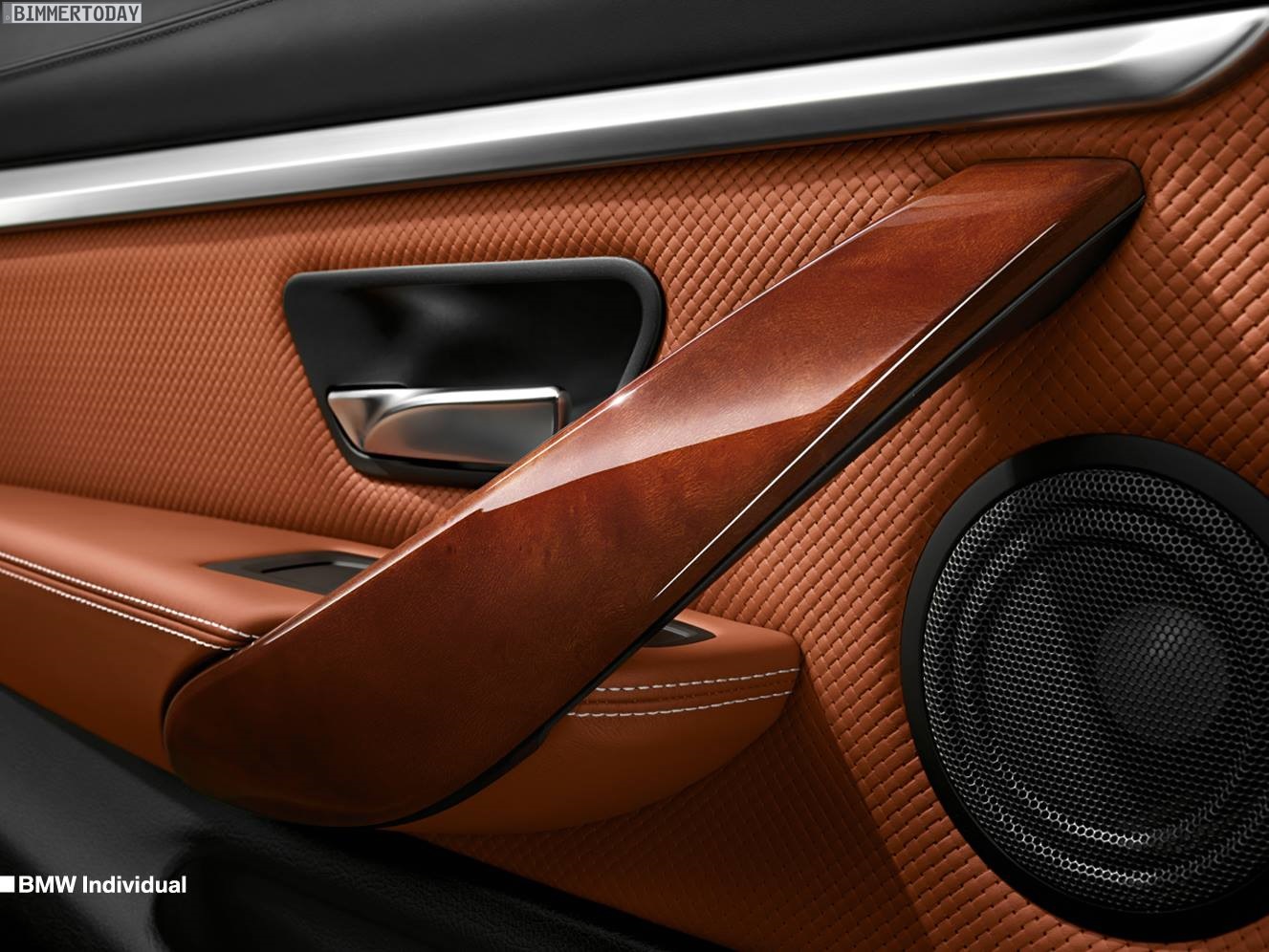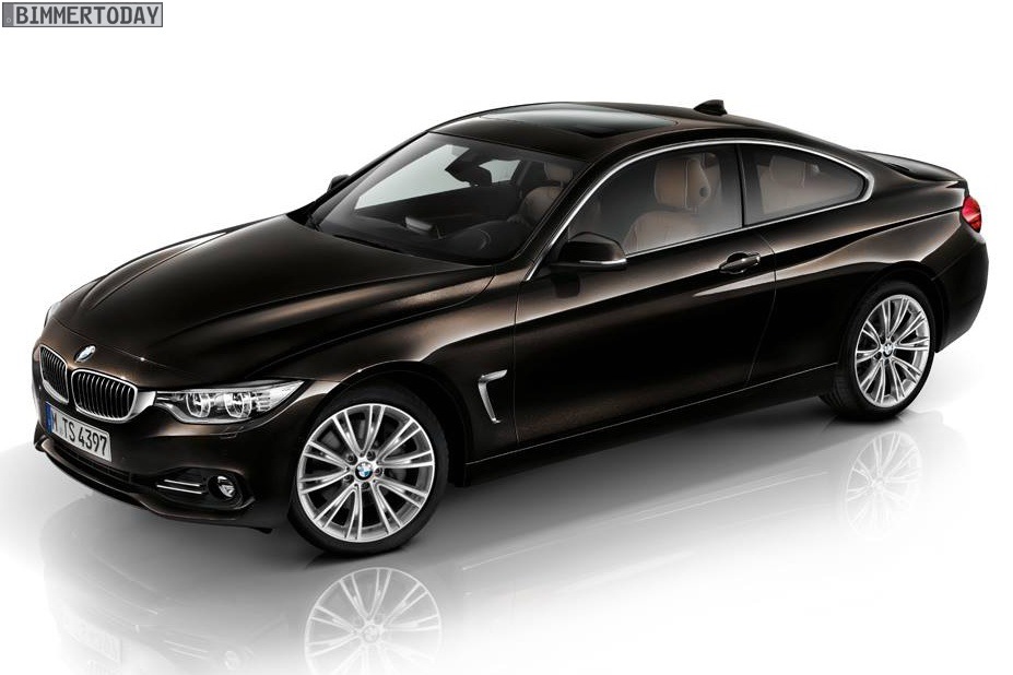 Das gezeigte 4er Coupé trägt die Farbe Citrinschwarz Metallic und ebenfalls die 19 Zoll-Felge 626 I. Im Innenraum des Coupés erinnert die Merino Leder-Ausstattung in Gold-Braun in Kombination mit den Edelholz-Elementen stark an das Interieur des BMW 4er Concept.