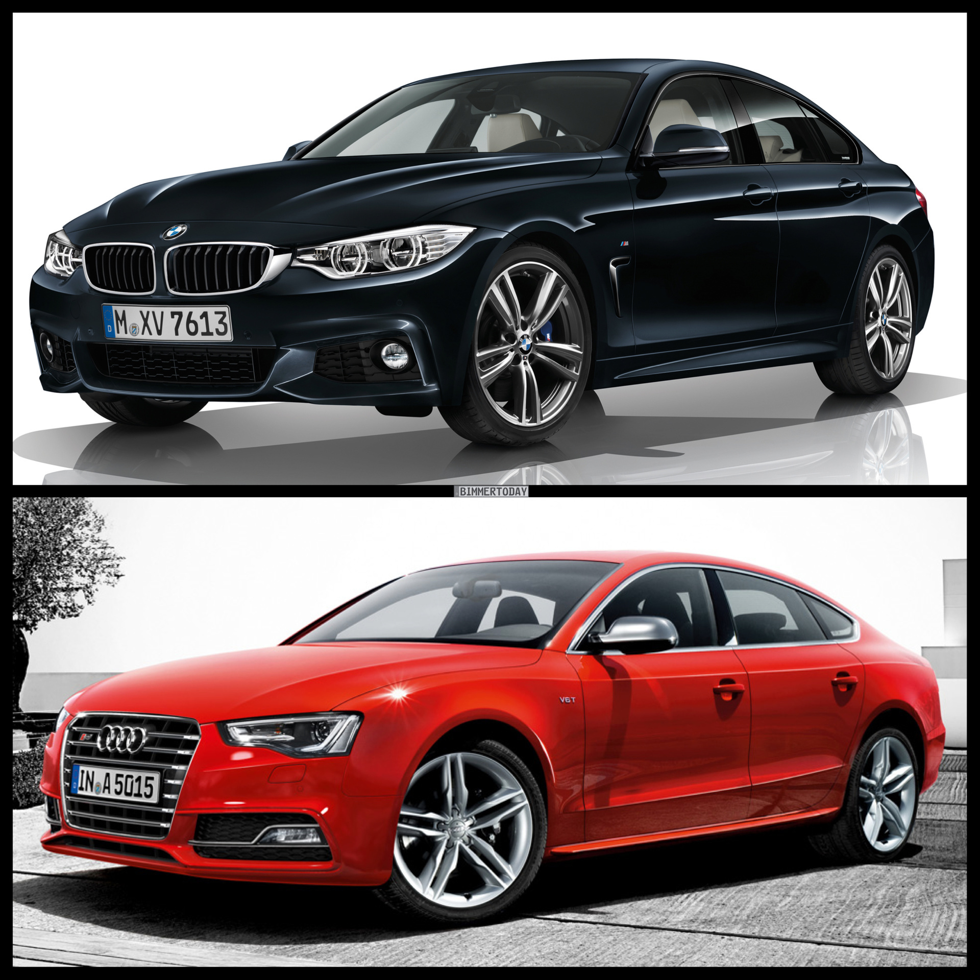 Bis zur möglichen Vorstellung eines M Performance Modells hat BMW keinen wirklich passenden Gegner für den Audi S5 Sportback im Programm, aber für den ersten Bild-Vergleich mit dem viertürigen Audi A5 soll uns das BMW 435i Gran Coupé mit M Sportpaket genügen.