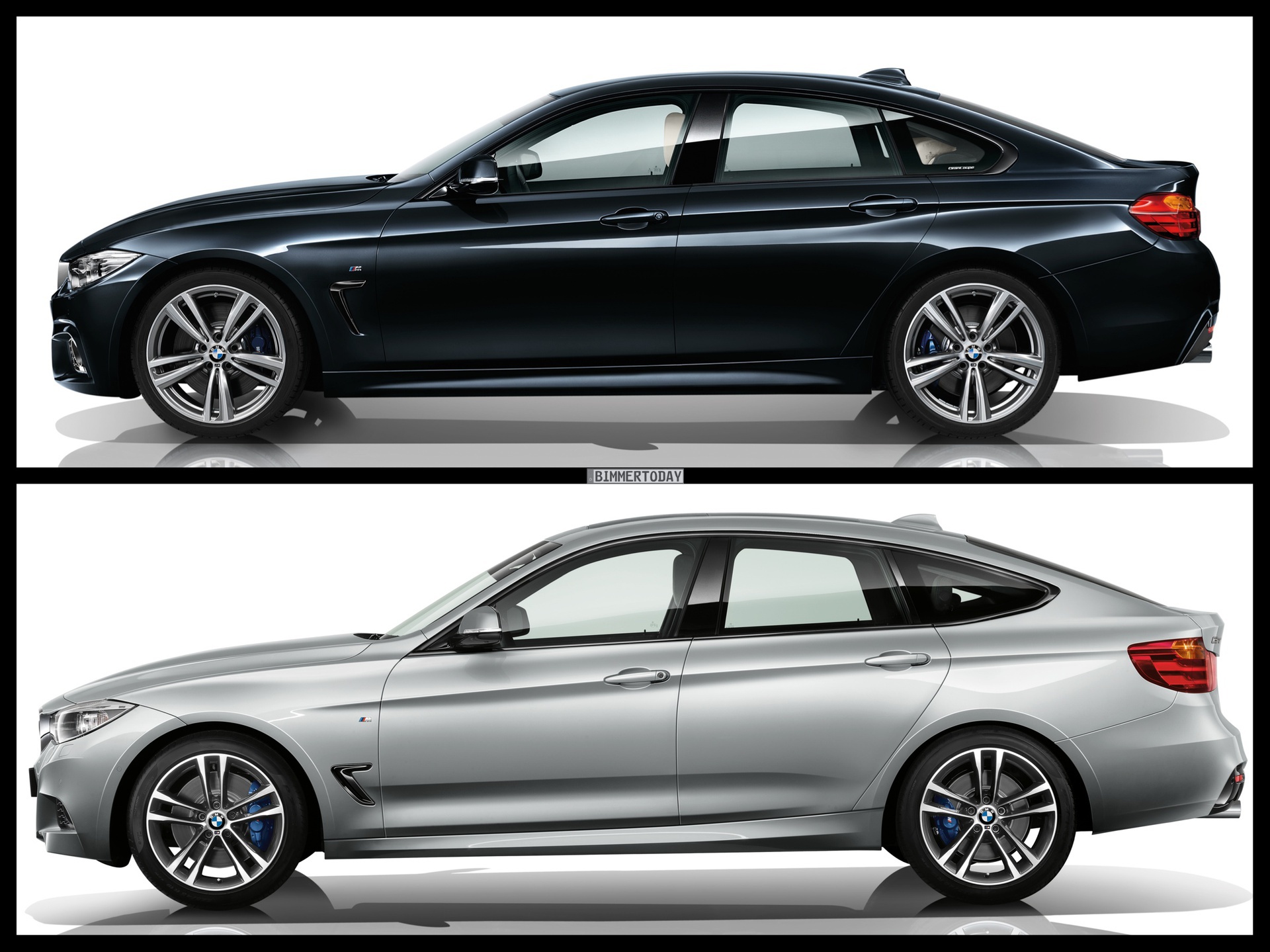 Beide basieren auf dem BMW 3er F30, beide verfügen über vier rahmenlose Türen und eine bis zum Dach reichende Heckklappe. Dennoch: Während der BMW 3er Gran Turismo den geräumigen Reise-Gleiter darstellen soll, steht das BMW 4er Gran Coupé für eine praktischere Variante des sportlichen BMW 4er Coupé und nimmt formal eine andere Zielgruppe ins Visier.