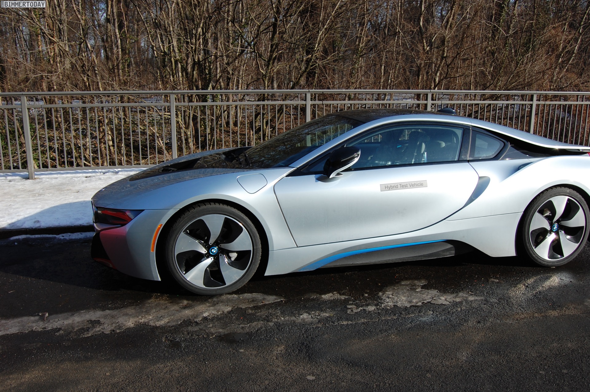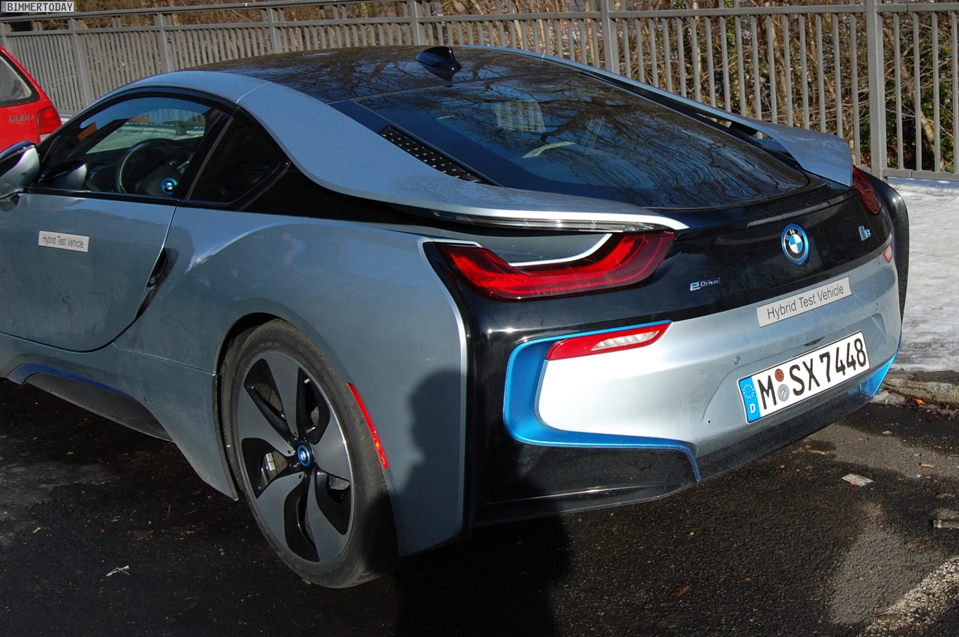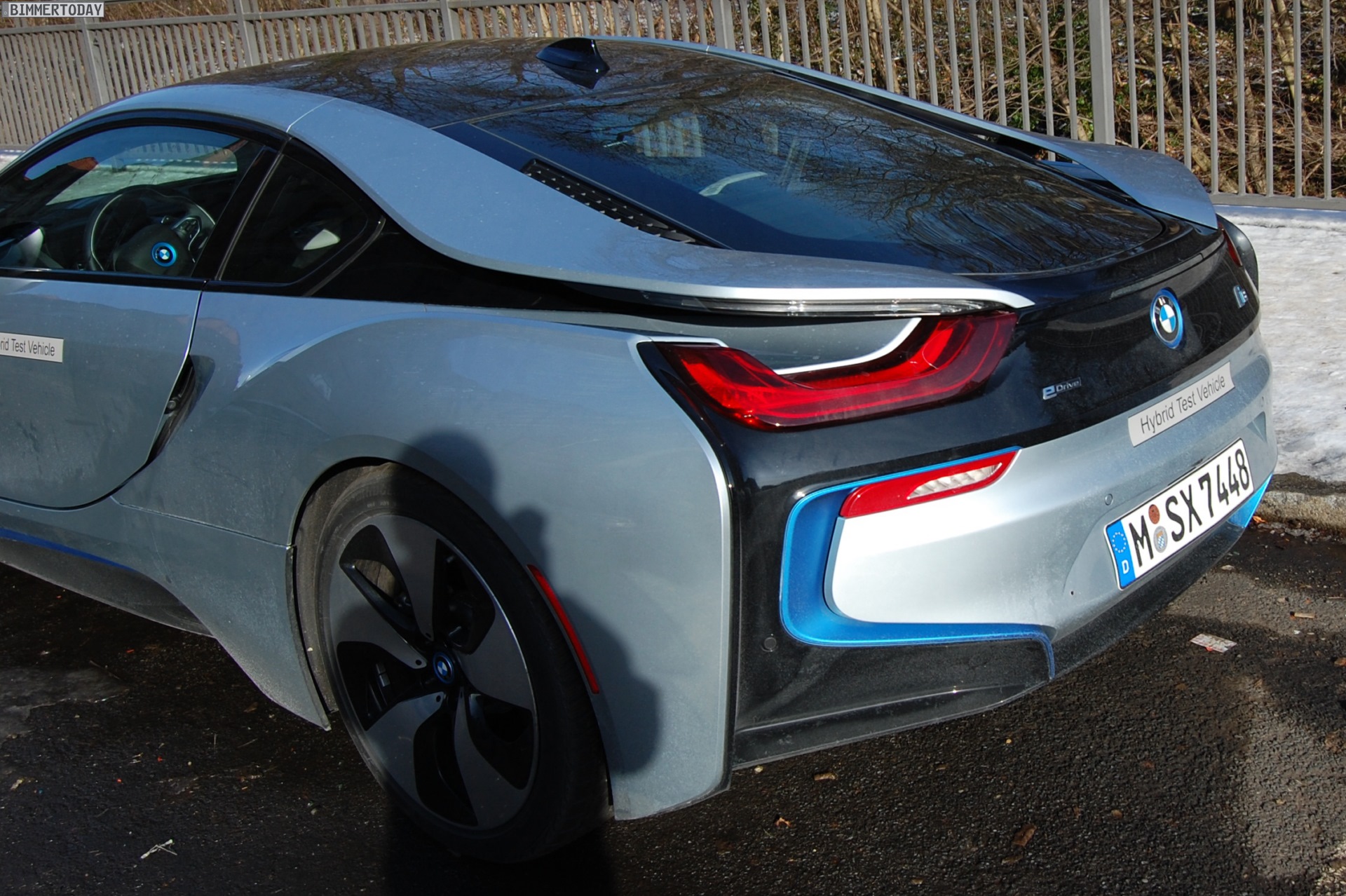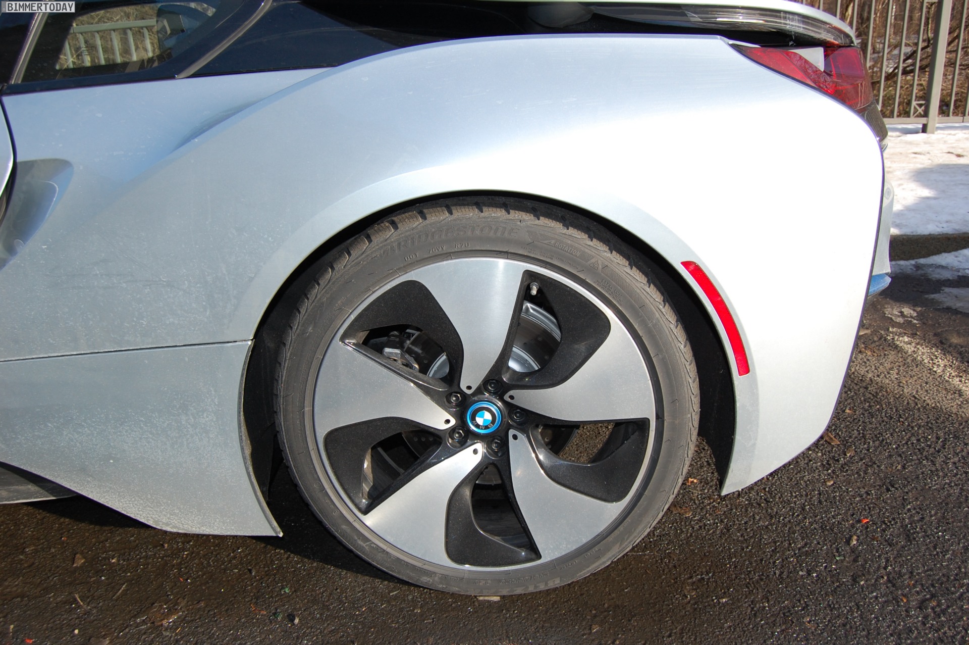 Auch der nun erwischte Prototyp trägt die zweifarbig gestalteten und 20 Zoll großen Leichtmetallräder Turbinenstyling 444 – eine von zunächst drei ab Werk erhätlichen Felgen für den BMW i8. Ähnlich überschaubar fällt zumindest zu Beginn auch die Farb-Palette aus: Neben Ionic Silver und Crystal White (Kristallweiß) stehen nur noch Protonic Blue und Sophistograu zur Wahl. Immerhin lassen sich mit den Akzentleisten in BMW i Blau oder Frozen Grey noch individuelle Akzente setzen.