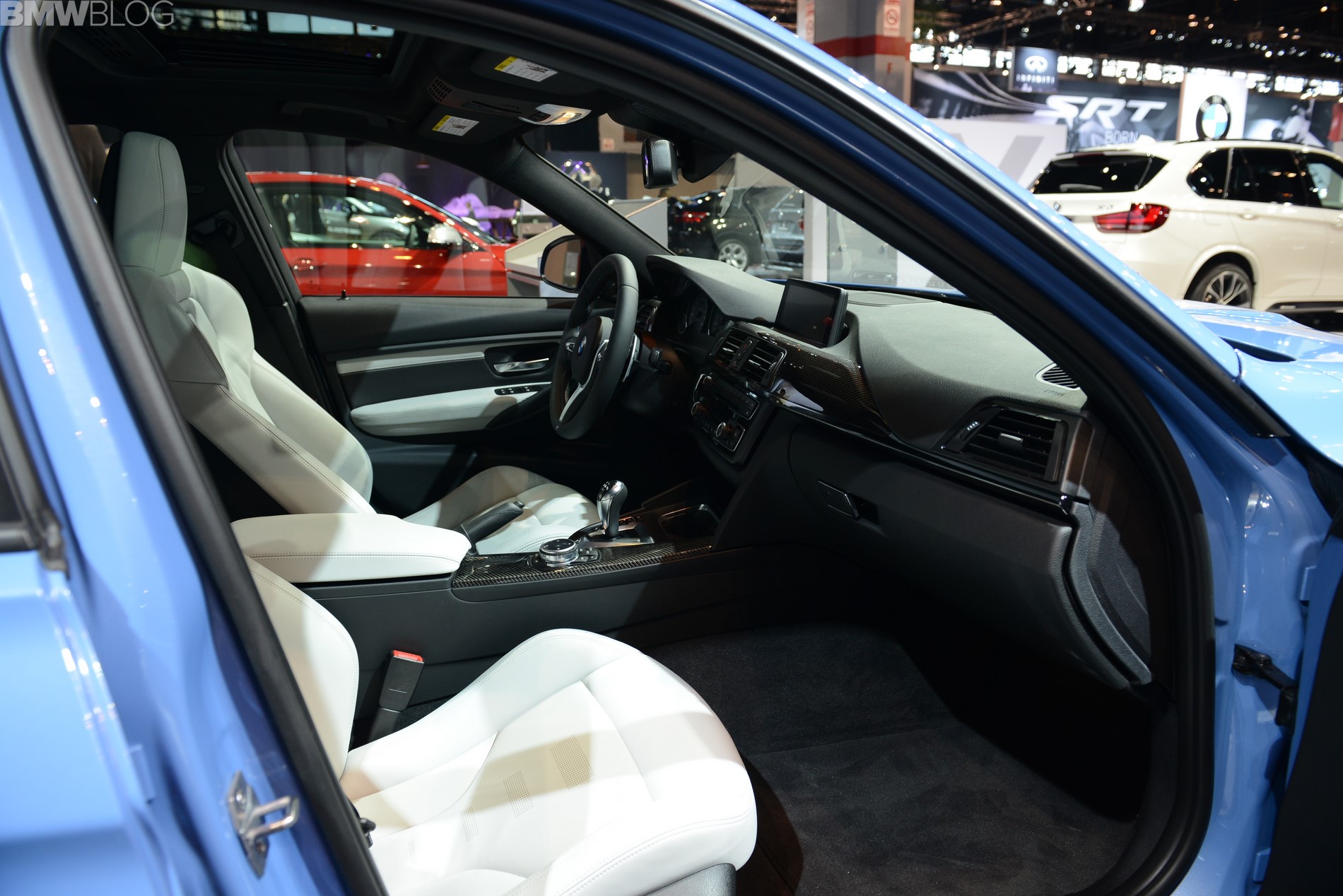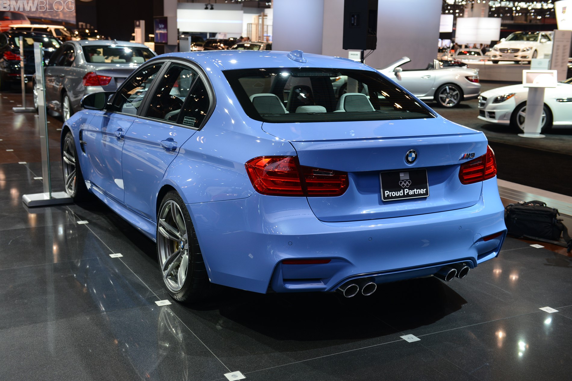 Auch ein paar Wochen nach der Weltpremiere in Detroit gehört der brandneue BMW M3 F80 zu den unbestrittenen Highlights am Stand von BMW auf der Chicago Auto Show 2014. Das gilt insbesondere dann, wenn die weltweit einzige Mittelklasse-Limousine mit Carbon-Dach in der neuen Farbe Yas Marina Blau lackiert ist – eine Farbwahl, die mit Sicherheit nicht nur auf Automessen für neugierige Blicke sorgt.