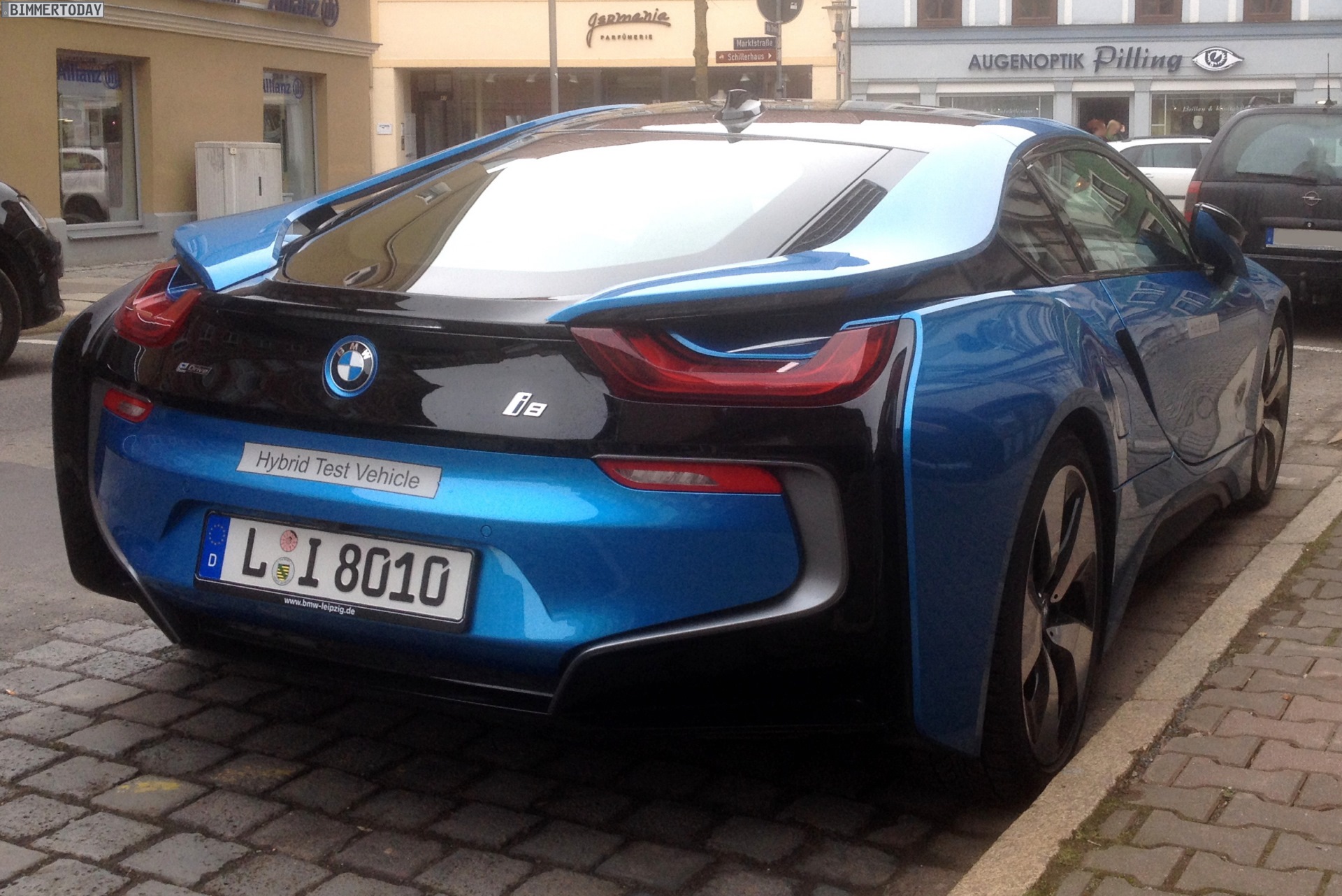 Schon bei seinem ersten öffentlichen Auftritt glänzte der BMW i8 in Protonic Blue, doch seit dem Debüt auf der IAA war das schöne Blau kaum noch zu sehen – die allermeisten Erlkönige tragen die weniger auffälligen Lackierungen in Crystal White oder Ionic Silver. Unser Leser Jürgen hat nun in Thüringen erneut einen blauen BMW i8 erwischt und dabei gleich eine ganze Reihe von Fotos für uns gemacht.