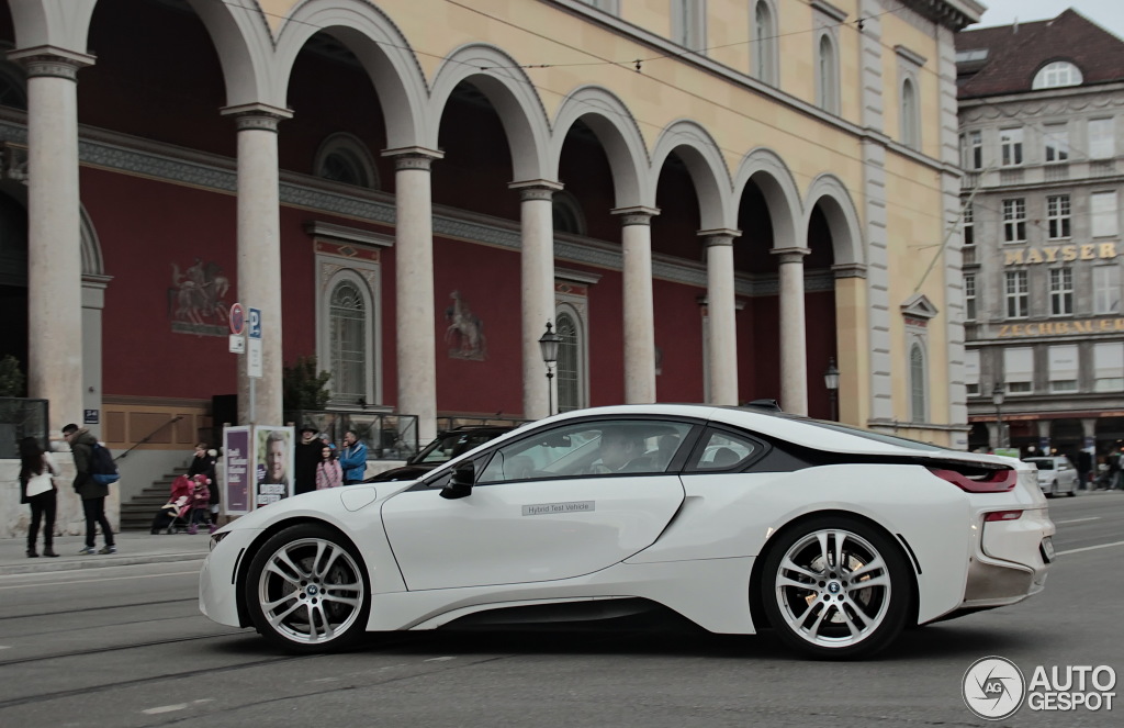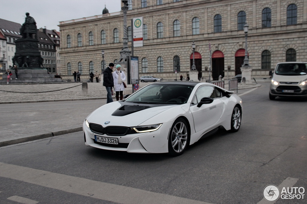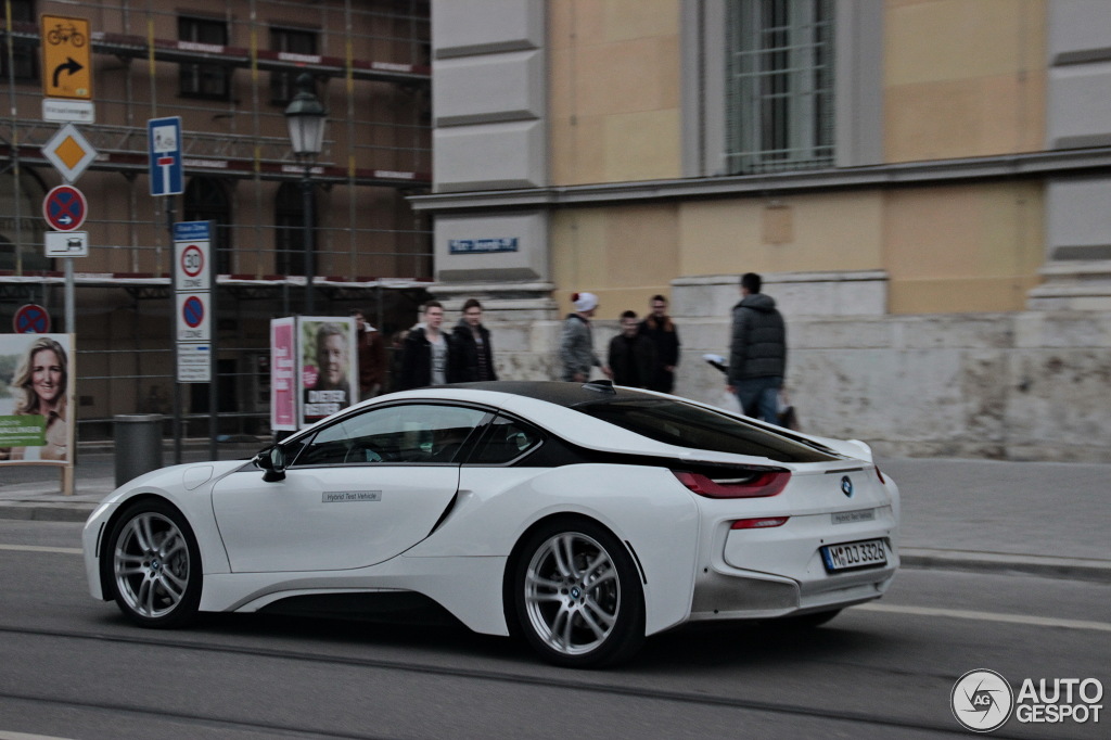 Gemeinsam sorgen die beiden Kraftquellen für eine Systemleistung von 362 PS und erlauben den Sprint von 0 auf 100 km/h in 4,4 Sekunden. Der von einer im Mitteltunnel zwischen den Insassen untergebrachten Lithium-Ionen-Batterie gespeiste Elektromotor erlaubt eine rein-elektrische Reichweite von circa 35 Kilometern und trägt so entscheidend dazu bei, dass der BMW i8 einen EU-Normverbrauch von 2,5 Liter auf 100 Kilometer erreicht. Das entspricht einem CO2-Ausstoß von 59 Gramm pro Kilometer.