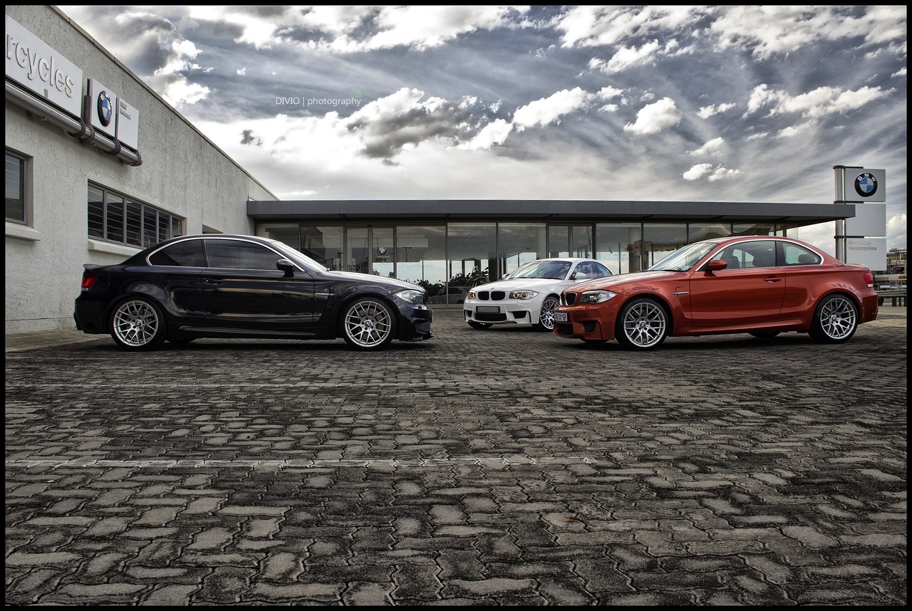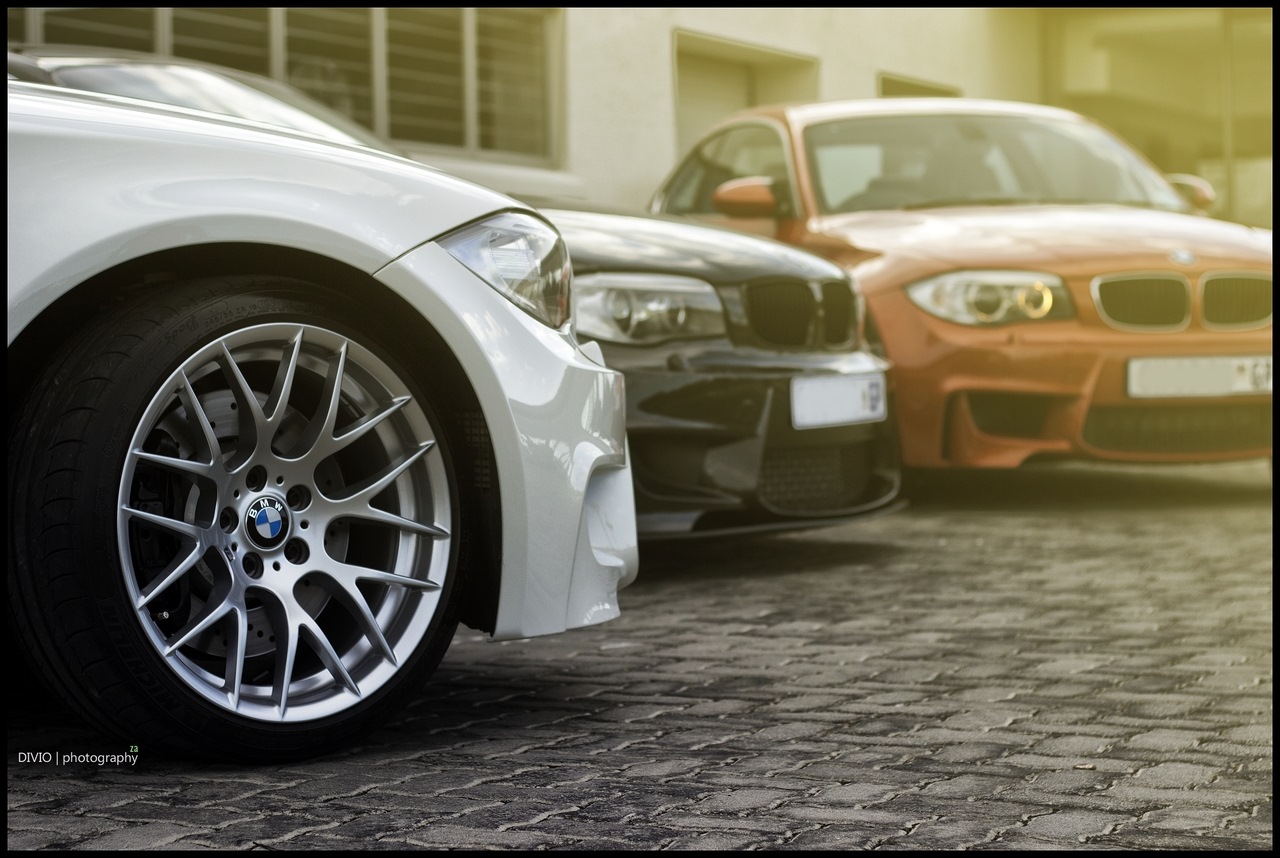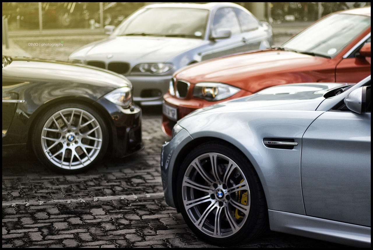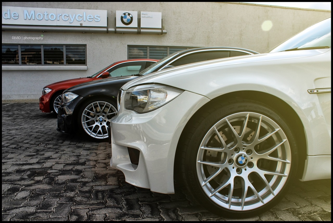 Neben den drei Hauptdarstellern aus der Baureihe E82 sind auf manchen Bildern auch noch andere sportliche BMWs zu sehen, darunter eine silberne BMW M3 Limousine der Generation E90 und ein BMW 3er Coupé der Generation E46: