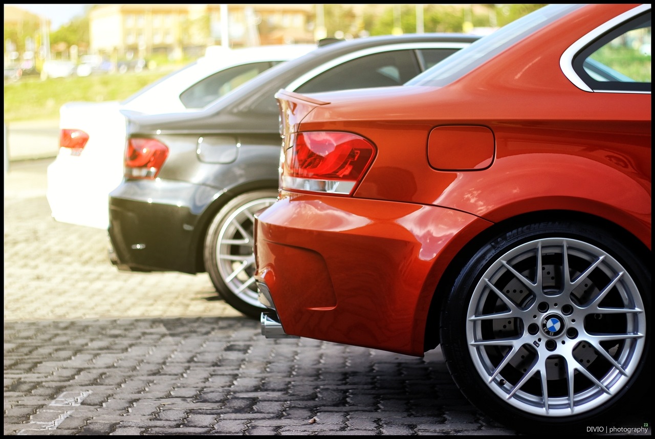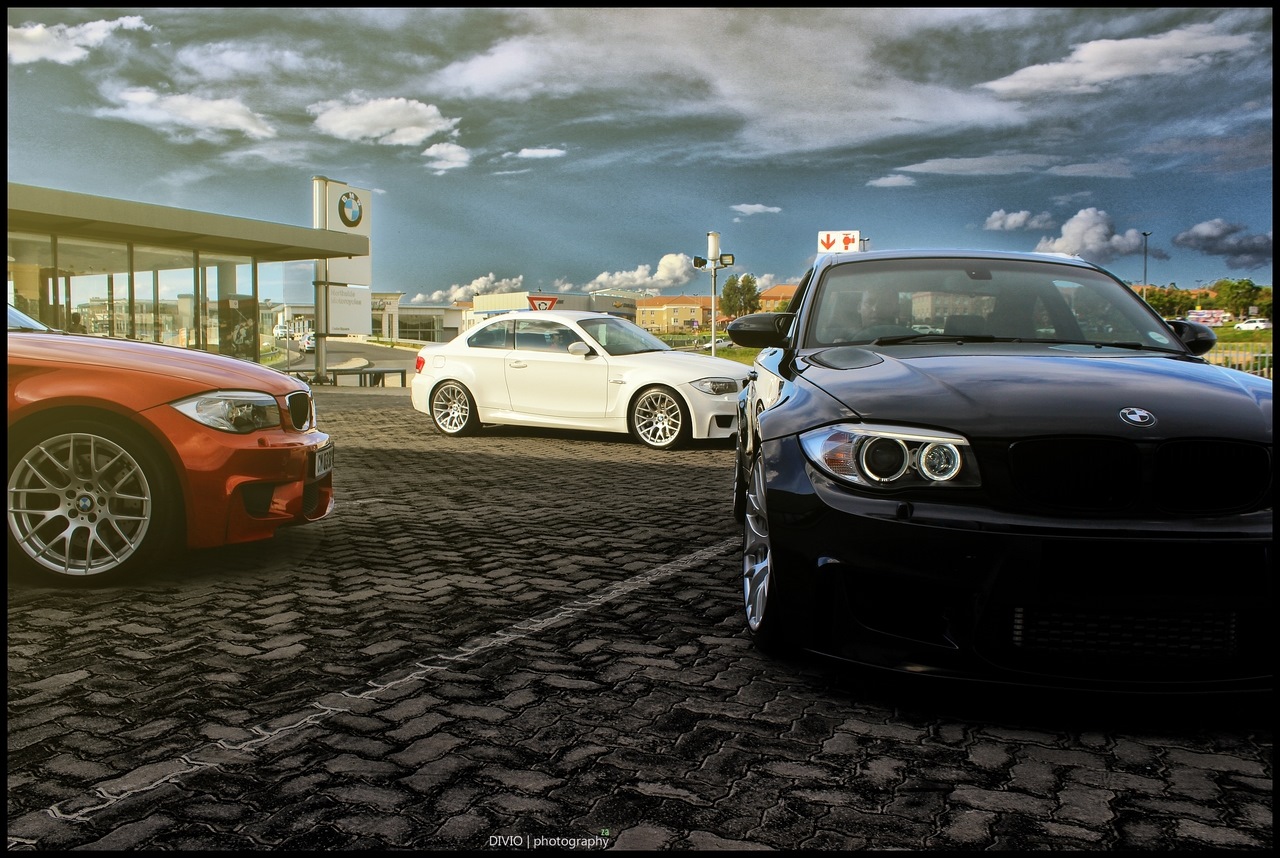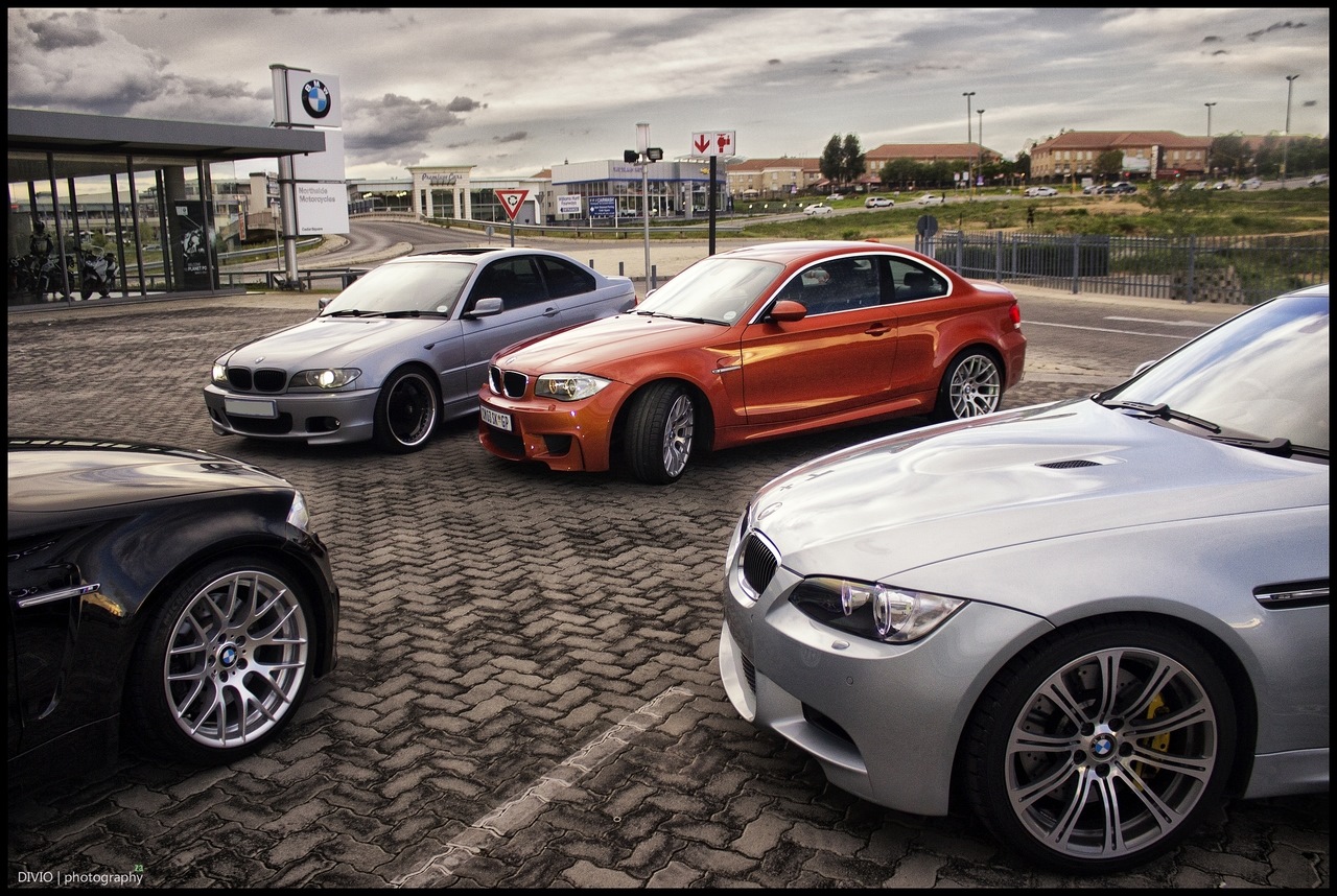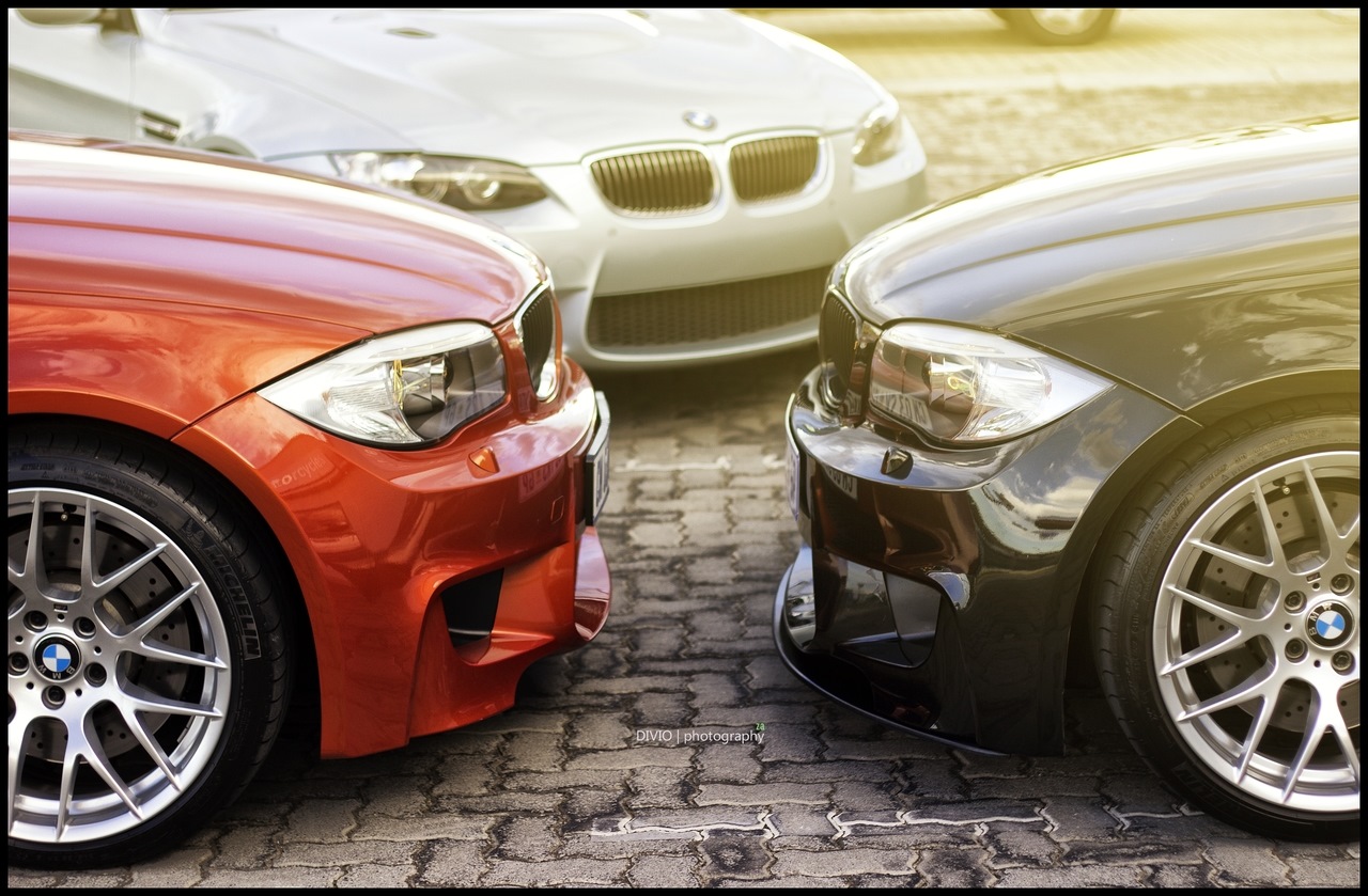 Neben den drei Hauptdarstellern aus der Baureihe E82 sind auf manchen Bildern auch noch andere sportliche BMWs zu sehen, darunter eine silberne BMW M3 Limousine der Generation E90 und ein BMW 3er Coupé der Generation E46: