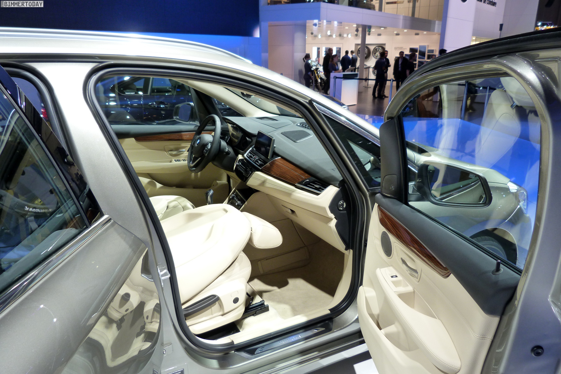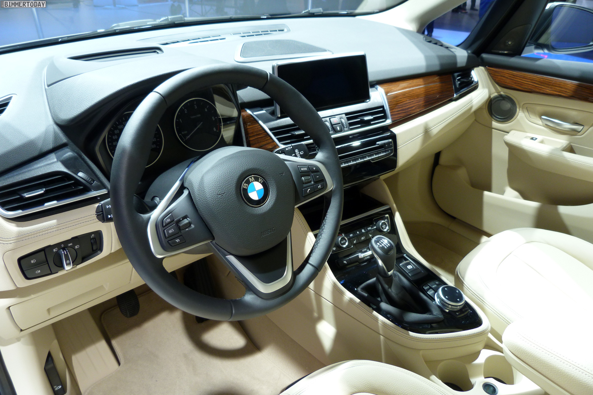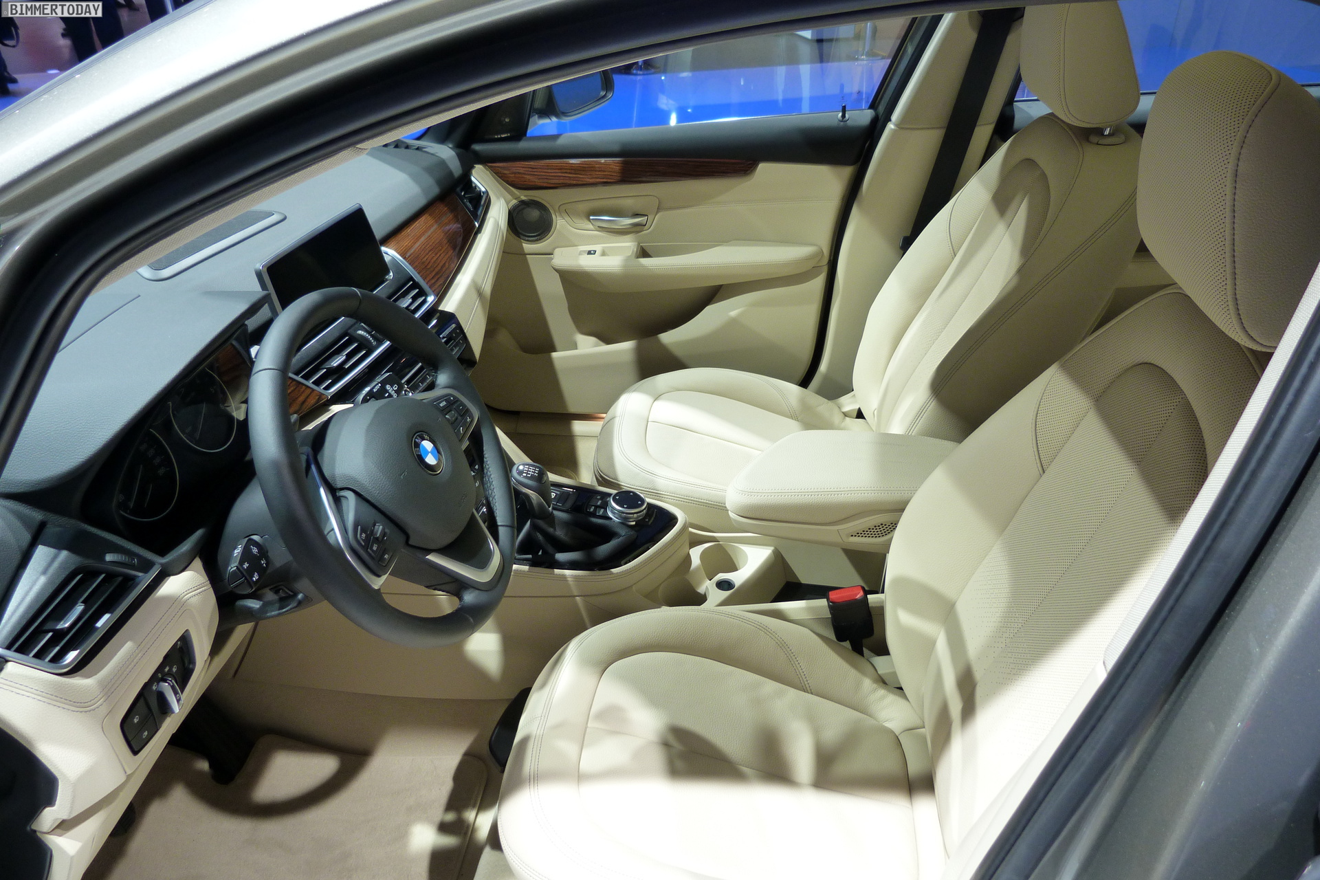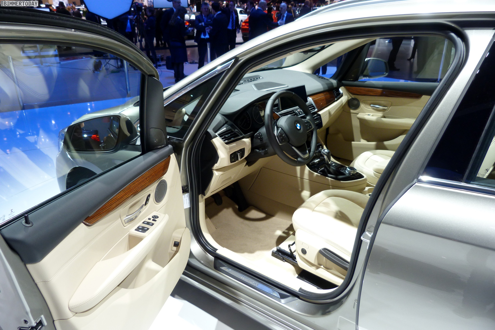 Das Armaturenbrett des BMW 2er Active Tourer bietet deutlich weniger Fahrerorientierung als beim Concept Car, soll aber höchste Verarbeitungsqualität und hochwertige Materialien kombinieren. Bereits zum Marktstart stehen die Ausstattungslinien Sport Line und Luxury Line zur Wahl, um Interieur und Exterieur den eigenen Vorlieben anzupassen.