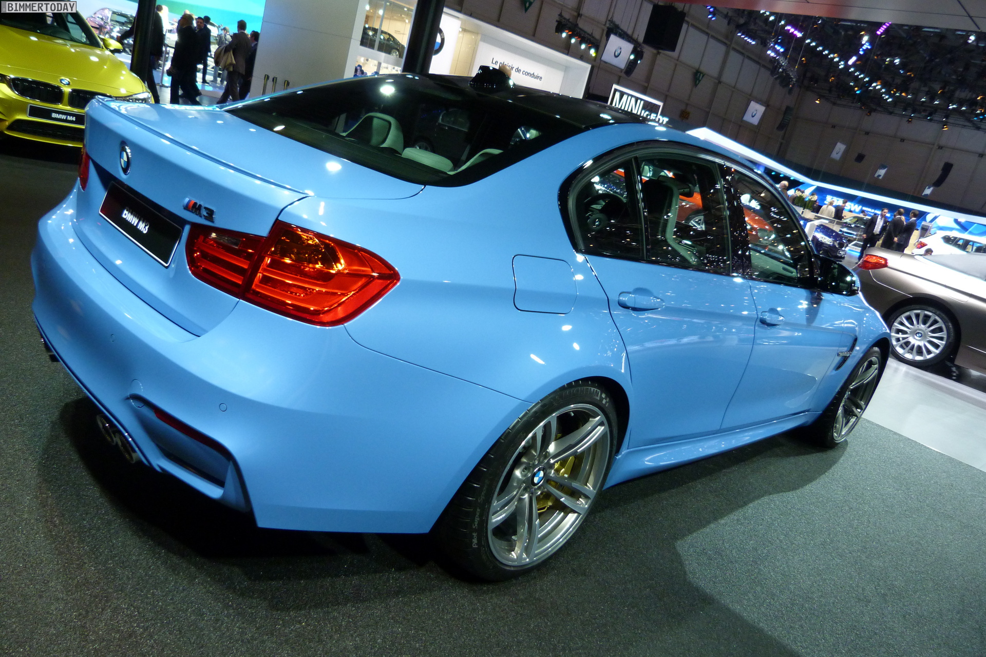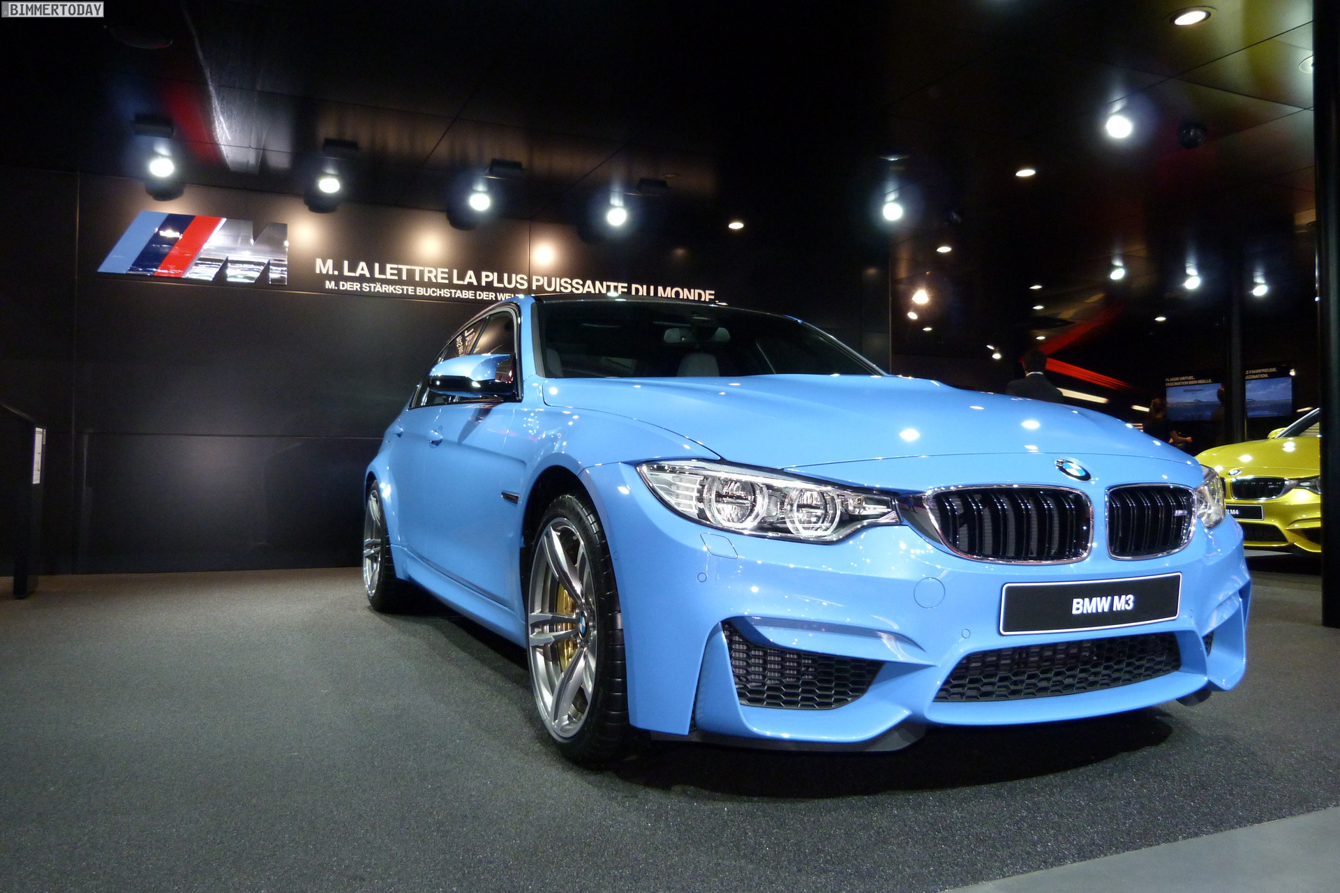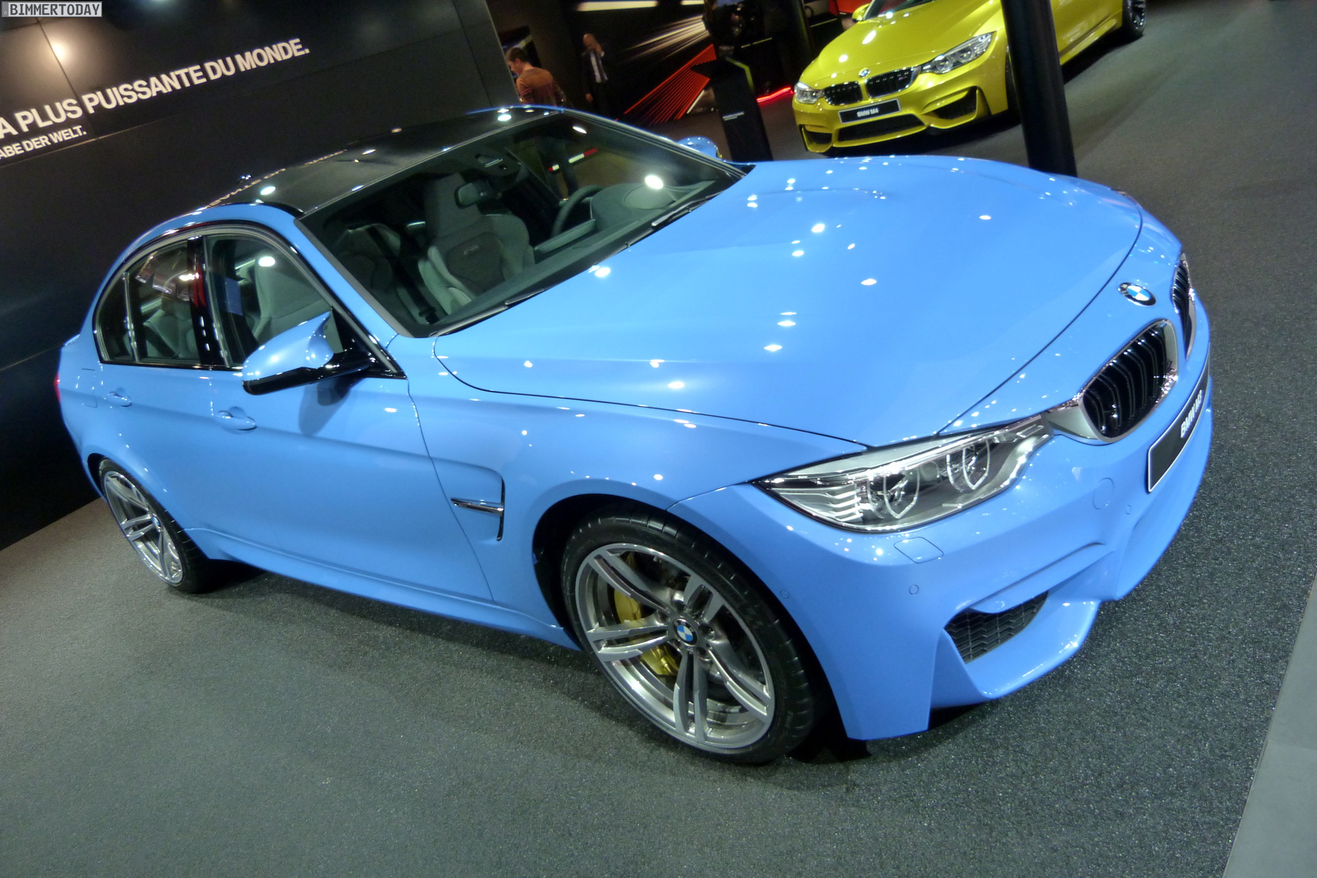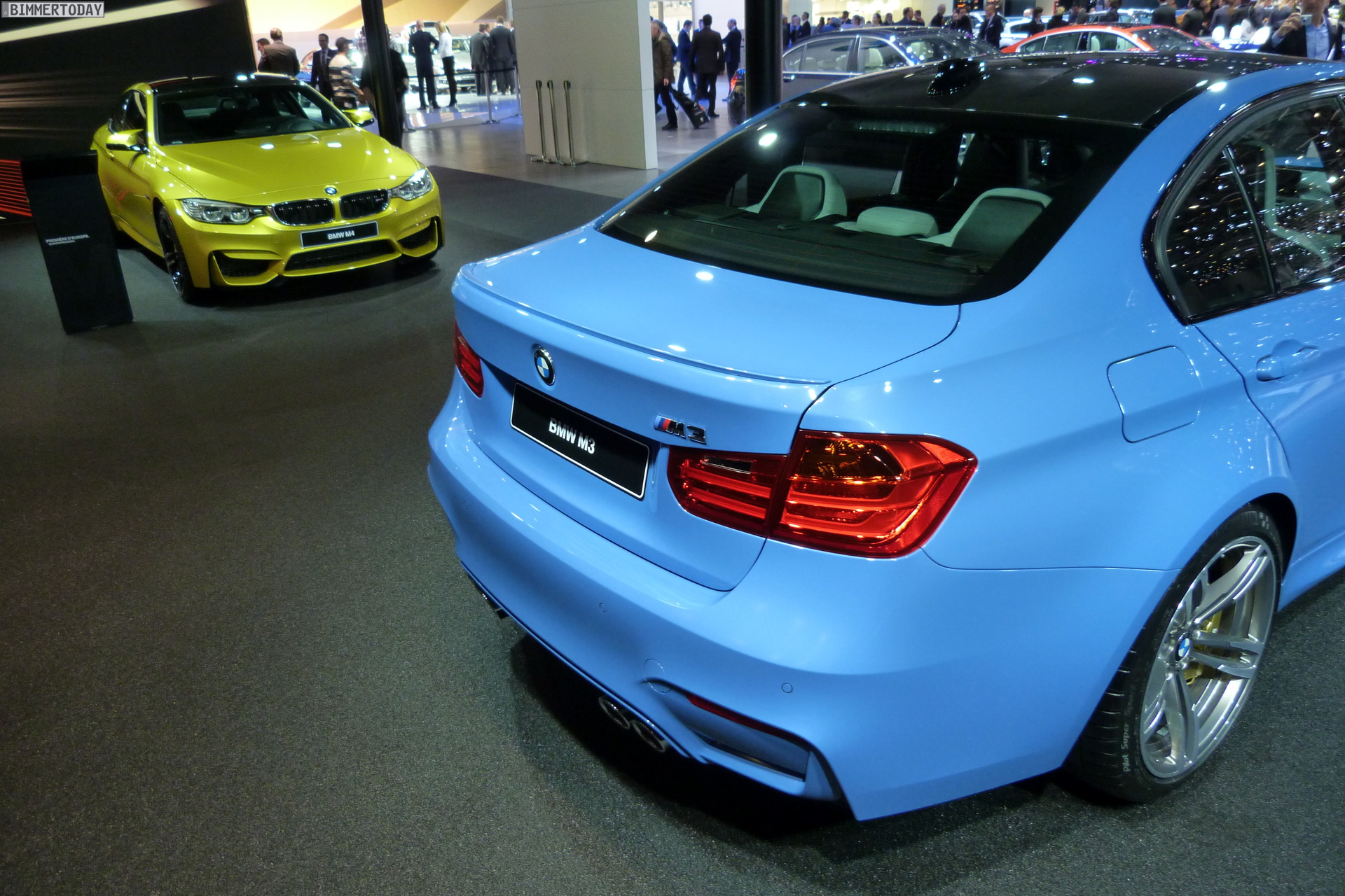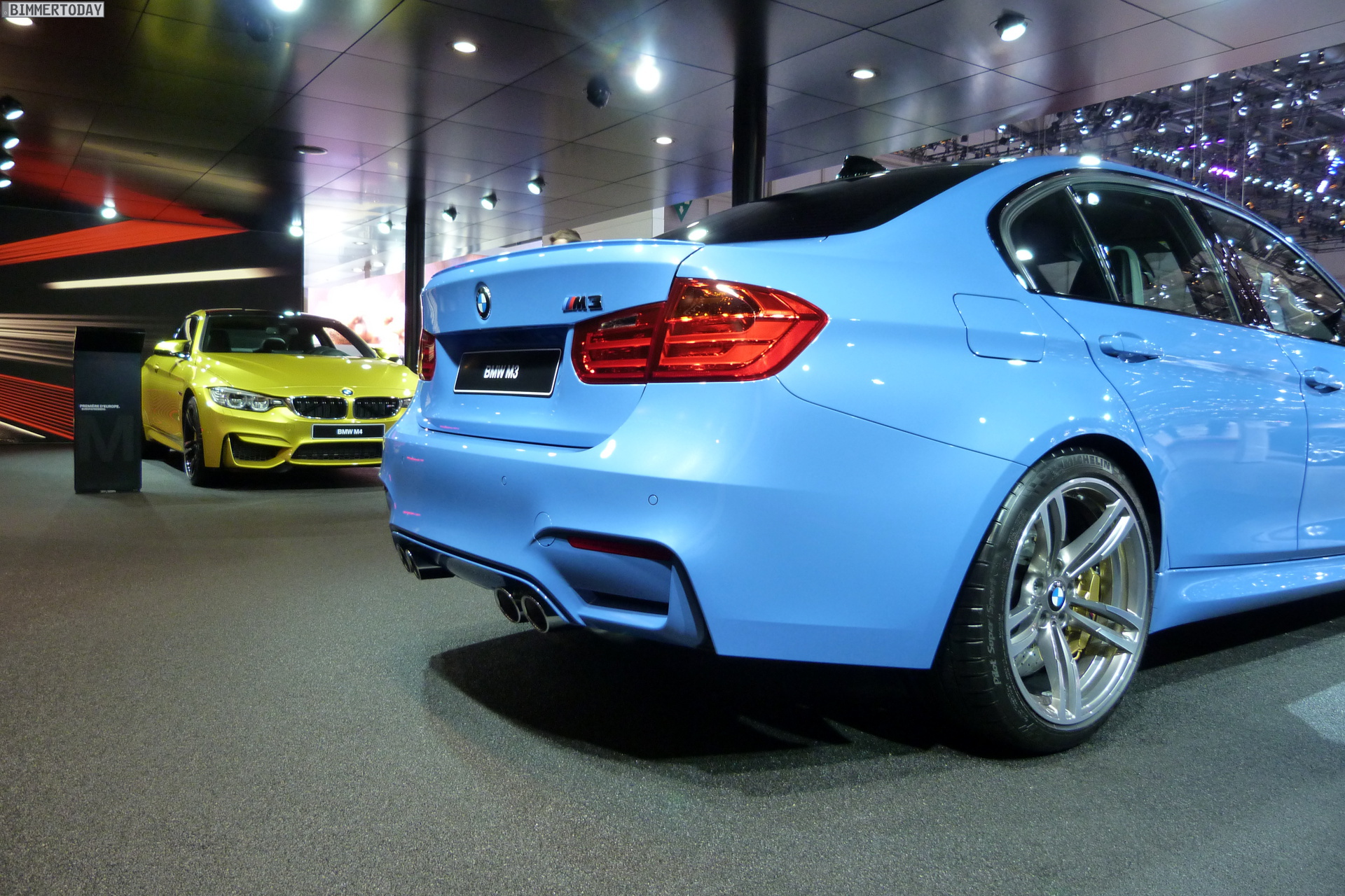Auch auf dem Genfer Salon 2014 dürfen die beiden neuen Aushängeschilder der BMW M GmbH nicht fehlen: Wie schon in Detroit und Brüssel strahlt das neue BMW M4 Coupé in Austin Yellow, daneben präsentiert sich die BMW M3 Limousine in Yas Marina Blau.