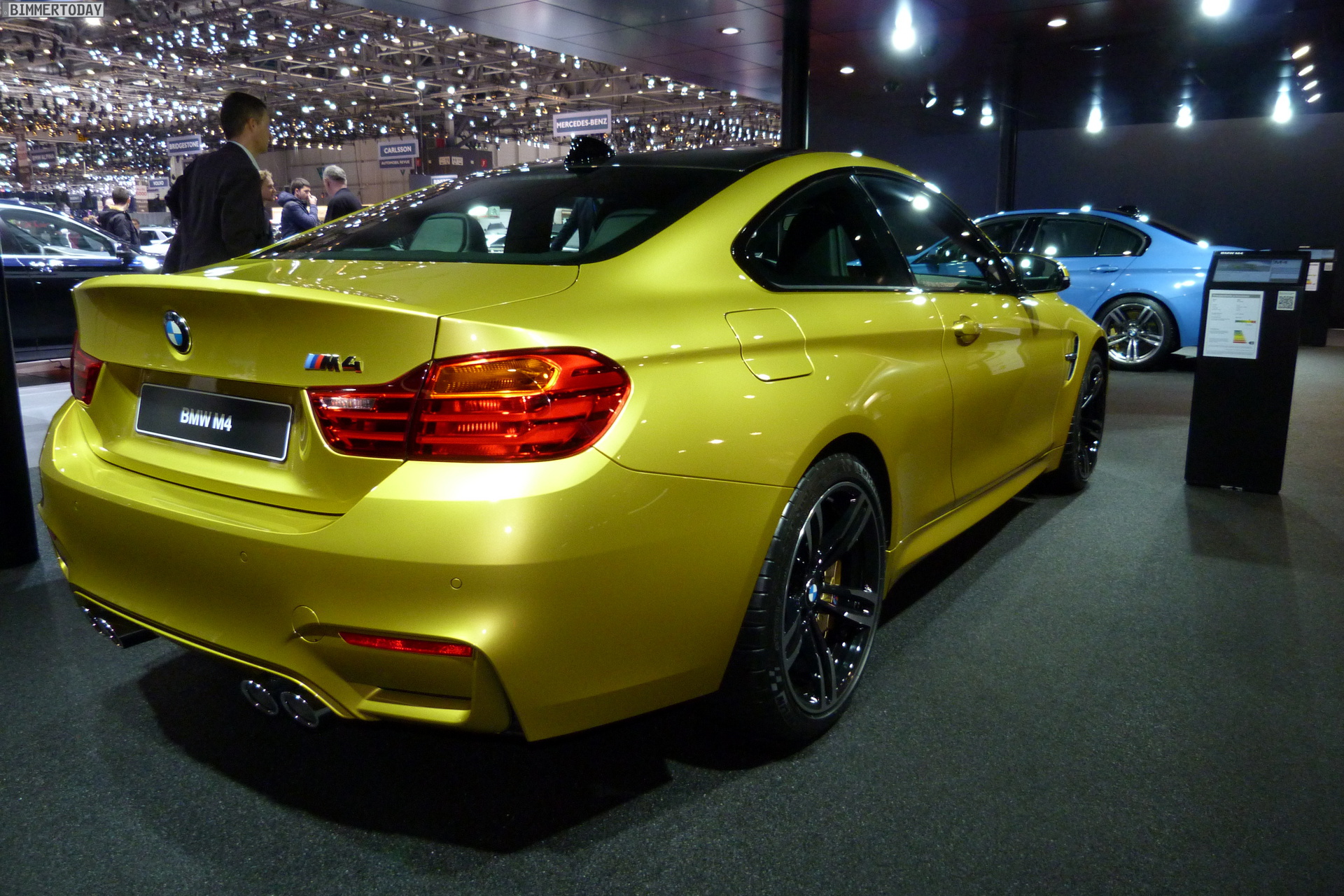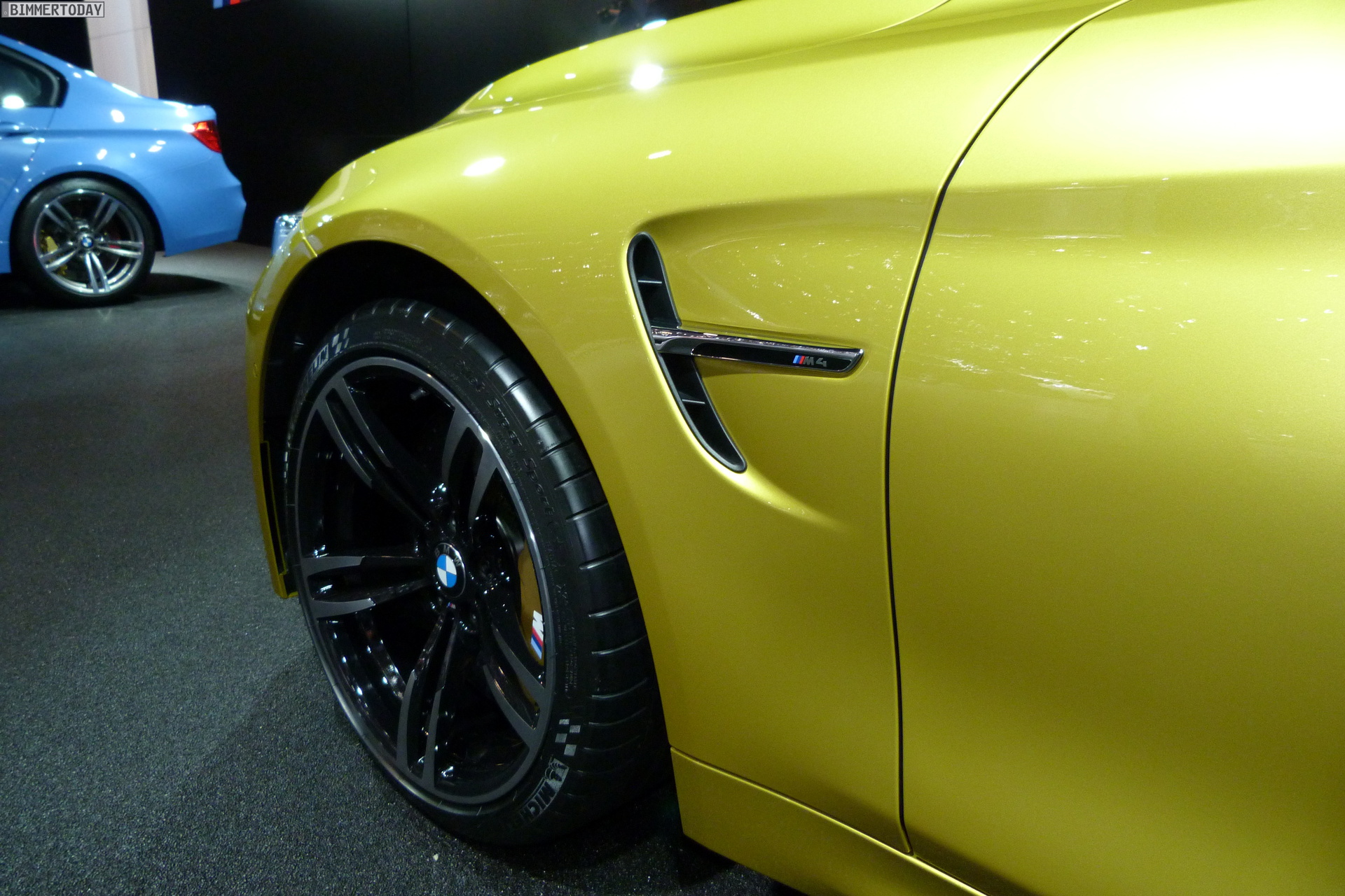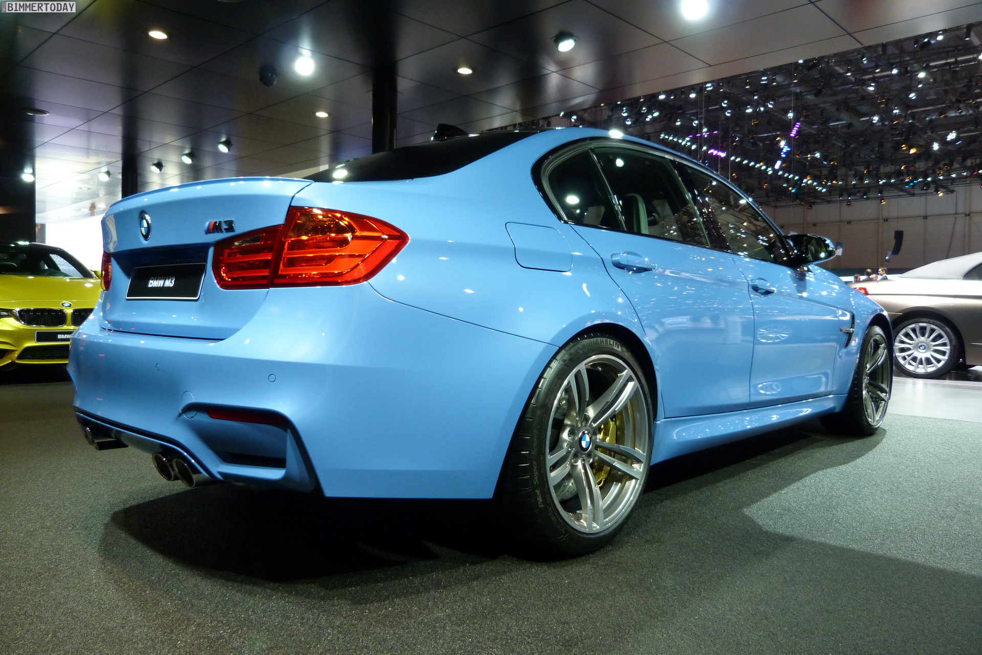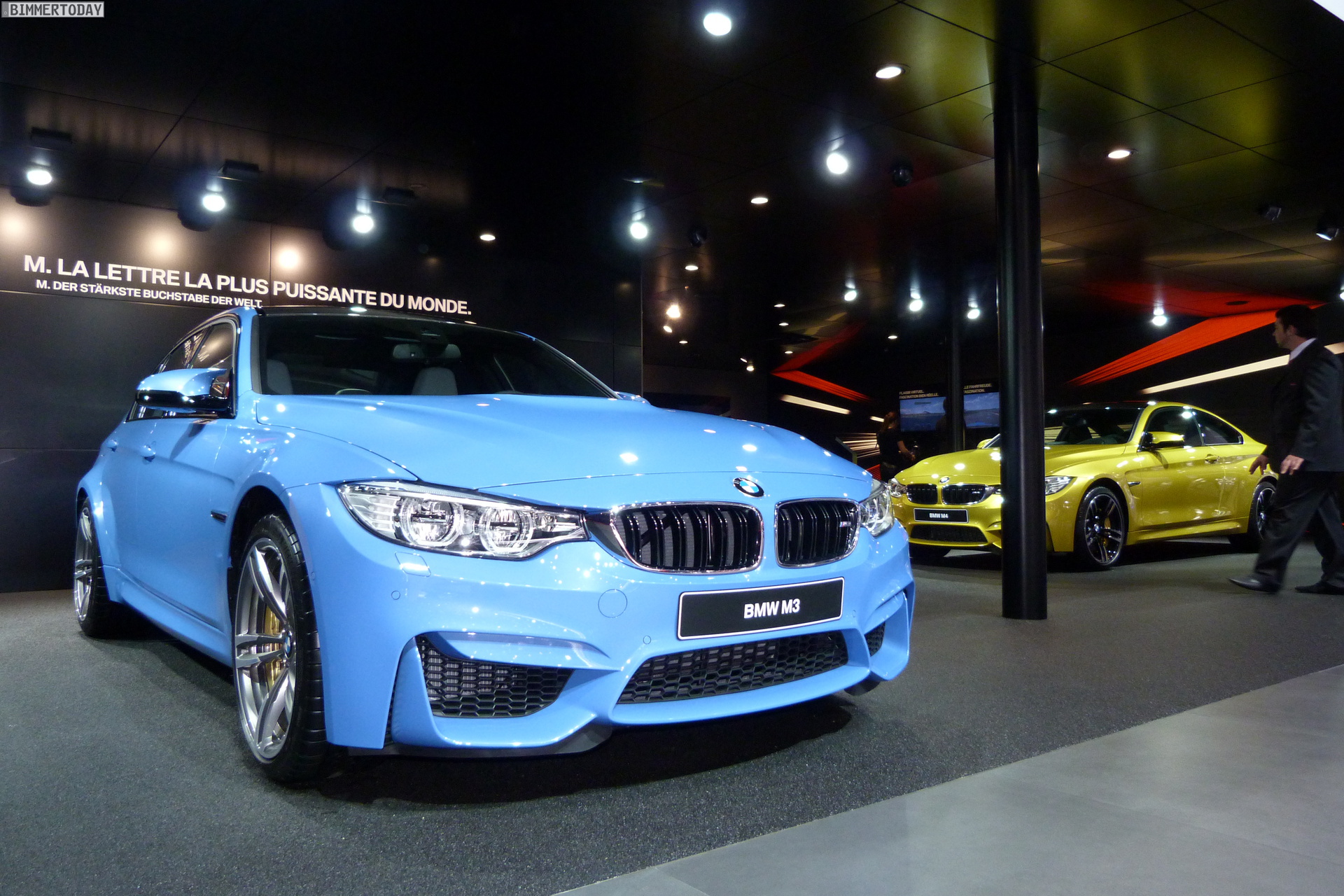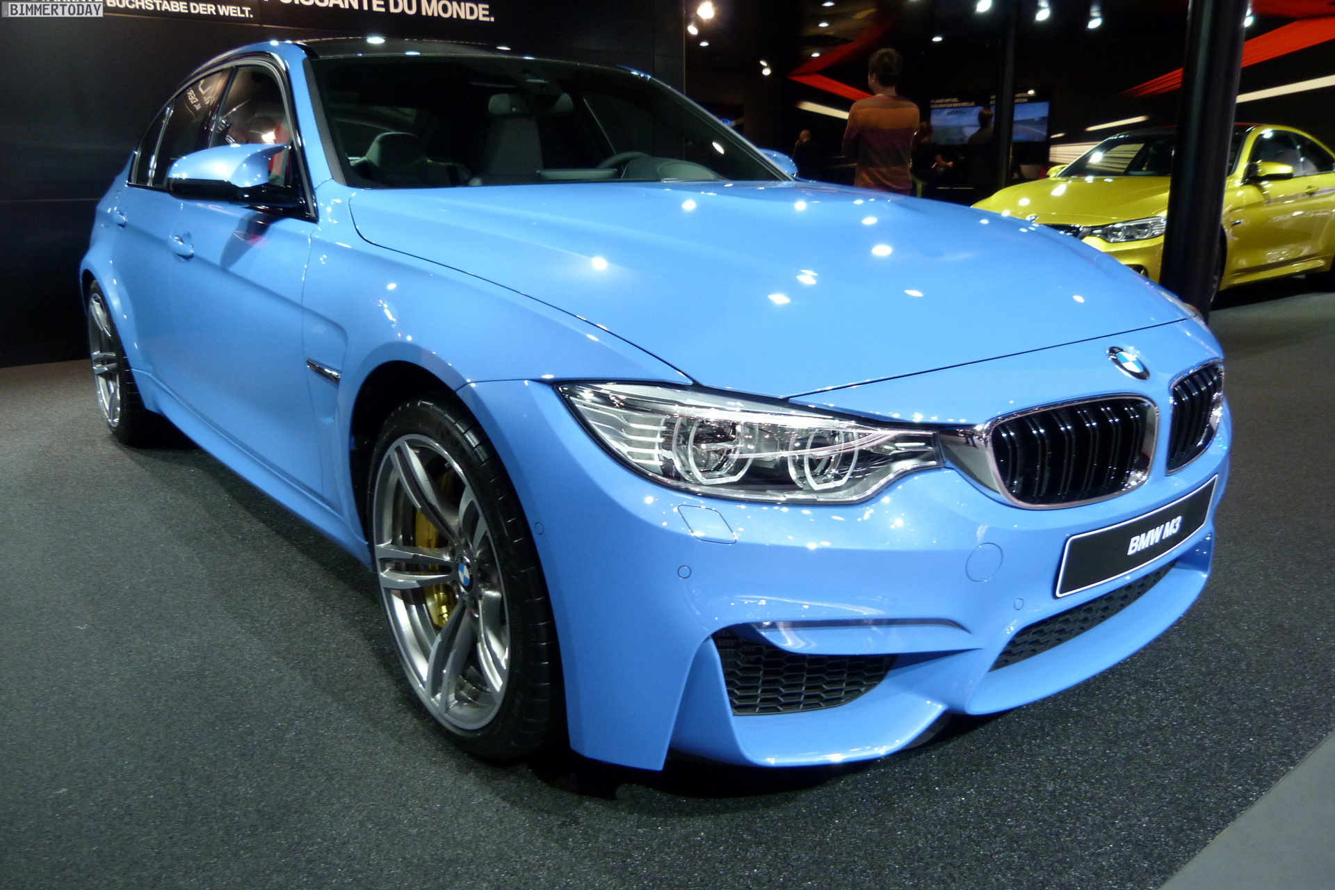 Auch auf dem Genfer Salon 2014 dürfen die beiden neuen Aushängeschilder der BMW M GmbH nicht fehlen: Wie schon in Detroit und Brüssel strahlt das neue BMW M4 Coupé in Austin Yellow, daneben präsentiert sich die BMW M3 Limousine in Yas Marina Blau.